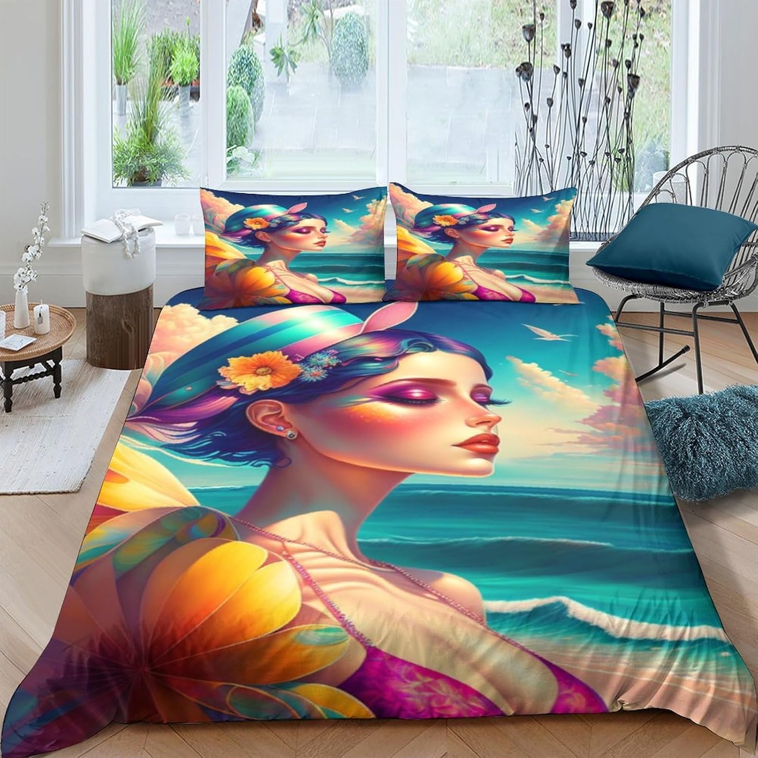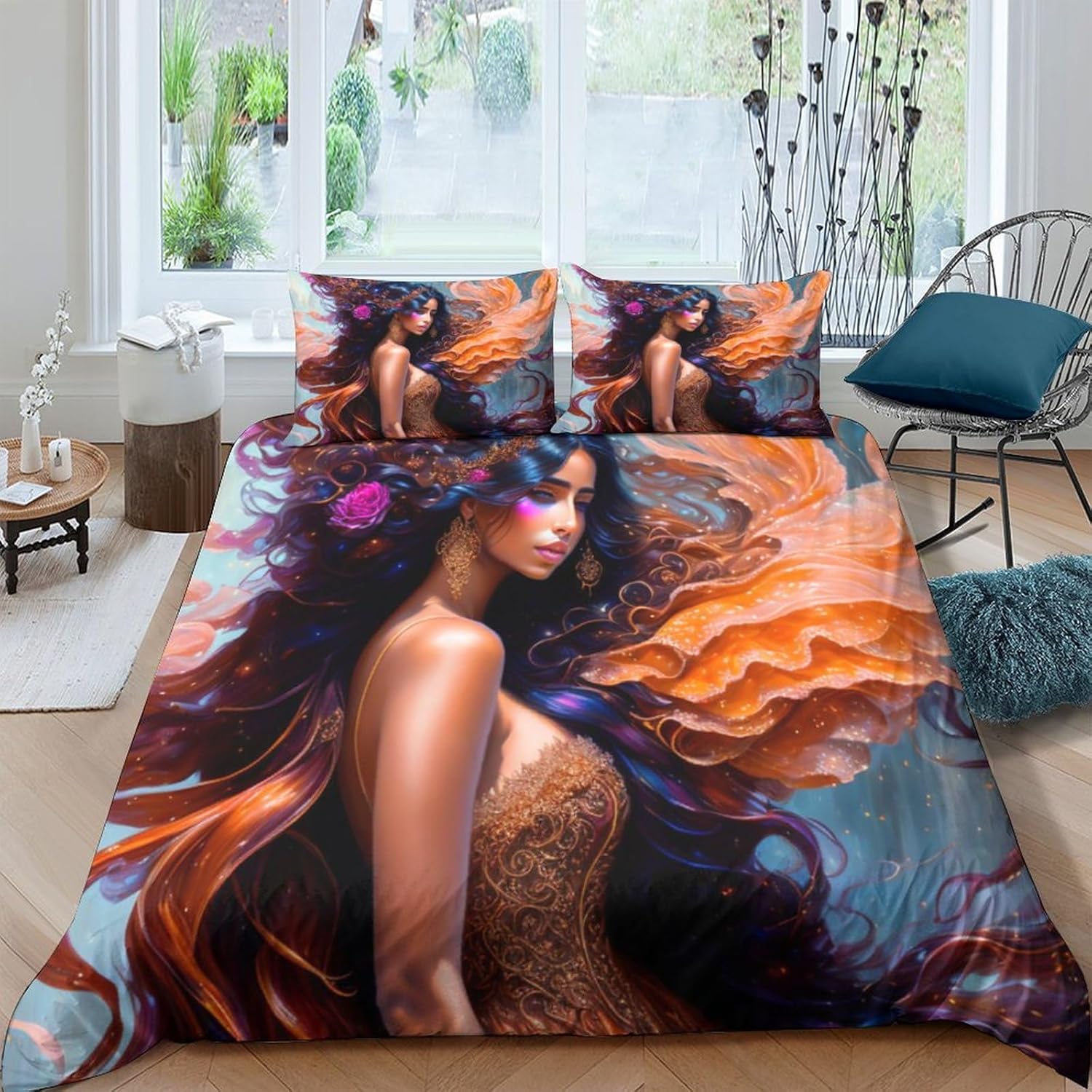 ⭐Sizes Choice:Twin size comforter set: 1 Twin Comforter 173 x 218cm(68x86inches) and 2 Pillowcase 50 x 75cm(20x30inches);Full size comforter set: 1 Full Comforter 200x 228cm(79x90inches) and 2 Pillowcases 50 x 75cm(20x30inches)Queen size comforter set: 1 Queen Comforter 228x 228cm(90x90inches) and 2 Pillowcases 50 x 75cm(20x30inches):King size comforter set:1 King Comforter ⭐Soft Material:Brushed Microfiber Material Shell with 100% polyester filling.Medium thickness for any season. ⭐Printing And Dyeing: Excellent 3D printed highlights vivid colors. Great choice for your bedroom decoration. New lifestyle for home decor.