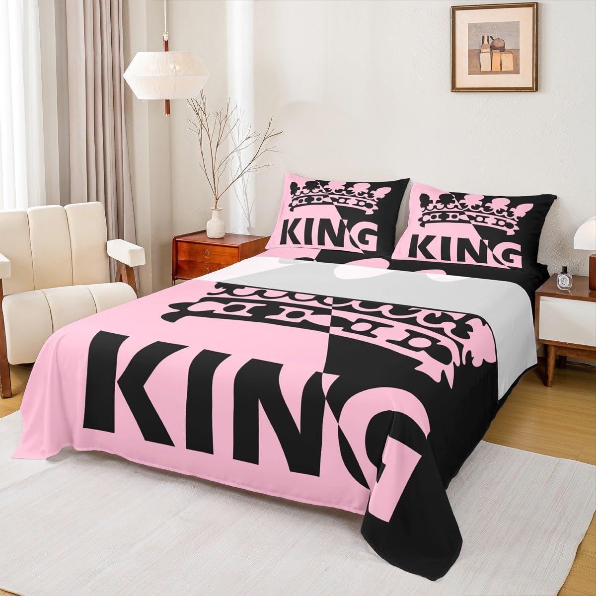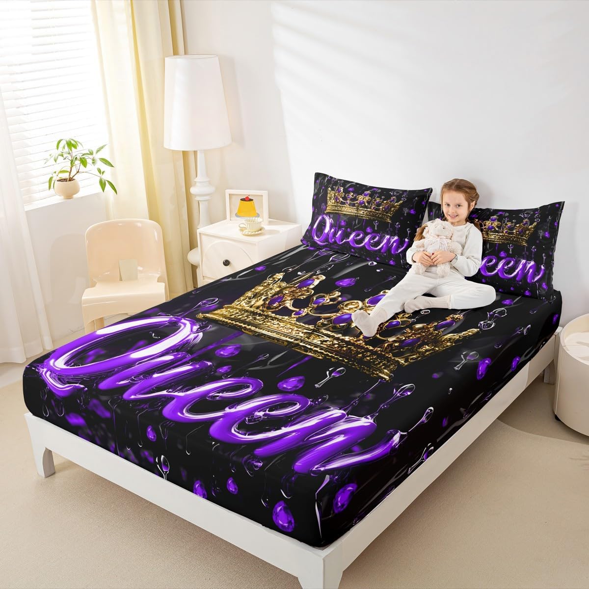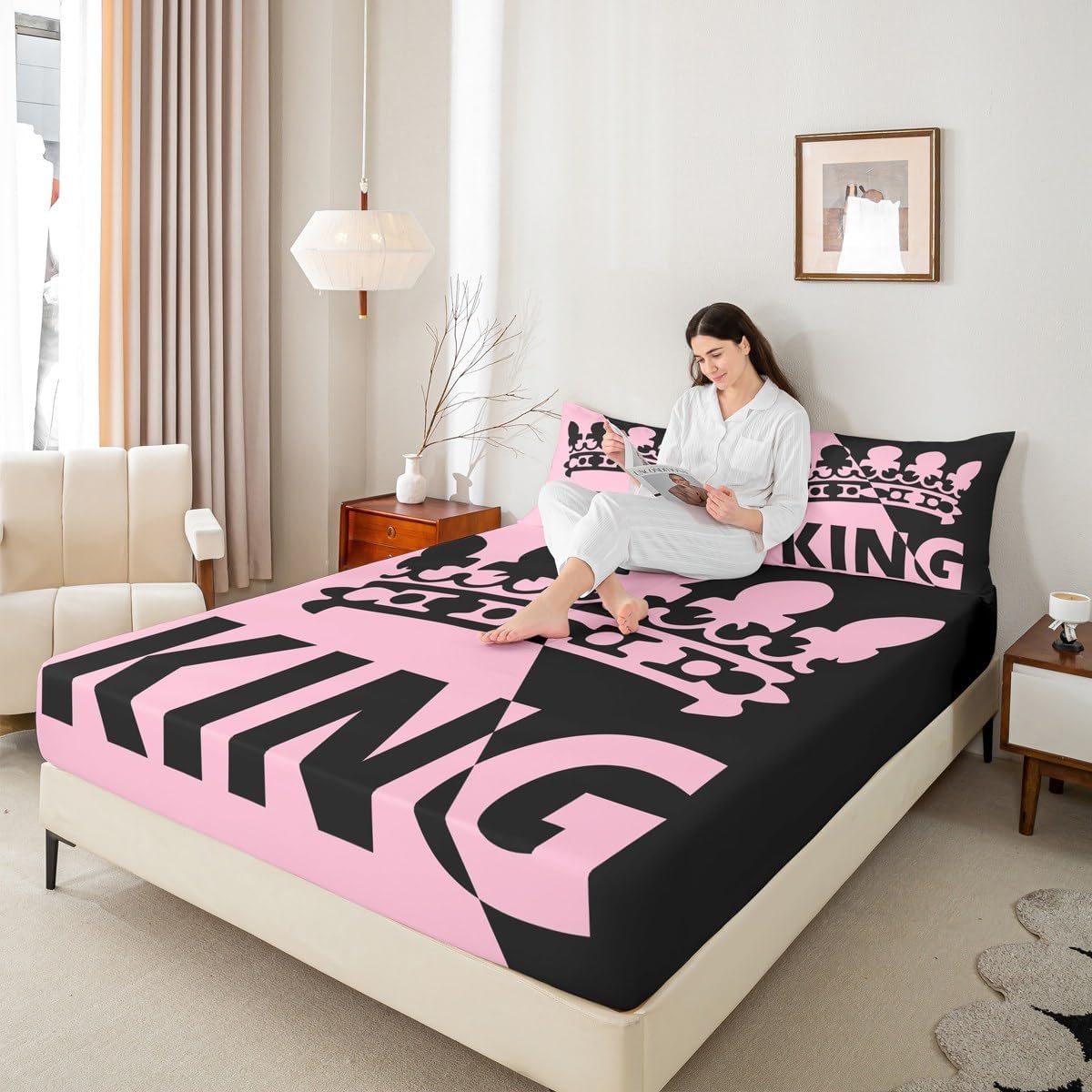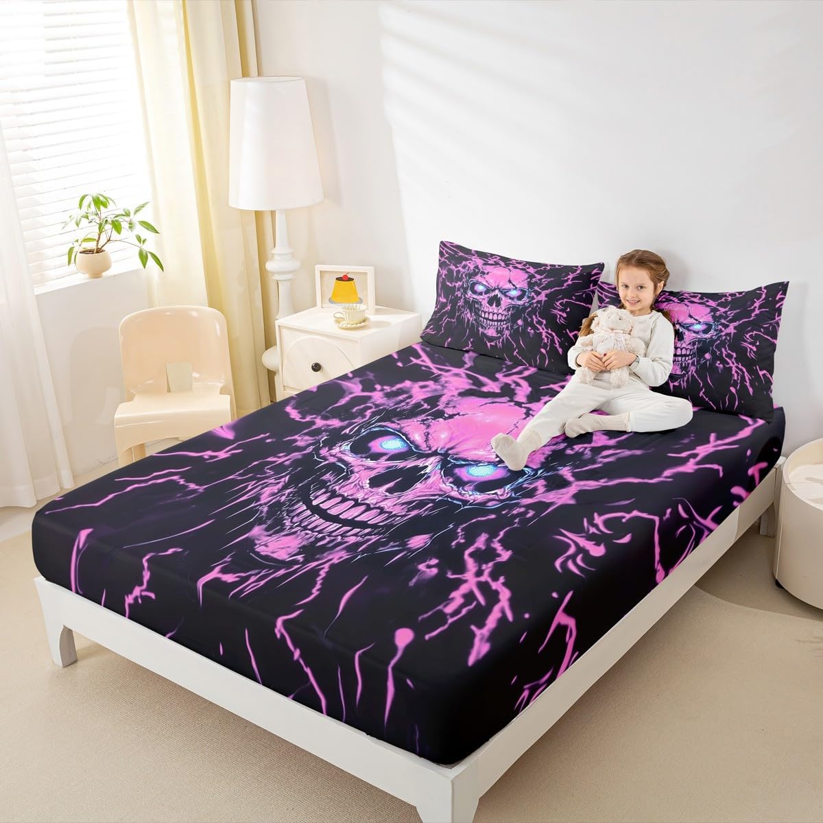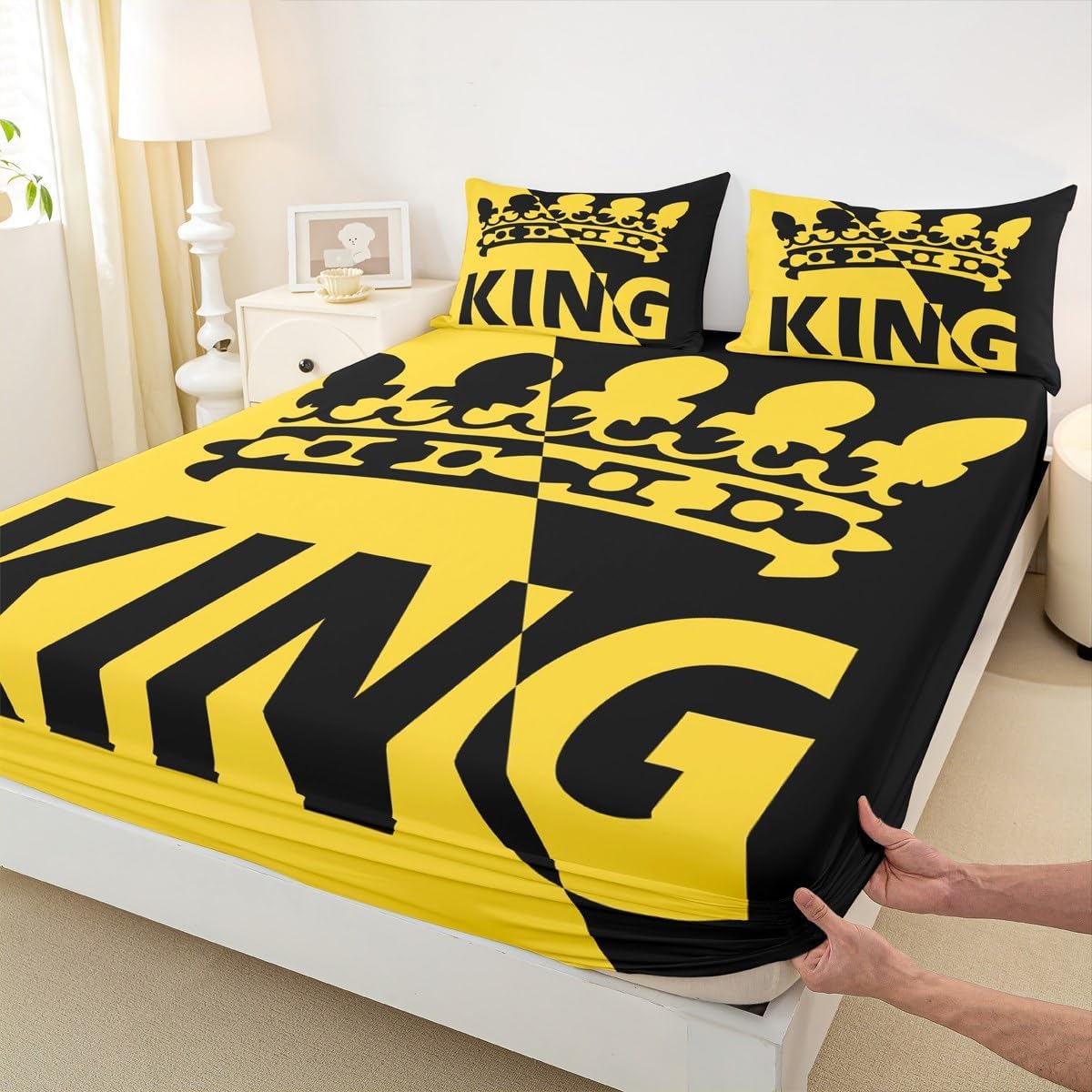 Our bed sheet is made of polyester fabric, lightweight and soft; stylish design is very suitable as room decoration for boys and girls; keep warm in winter and cool in summer; create a comfortable sleeping environment to make you fall asleep all night Range of size 1 twin fitted sheet 39 inch x 75 inch x 16 inch and 1 twin flat sheet 66 inch x 96 inch and 1 standard pillowcase 20 inch x 30 inch 1 full fitted sheet 54 inch x 75 inch x 16 inch and 1 full flat sheet 81 inch x 96 inch and 2 standard pillowcase 20 inch x 30 inch 1 queen fitted sheet 60 inch x 80 inch x 16 inch and 1 queen flat sheet 90 inch x 102 inch and 2 standard pillowcase 20 inch x 30 inch 1 king fitted sheet 78 inch x 80 inch x 16 inch and 1 king flat sheet 90 inch x 106 inch and 2 standard pillowcase 20 inch x 36 inch