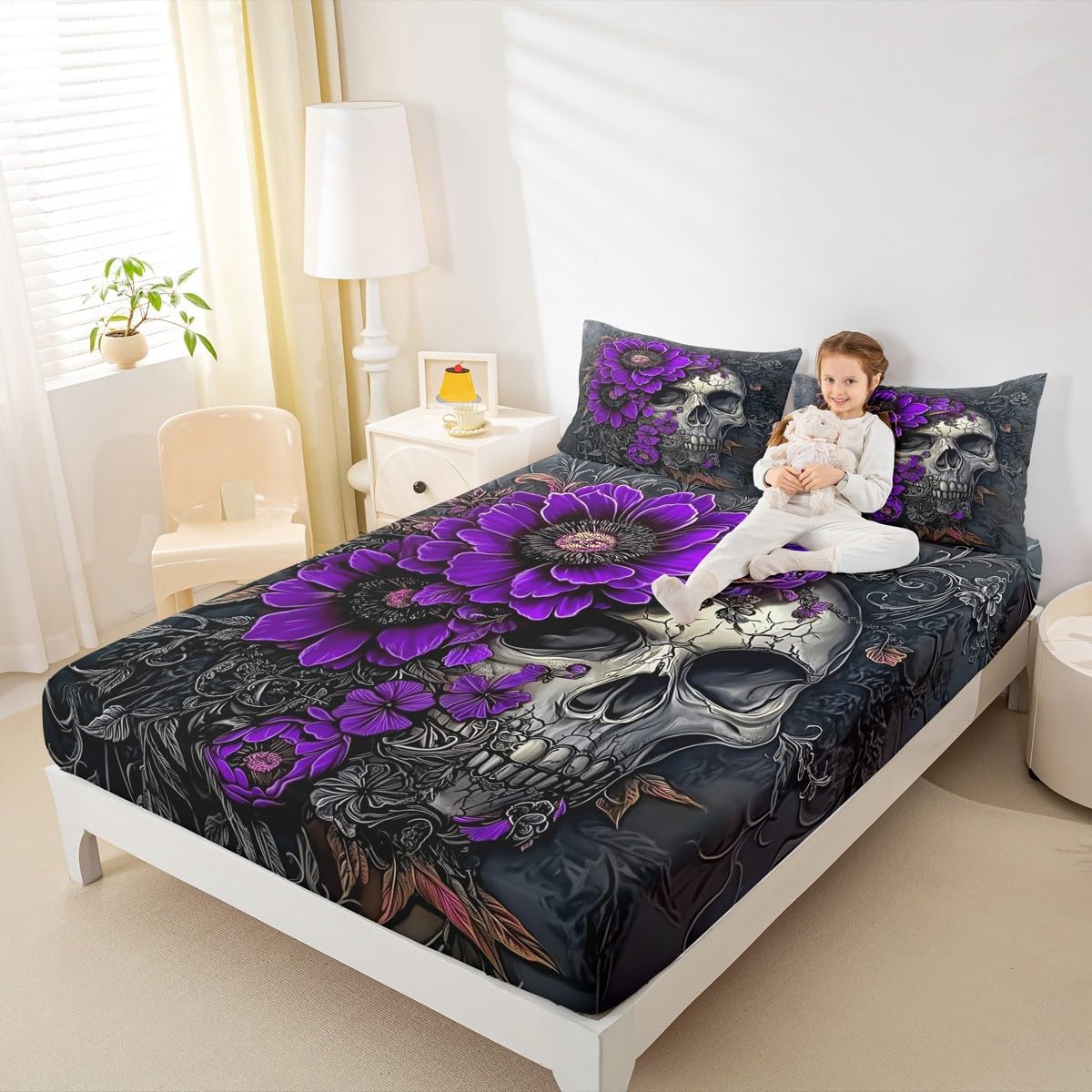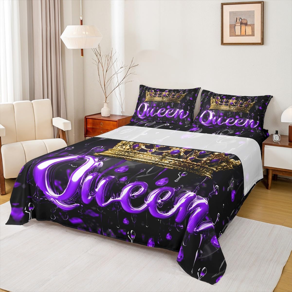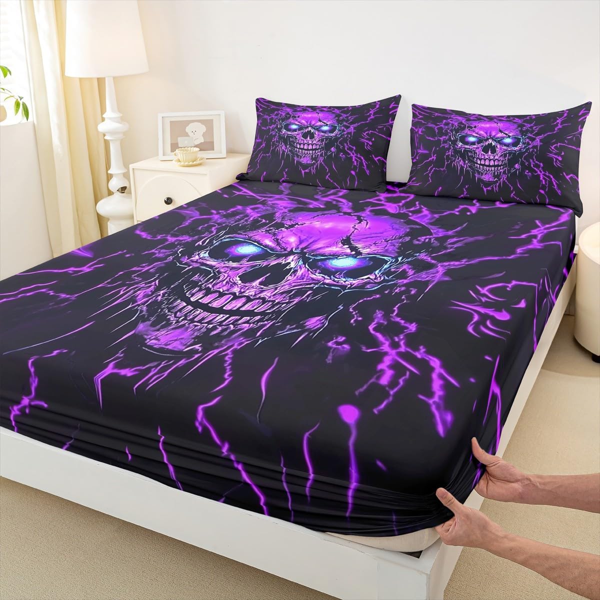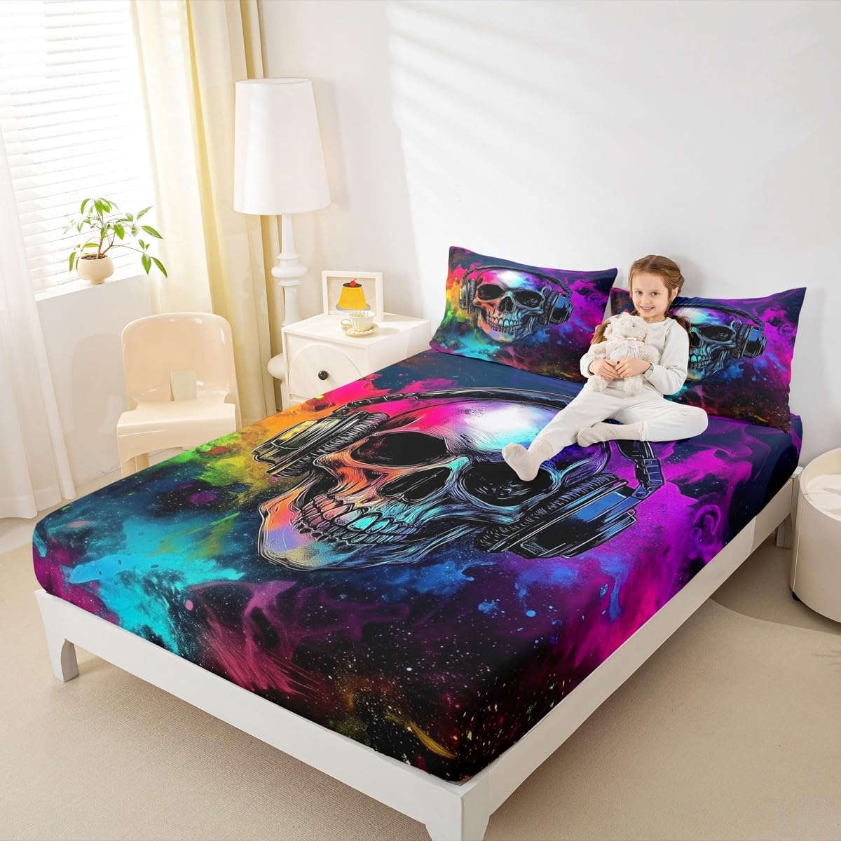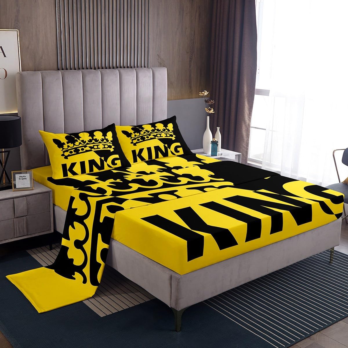 Our bed sheet is made of polyester fabric, lightweight and soft; stylish design is very suitable as room decoration for boys and girls; keep warm in winter and cool in summer; create a comfortable sleeping environment to make you fall asleep all night Range of size 1 twin fitted sheet 39 inch x 75 inch x 16 inch and 1 twin flat sheet 66 inch x 96 inch and 1 standard pillowcase 20 inch x 30 inch 1 full fitted sheet 54 inch x 75 inch x 16 inch and 1 full flat sheet 81 inch x 96 inch and 2 standard pillowcase 20 inch x 30 inch 1 queen fitted sheet 60 inch x 80 inch x 16 inch and 1 queen flat sheet 90 inch x 102 inch and 2 standard pillowcase 20 inch x 30 inch 1 king fitted sheet 78 inch x 80 inch x 16 inch and 1 king flat sheet 90 inch x 106 inch and 2 standard pillowcase 20 inch x 36 inch