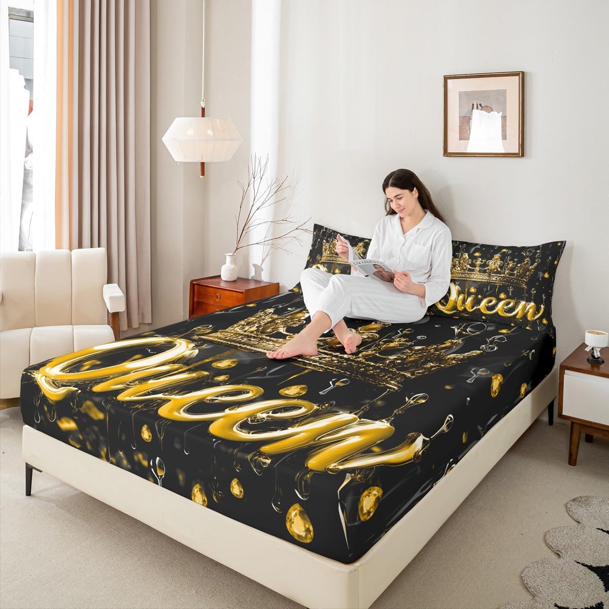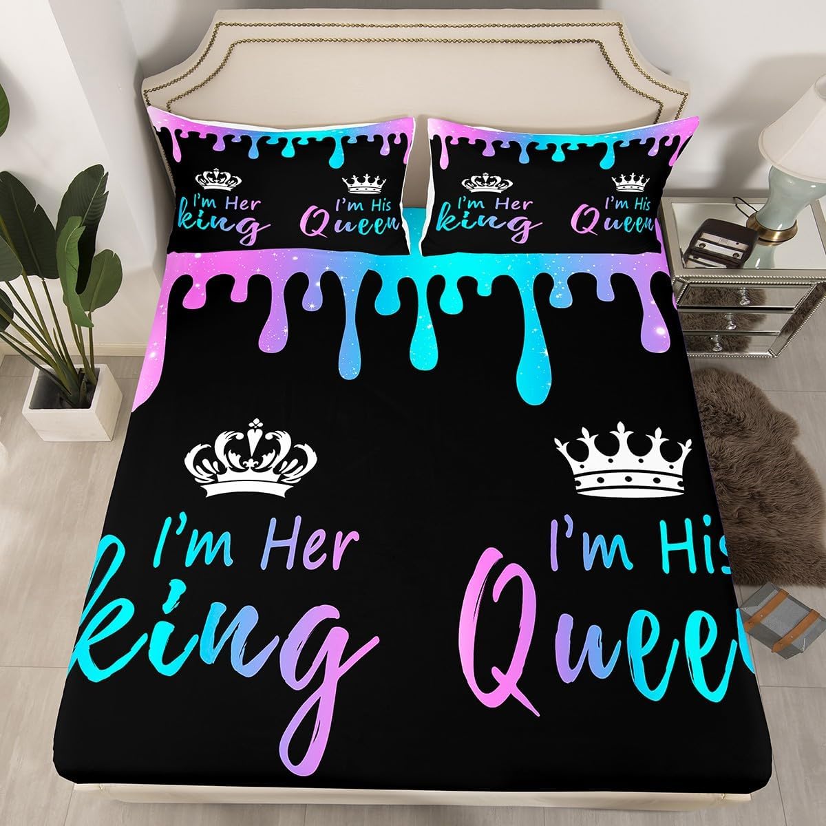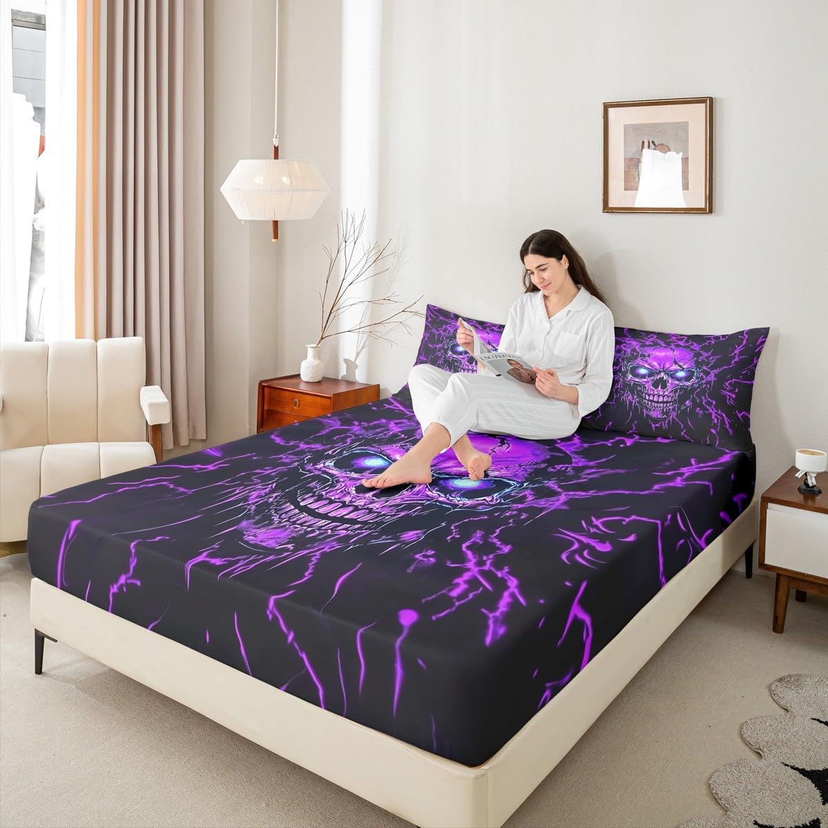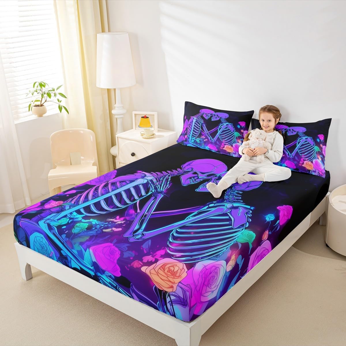 Our bed sheet is made of polyester fabric, lightweight and soft; stylish design is very suitable as room decoration for boys and girls; keep warm in winter and cool in summer; create a comfortable sleeping environment to make you fall asleep all night Range of size 1 twin fitted sheet 39 inch x 75 inch x 16 inch and 1 twin flat sheet 66 inch x 96 inch and 1 standard pillowcase 20 inch x 30 inch 1 full fitted sheet 54 inch x 75 inch x 16 inch and 1 full flat sheet 81 inch x 96 inch and 2 standard pillowcase 20 inch x 30 inch 1 queen fitted sheet 60 inch x 80 inch x 16 inch and 1 queen flat sheet 90 inch x 102 inch and 2 standard pillowcase 20 inch x 30 inch 1 king fitted sheet 78 inch x 80 inch x 16 inch and 1 king flat sheet 90 inch x 106 inch and 2 standard pillowcase 20 inch x 36 inch