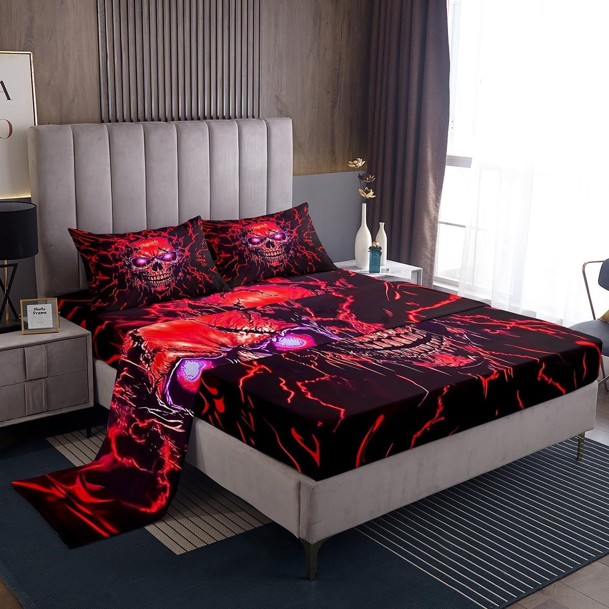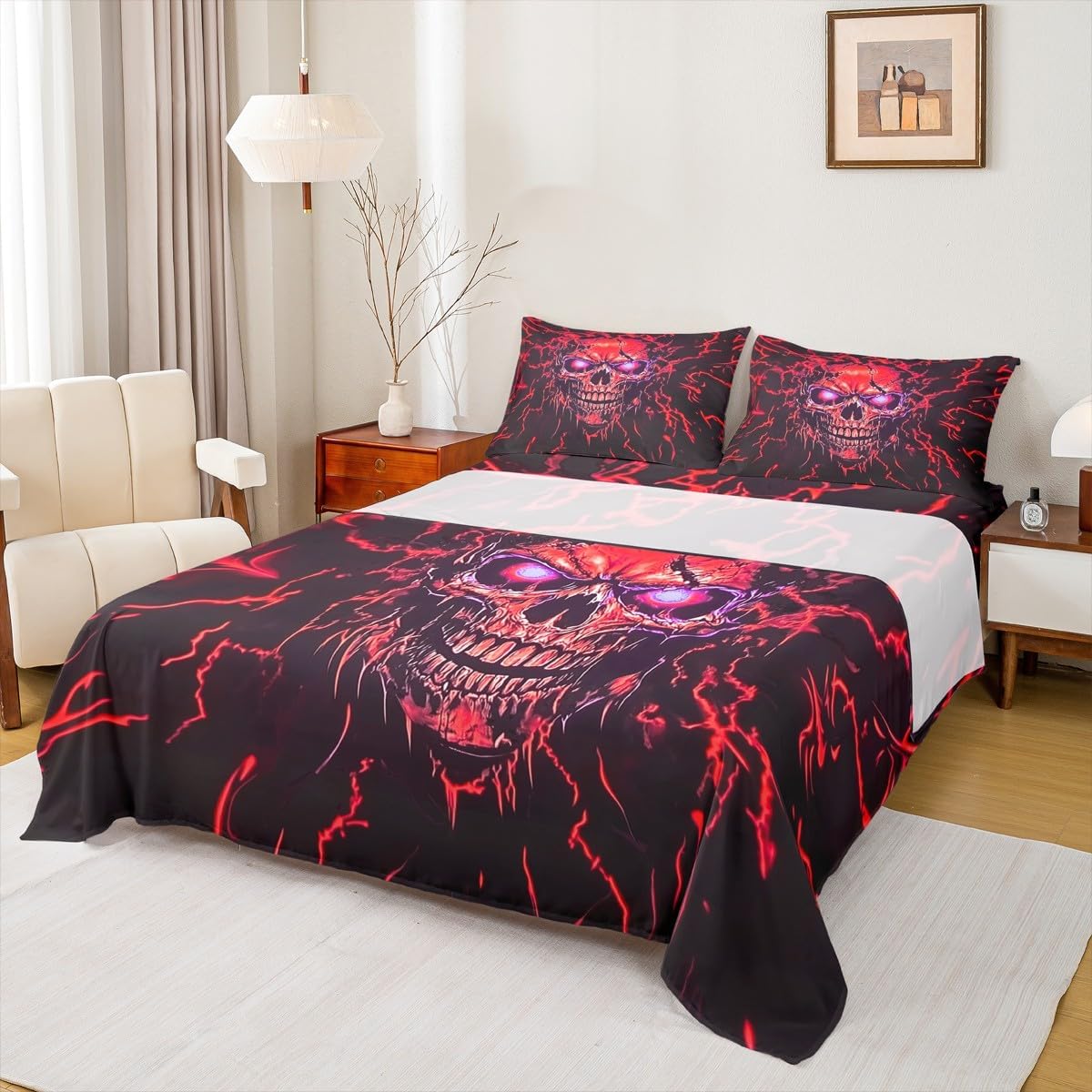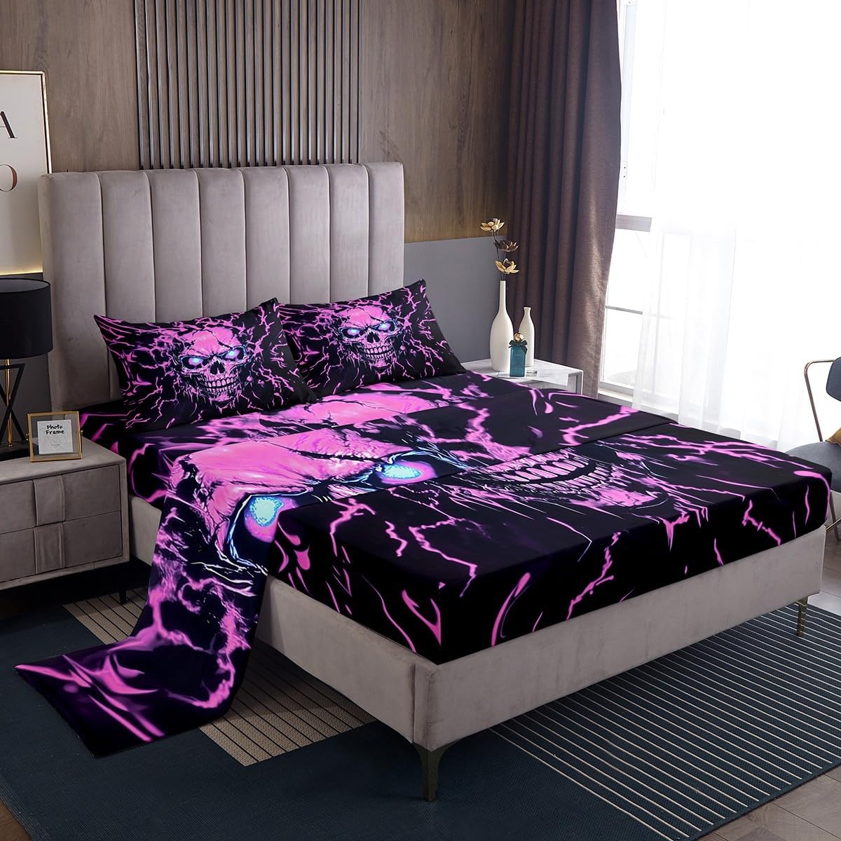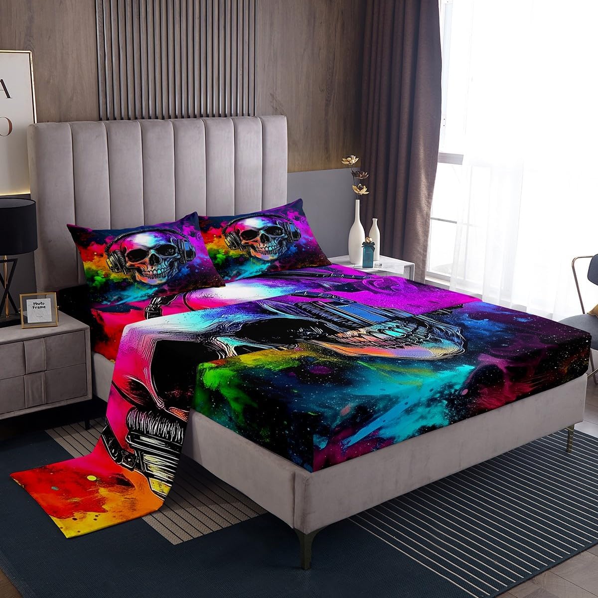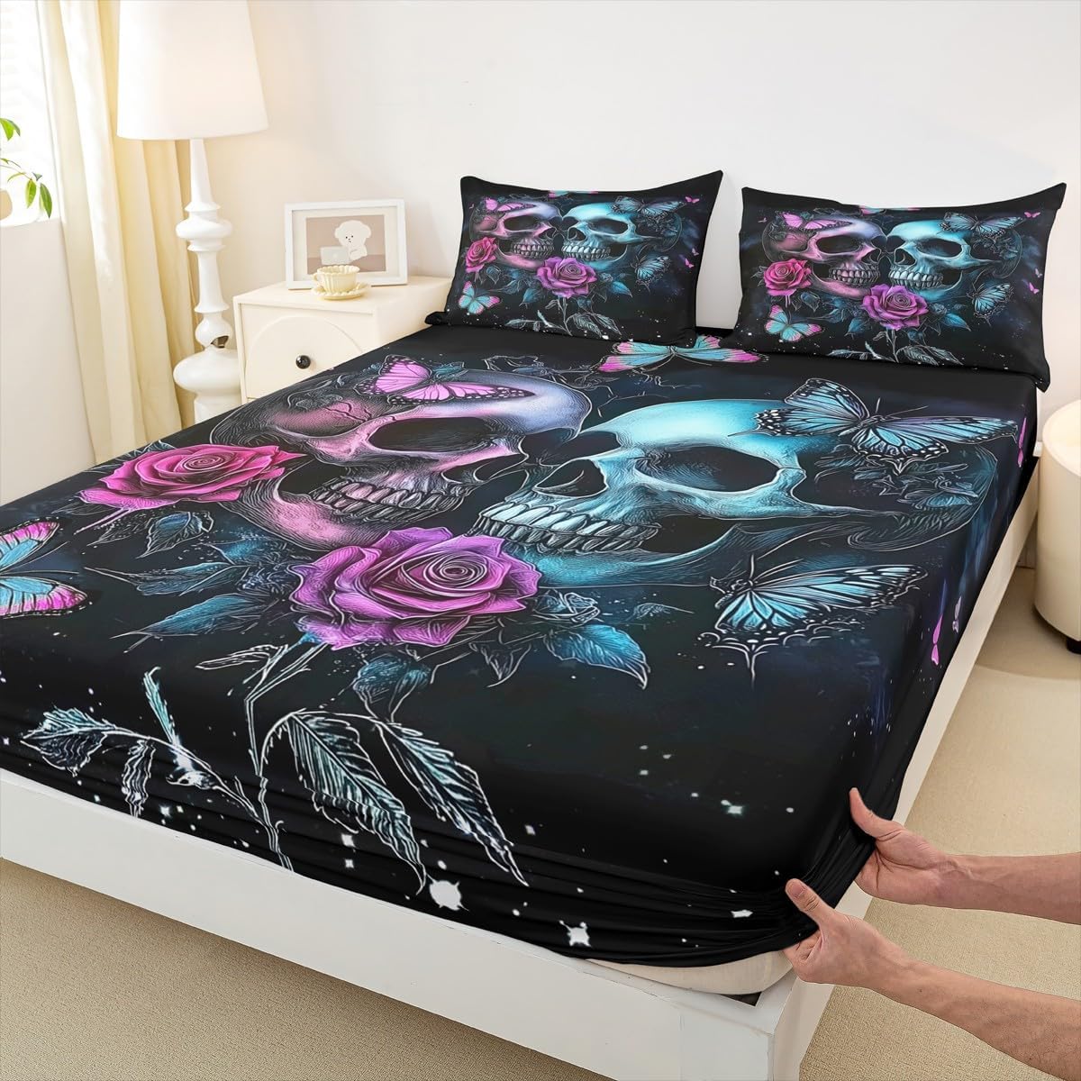 Our bed sheet is made of polyester fabric, lightweight and soft; stylish design is very suitable as room decoration for boys and girls; keep warm in winter and cool in summer; create a comfortable sleeping environment to make you fall asleep all night Range of size 1 twin fitted sheet 39 inch x 75 inch x 16 inch and 1 twin flat sheet 66 inch x 96 inch and 1 standard pillowcase 20 inch x 30 inch 1 full fitted sheet 54 inch x 75 inch x 16 inch and 1 full flat sheet 81 inch x 96 inch and 2 standard pillowcase 20 inch x 30 inch 1 queen fitted sheet 60 inch x 80 inch x 16 inch and 1 queen flat sheet 90 inch x 102 inch and 2 standard pillowcase 20 inch x 30 inch 1 king fitted sheet 78 inch x 80 inch x 16 inch and 1 king flat sheet 90 inch x 106 inch and 2 standard pillowcase 20 inch x 36 inch