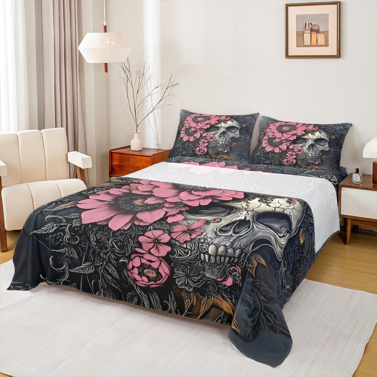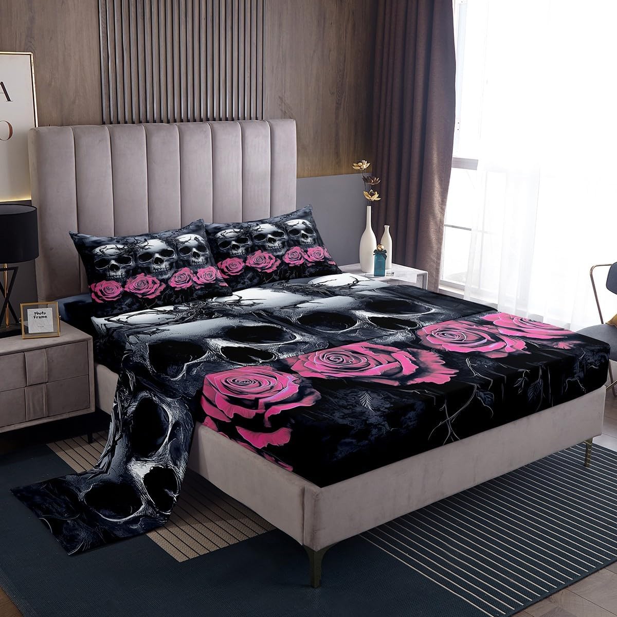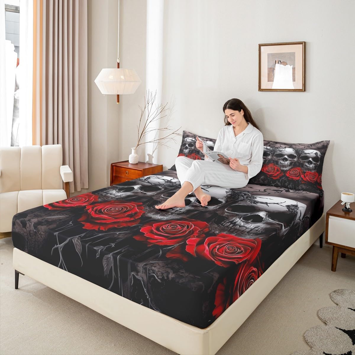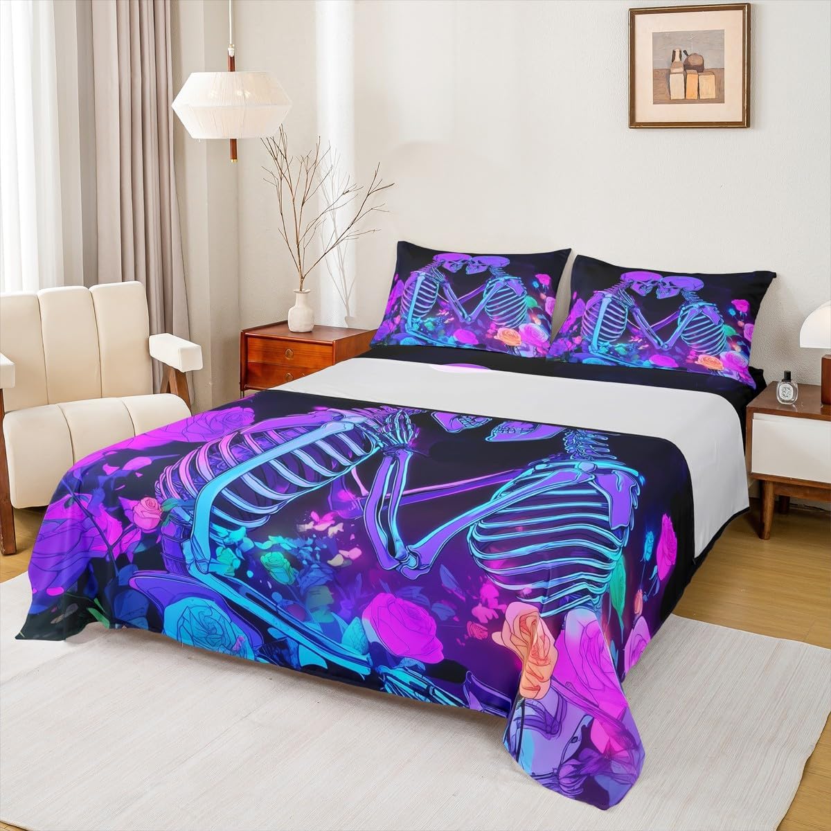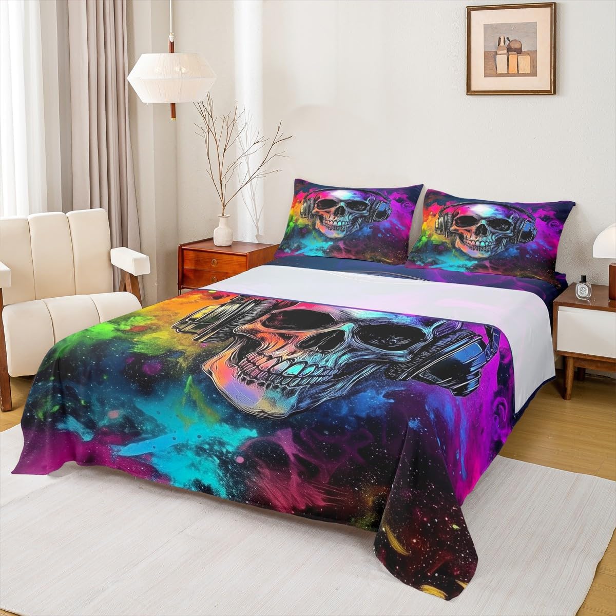 Our bed sheet is made of polyester fabric, lightweight and soft; stylish design is very suitable as room decoration for boys and girls; keep warm in winter and cool in summer; create a comfortable sleeping environment to make you fall asleep all night Range of size 1 twin fitted sheet 39 inch x 75 inch x 16 inch and 1 twin flat sheet 66 inch x 96 inch and 1 standard pillowcase 20 inch x 30 inch 1 full fitted sheet 54 inch x 75 inch x 16 inch and 1 full flat sheet 81 inch x 96 inch and 2 standard pillowcase 20 inch x 30 inch 1 queen fitted sheet 60 inch x 80 inch x 16 inch and 1 queen flat sheet 90 inch x 102 inch and 2 standard pillowcase 20 inch x 30 inch 1 king fitted sheet 78 inch x 80 inch x 16 inch and 1 king flat sheet 90 inch x 106 inch and 2 standard pillowcase 20 inch x 36 inch