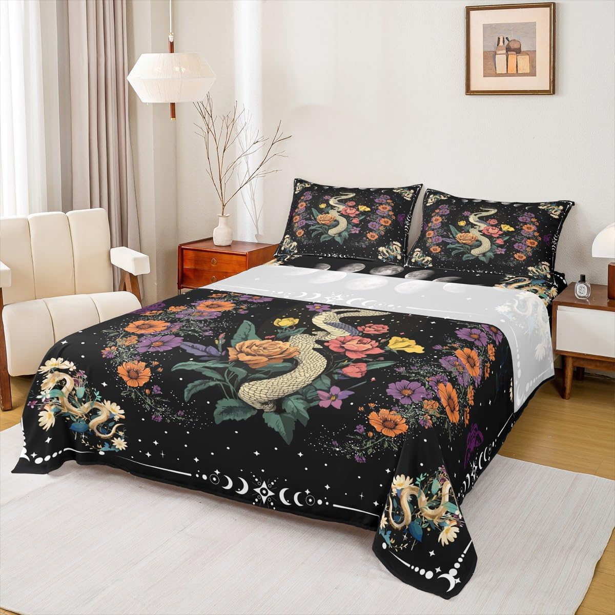 Package Include:1 fitted sheet,1 flat sheet, 1 Pillowcase or 2 Pillowcases;Our high quality designs match any decor; High-end Fitted Sheet Set Pattern Bedding Set, simply decorating your rooms any time you want, bringing you fresh feel for year round use; Durable: Made from 100% polyester microfiber, the sheet set offers long-lasting strength, anatural resistance to shrinking and a noticeably soft hand feel; Size Information: Twin size :3pcs Fitted Sheet set, 1 Fitted Sheet 39"W x 75"L x 16"H,99 x 190 x 40 cm , 1 Flat Sheet 66"W x 96"L,170x245 cm , 1 pillowcase 20" x 30",51x75 cm ; Full size :4pcs Fitted Sheet set, 1 Fitted Sheet 54"W x 75"L x 16"H,137 x 191x 40 cm , 1 Flat Sheet 81"W x 96"L,205x245 cm , 2 pillowcase 20" x 30",51 x 75 cm ; Queen size :4pcs Fitted Sheet set, 1 Fitted Sheet 60"W x 80"L x 16"H,152 x 203x 40 cm , 1 Flat Sheet 90"W x 102"L,230x260 cm , 2 pillowcase 20" x 30",51 x 75 cm ; King size ,4pcs Fitted Sheet set : 78"W x 80"L x 16"H,198 x 203x 40 cm , 1 Flat Sheet 90"W x 106"L,229x270 cm , 2 pillowcase 20" x 36",50 x 90 cm ;Personalize your bedroom:Beautiful design and colorful print, makes your bedroom unique and brings you a wonderful dream;Washing instructionsMachine wash separately in cold water,hang dry, do not bleach; Occasion:The soft Fitted Sheet bedding sets designed for Children ,Adult, Men, Women, Teens; This Fitted Sheet set is also suitable for full seasons, Spring, Summer, Autumn and Winter;After Service: We are dedicated to ensuring you have an excellent experience, from the moment you place your order until you sleep on your new bedding the first time;If you have any dissatisfaction with the product, we will provide a solution as soon as possible;