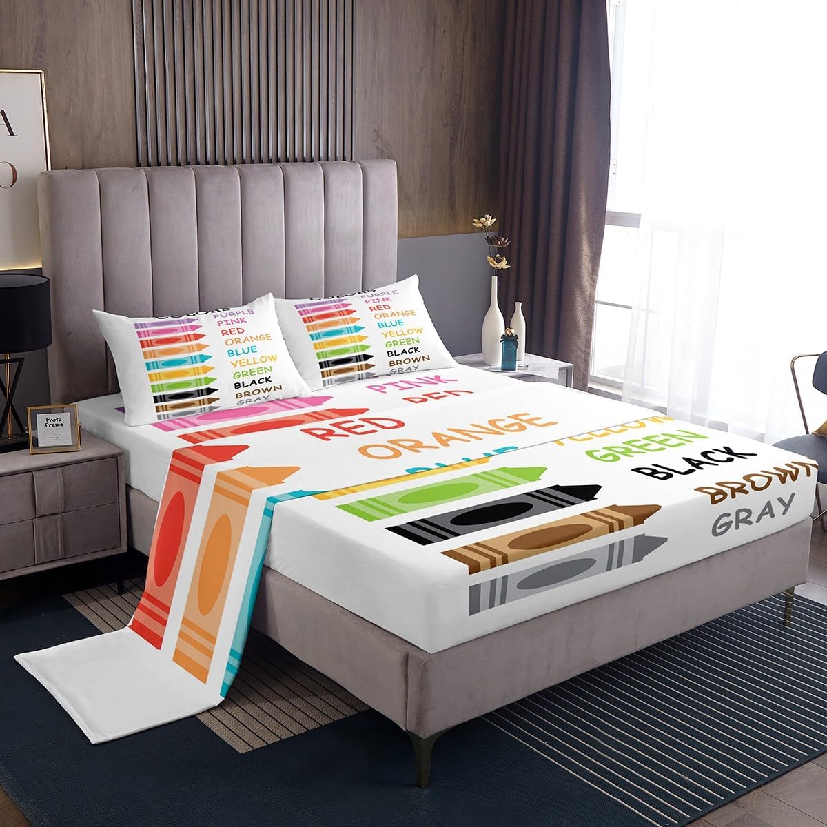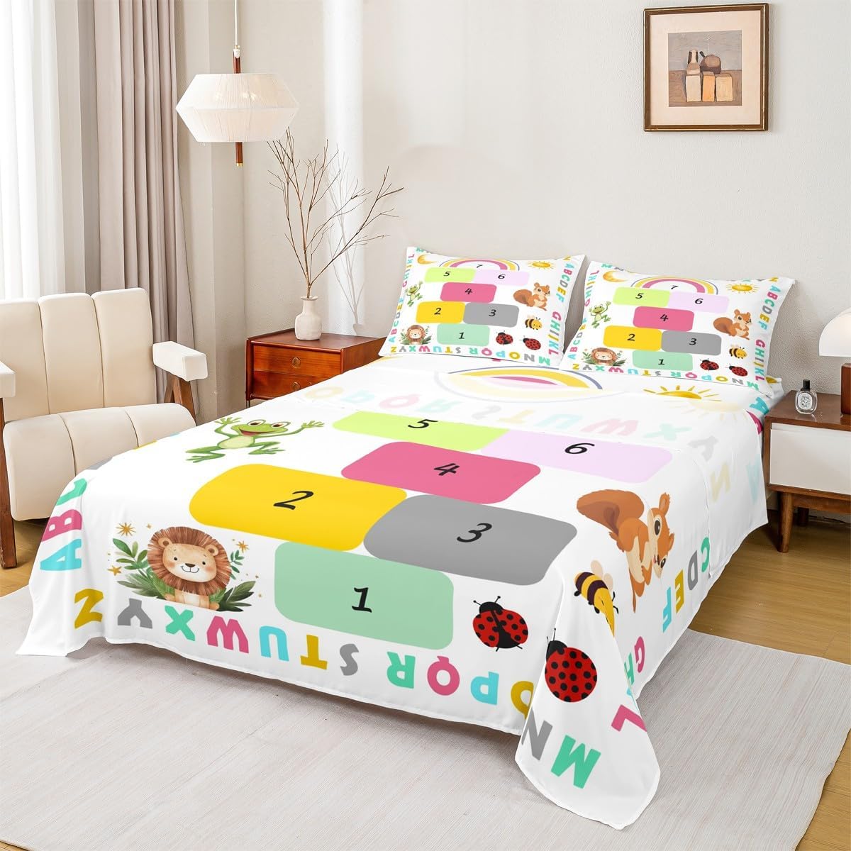 Our bedroom decor bed sheets set look with the vivid stylish and elegant print specifications: Twin Sheet Set: 1 twin fitted Sheet 39 inch x75 inch x16 inch, 1 twin flat sheet 66 inch x96 inch and 1 pillowcase 20 inch x30 inch Full sheet set: 1 full fitted sheet 54 inch x 75 inch x 16 inch, 1 full flat sheet 81 inch x 96 inch and 2 pillowcase 20 inch x 30 inch Queen sheet set: 1 queen fitted sheet 60 inch x 80 inch x 16 inch, 1 queen flat sheet 90 inch x 102 inch and 2 pillowcase 20 inch x 30 inch deep pocket fitted sheet with elastic all around materials: microfiber fabric, lightweight and soft design: With vibrant and novelty designs and 3d print technique, this duvet cover is very suitable as room decor for boys and girls care instructions dry clean preferred; machine washable, use cold water on gentle cycle, tumble dry low