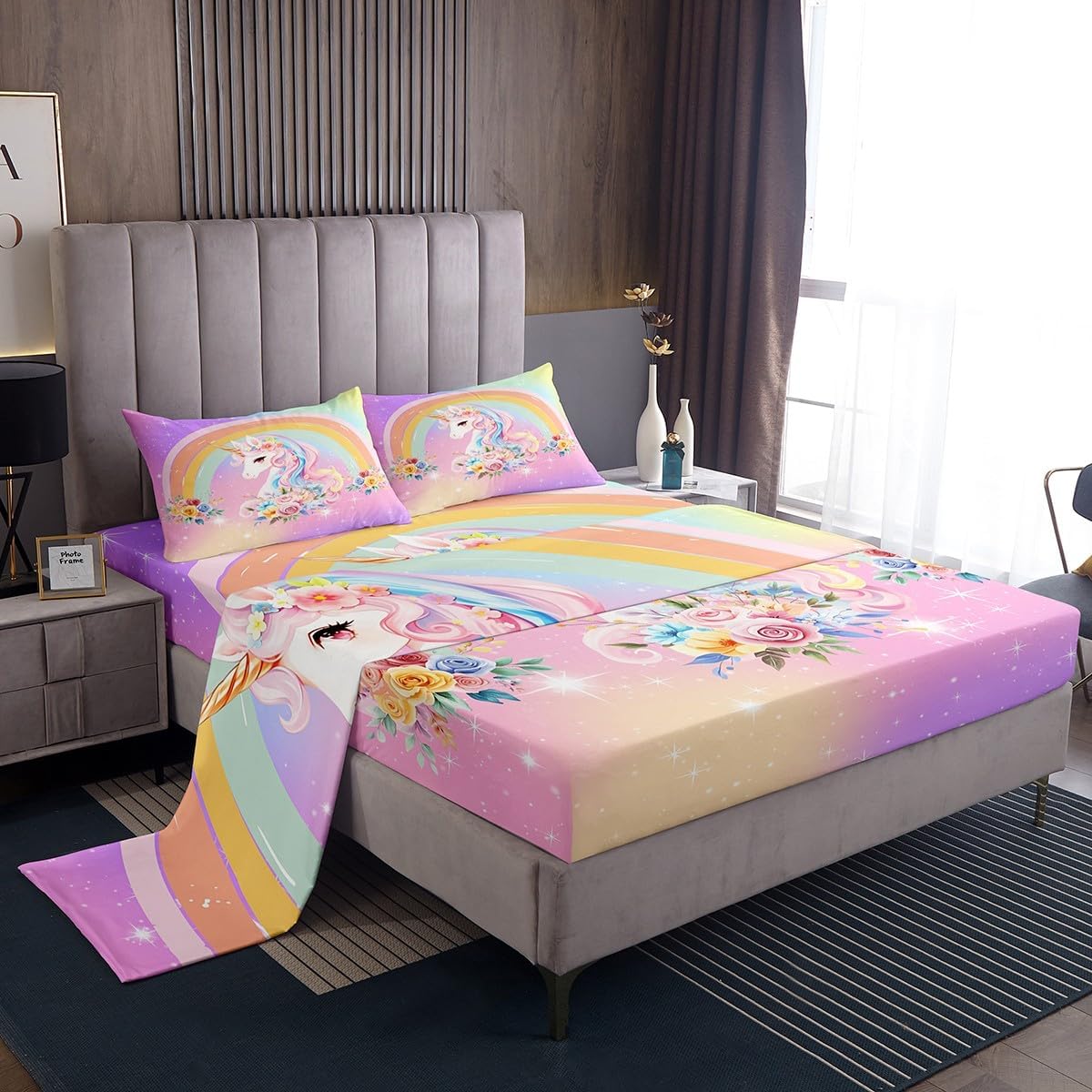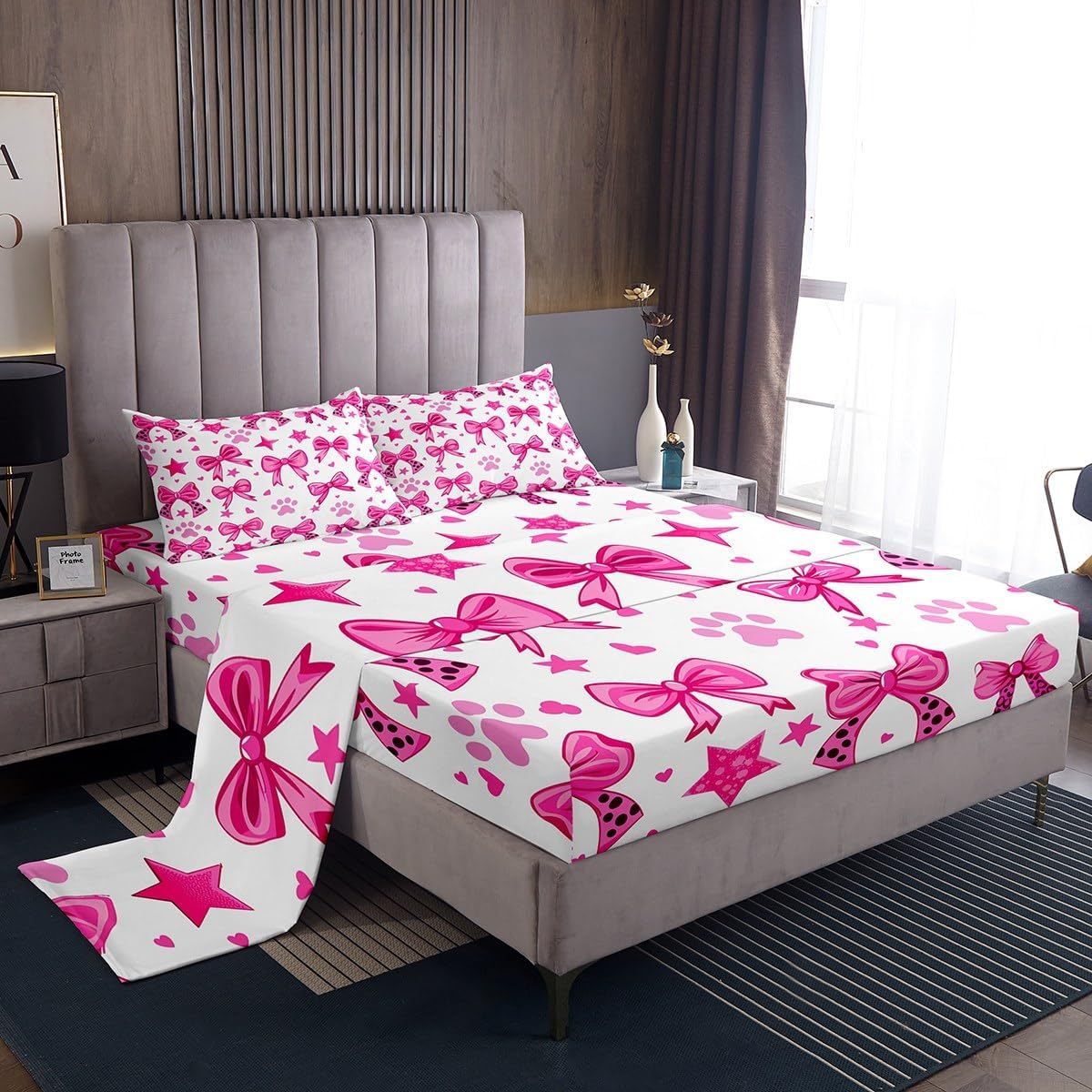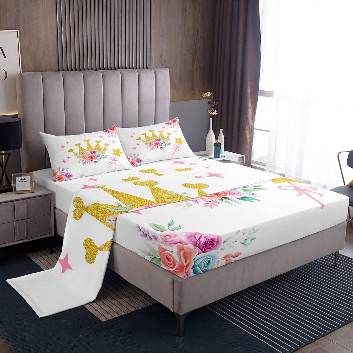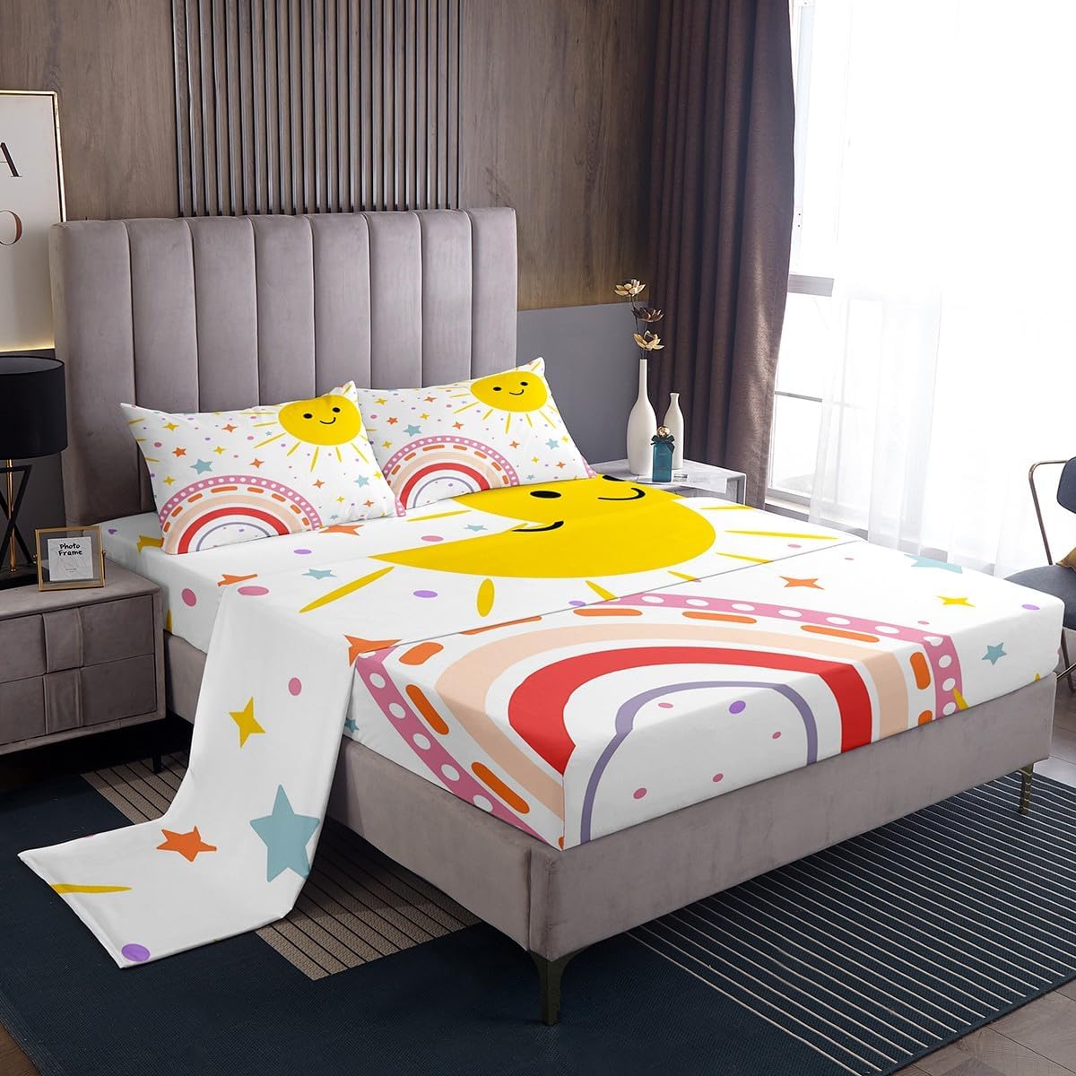 Our bed sheet is made of polyester fabric, lightweight and soft; stylish design is very suitable as room decoration for boys and girls; keep warm in winter and cool in summer; create a comfortable sleeping environment to make you fall asleep all night Range of size 1 twin fitted sheet 39 inch x 75 inch x 16 inch and 1 twin flat sheet 66 inch x 96 inch and 1 standard pillowcase 20 inch x 30 inch 1 full fitted sheet 54 inch x 75 inch x 16 inch and 1 full flat sheet 81 inch x 96 inch and 2 standard pillowcase 20 inch x 30 inch 1 queen fitted sheet 60 inch x 80 inch x 16 inch and 1 queen flat sheet 90 inch x 102 inch and 2 standard pillowcase 20 inch x 30 inch 1 king fitted sheet 78 inch x 80 inch x 16 inch and 1 king flat sheet 90 inch x 106 inch and 2 standard pillowcase 20 inch x 36 inch