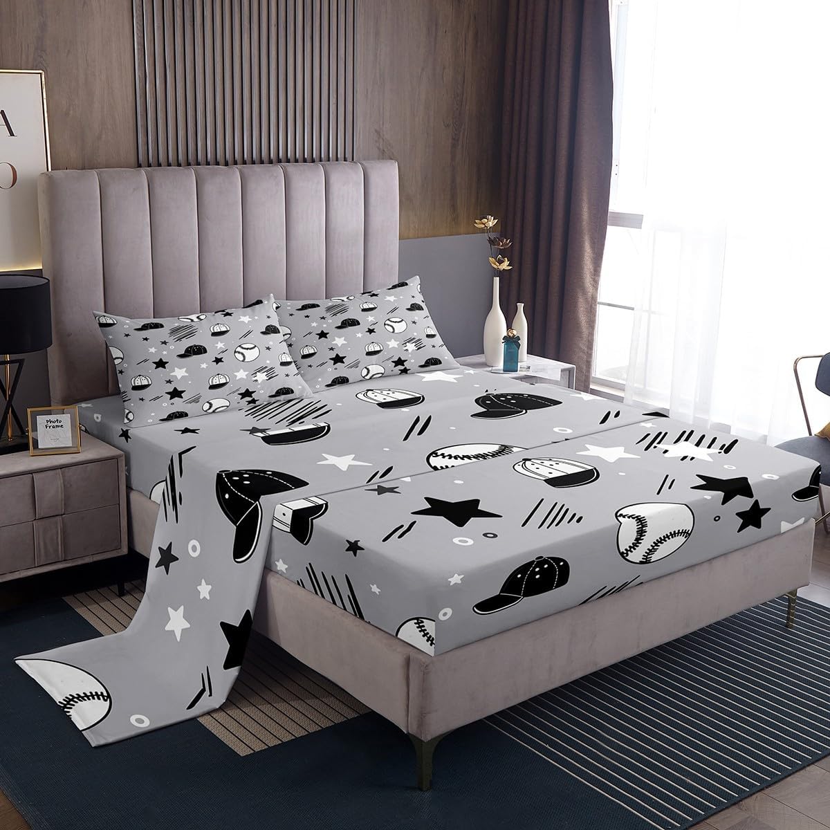 Our bed sheet is made of polyester fabric, lightweight and soft; stylish design is very suitable as room decoration for boys and girls; keep warm in winter and cool in summer; create a comfortable sleeping environment to make you fall asleep all night Range of size 1 twin fitted sheet 39 inch x 75 inch x 16 inch and 1 twin flat sheet 66 inch x 96 inch and 1 standard pillowcase 20 inch x 30 inch 1 full fitted sheet 54 inch x 75 inch x 16 inch and 1 full flat sheet 81 inch x 96 inch and 2 standard pillowcase 20 inch x 30 inch 1 queen fitted sheet 60 inch x 80 inch x 16 inch and 1 queen flat sheet 90 inch x 102 inch and 2 standard pillowcase 20 inch x 30 inch 1 king fitted sheet 78 inch x 80 inch x 16 inch and 1 king flat sheet 90 inch x 106 inch and 2 standard pillowcase 20 inch x 36 inch