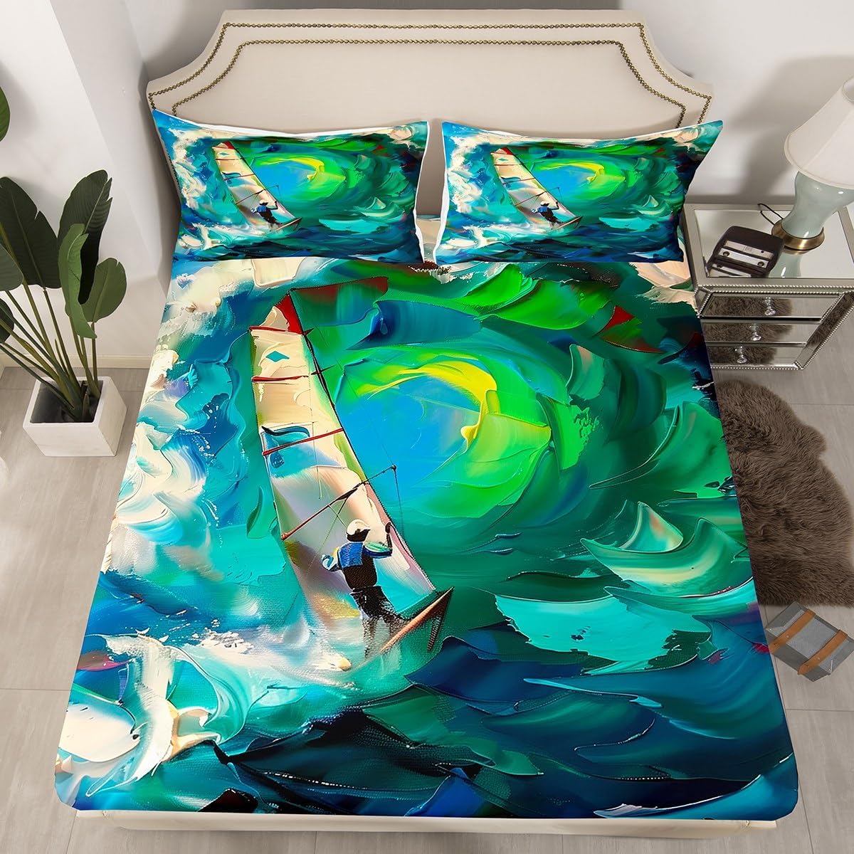 Size Information Twin size: 1 Fitted Sheet 39"Wx75"Lx16"H and 1 Pillowcase 20"Wx30"L. Full size: 1 Fitted Sheet 54"Wx75"Lx16"H and 2 Pillowcases 20"Wx30"L. Queen size: 1 Fitted Sheet 60"Wx80"Lx16"H and 2 Pillowcases 20"Wx30"L. Versatility We have many kinds of styles for you to choose. You can easily find a product that suits the style of your room. The item is not only suitable for your home, bedroom, guest room, living room, or rv, your families, friends, relatives, boyfriend, girlfriend. Modern Design The luxury aesthetic bedding set is made reactive printing and dyeing process. The pattern is clear, the color is bright, which will not fade after repeated washing. Personalized As a manufacturer of digital printed home textiles, we follow current trends and bring you the latest and stylish home textile products. The item will make the room decorated in exquisite taste.