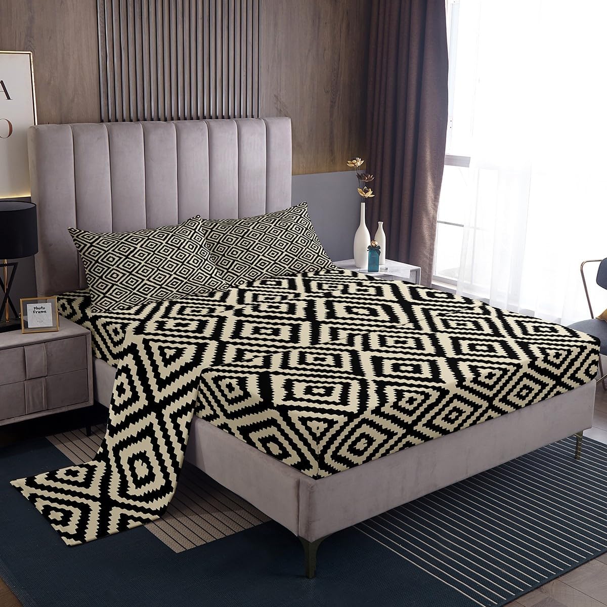 Our bed sheet is made of polyester fabric, lightweight and soft; stylish design is very suitable as room decoration for boys and girls; keep warm in winter and cool in summer; create a comfortable sleeping environment to make you fall asleep all night Range of size 1 twin fitted sheet 39 inch x 75 inch x 16 inch and 1 twin flat sheet 66 inch x 96 inch and 1 standard pillowcase 20 inch x 30 inch 1 full fitted sheet 54 inch x 75 inch x 16 inch and 1 full flat sheet 81 inch x 96 inch and 2 standard pillowcase 20 inch x 30 inch 1 queen fitted sheet 60 inch x 80 inch x 16 inch and 1 queen flat sheet 90 inch x 102 inch and 2 standard pillowcase 20 inch x 30 inch 1 king fitted sheet 78 inch x 80 inch x 16 inch and 1 king flat sheet 90 inch x 106 inch and 2 standard pillowcase 20 inch x 36 inch