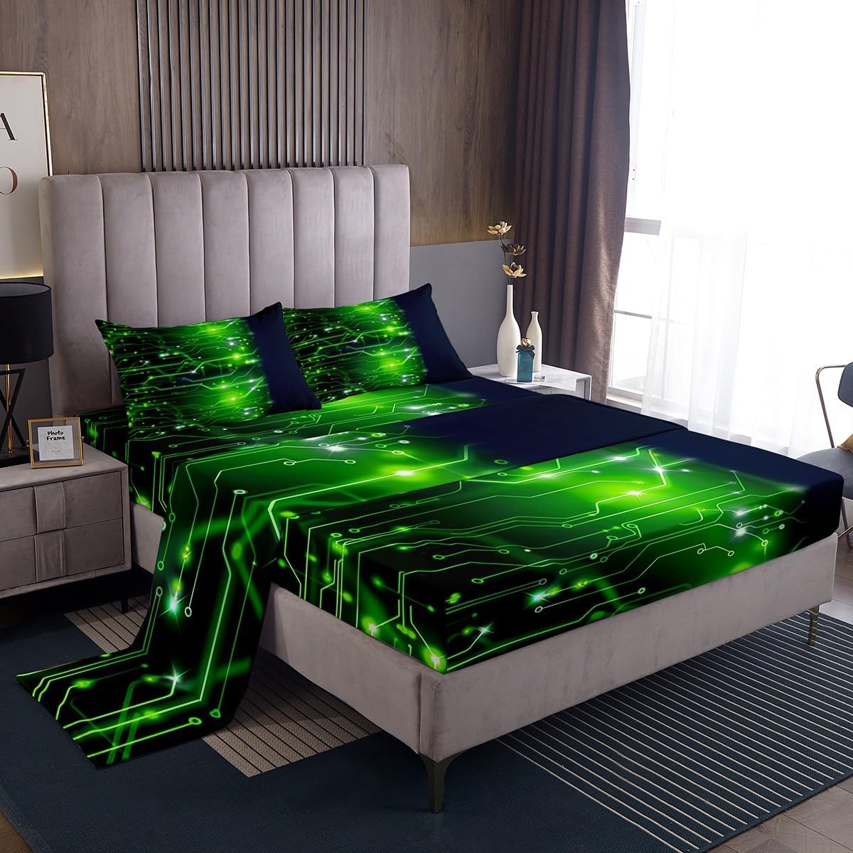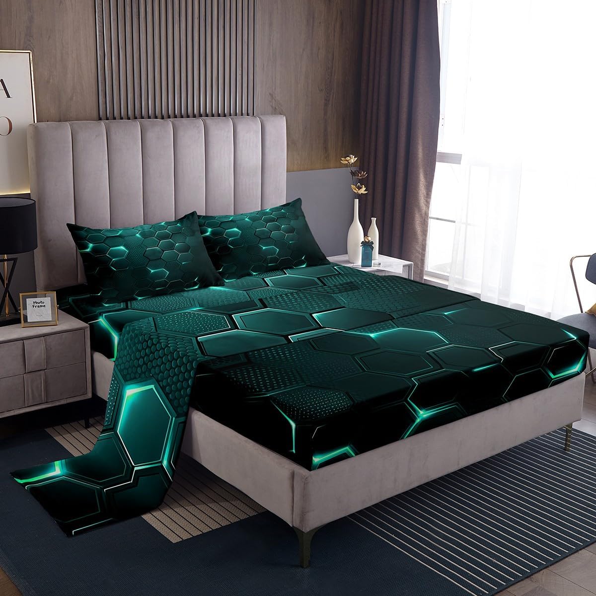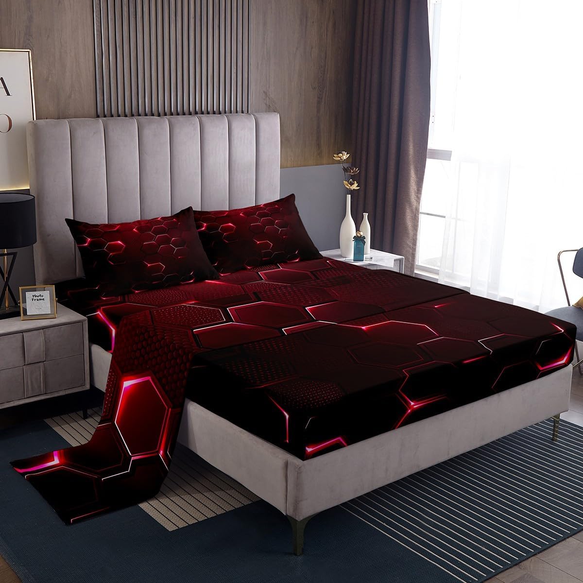 Our bed sheet is made of polyester fabric, lightweight and soft; stylish design is very suitable as room decoration for boys and girls; keep warm in winter and cool in summer; create a comfortable sleeping environment to make you fall asleep all night Range of size 1 twin fitted sheet 39 inch x 75 inch x 16 inch and 1 twin flat sheet 66 inch x 96 inch and 1 standard pillowcase 20 inch x 30 inch 1 full fitted sheet 54 inch x 75 inch x 16 inch and 1 full flat sheet 81 inch x 96 inch and 2 standard pillowcase 20 inch x 30 inch 1 queen fitted sheet 60 inch x 80 inch x 16 inch and 1 queen flat sheet 90 inch x 102 inch and 2 standard pillowcase 20 inch x 30 inch 1 king fitted sheet 78 inch x 80 inch x 16 inch and 1 king flat sheet 90 inch x 106 inch and 2 standard pillowcase 20 inch x 36 inch