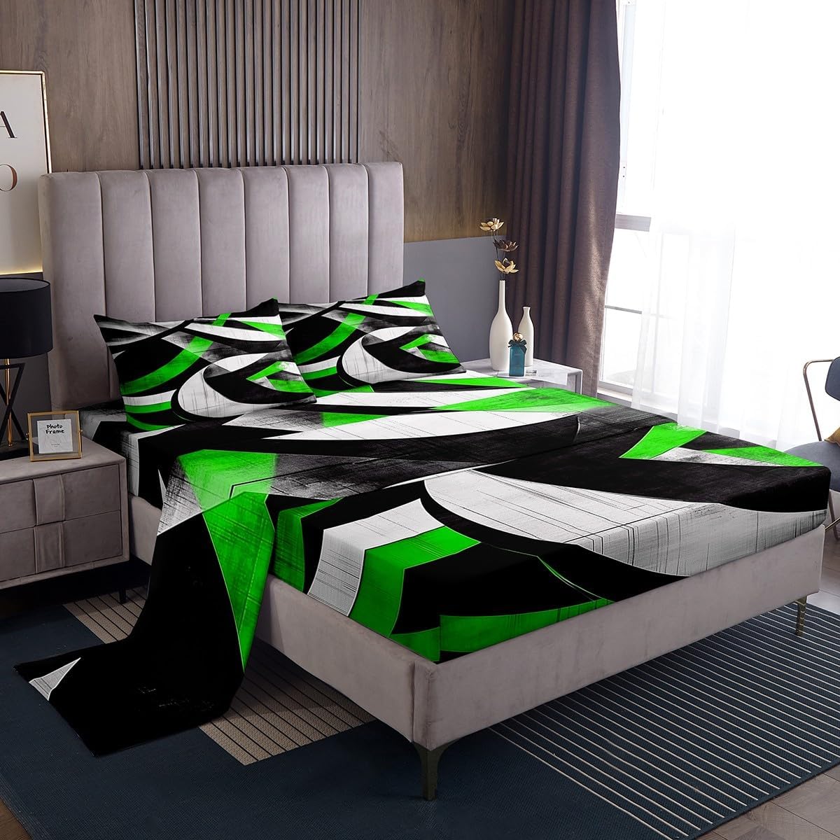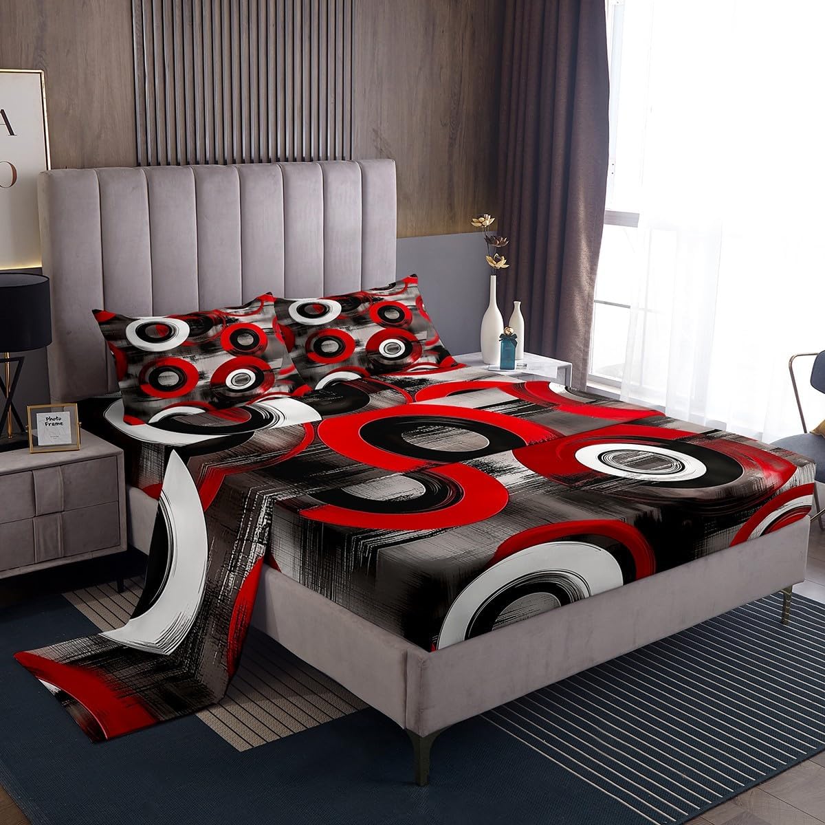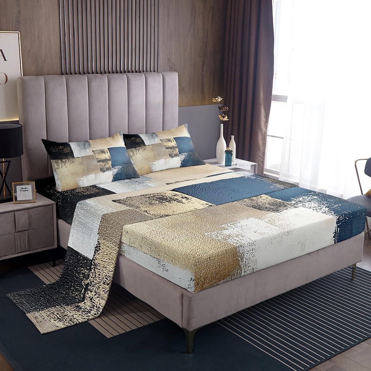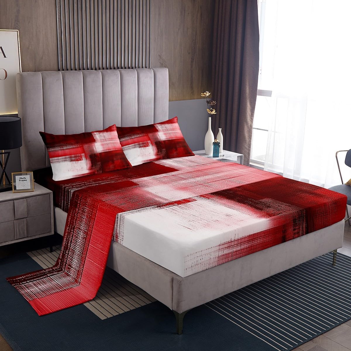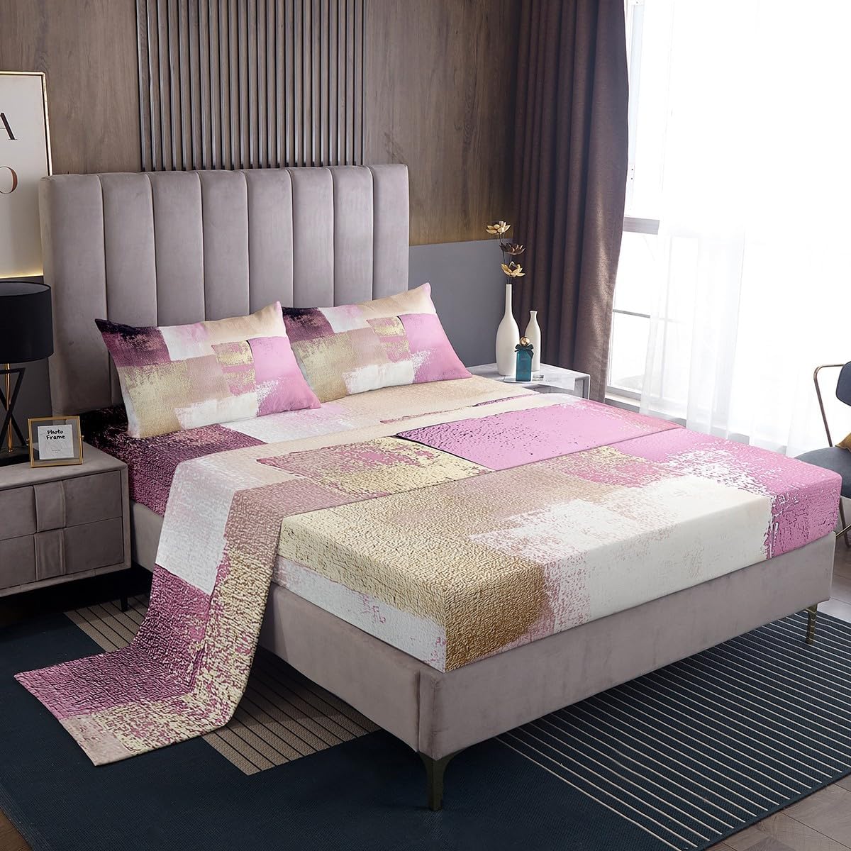 Our bed sheet is made of polyester fabric, lightweight and soft; stylish design is very suitable as room decoration for boys and girls; keep warm in winter and cool in summer; create a comfortable sleeping environment to make you fall asleep all night Range of size 1 twin fitted sheet 39 inch x 75 inch x 16 inch and 1 twin flat sheet 66 inch x 96 inch and 1 standard pillowcase 20 inch x 30 inch 1 full fitted sheet 54 inch x 75 inch x 16 inch and 1 full flat sheet 81 inch x 96 inch and 2 standard pillowcase 20 inch x 30 inch 1 queen fitted sheet 60 inch x 80 inch x 16 inch and 1 queen flat sheet 90 inch x 102 inch and 2 standard pillowcase 20 inch x 30 inch 1 king fitted sheet 78 inch x 80 inch x 16 inch and 1 king flat sheet 90 inch x 106 inch and 2 standard pillowcase 20 inch x 36 inch