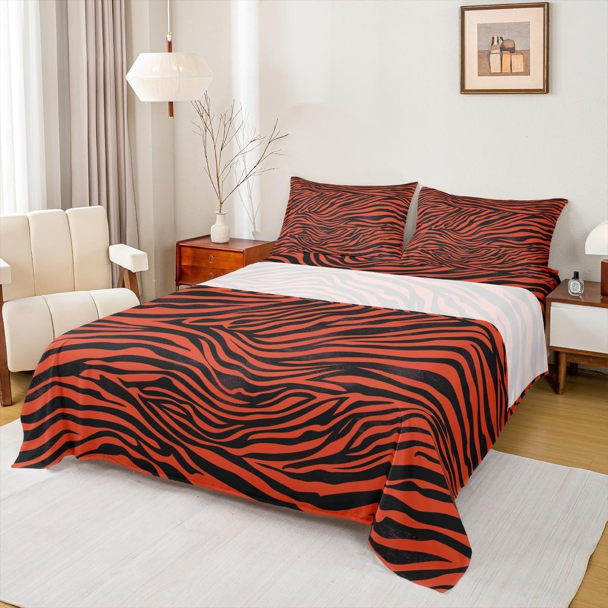 Our bed sheet is made of polyester fabric, lightweight and soft; stylish design is very suitable as room decoration for boys and girls; keep warm in winter and cool in summer; create a comfortable sleeping environment to make you fall asleep all night Range of size 1 twin fitted sheet 39 inch x 75 inch x 16 inch and 1 twin flat sheet 66 inch x 96 inch and 1 standard pillowcase 20 inch x 30 inch 1 full fitted sheet 54 inch x 75 inch x 16 inch and 1 full flat sheet 81 inch x 96 inch and 2 standard pillowcase 20 inch x 30 inch 1 queen fitted sheet 60 inch x 80 inch x 16 inch and 1 queen flat sheet 90 inch x 102 inch and 2 standard pillowcase 20 inch x 30 inch 1 king fitted sheet 78 inch x 80 inch x 16 inch and 1 king flat sheet 90 inch x 106 inch and 2 standard pillowcase 20 inch x 36 inch