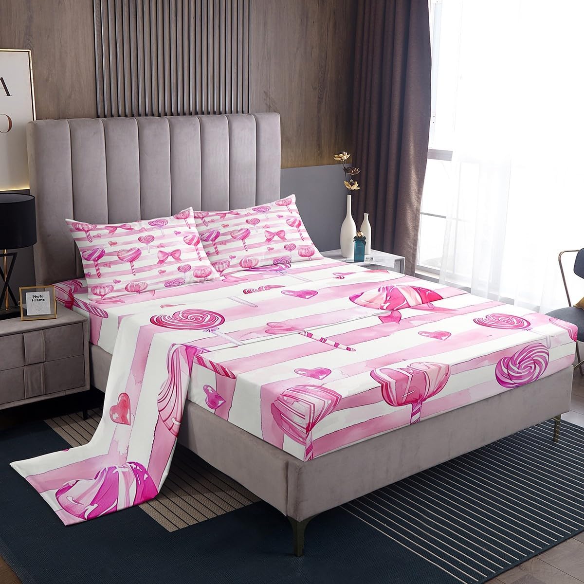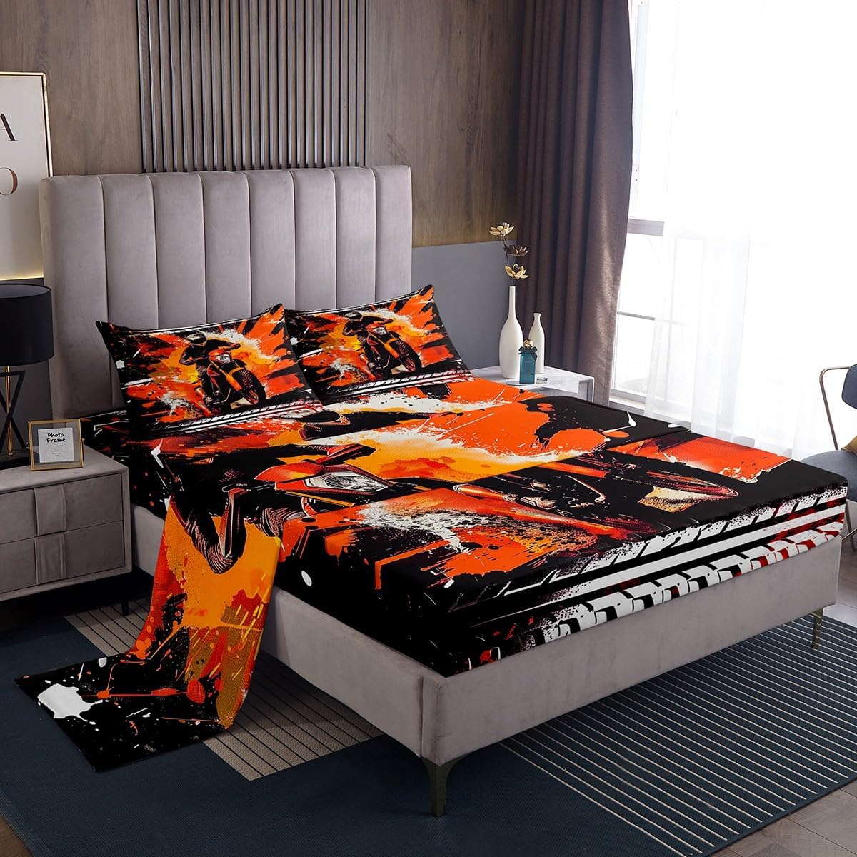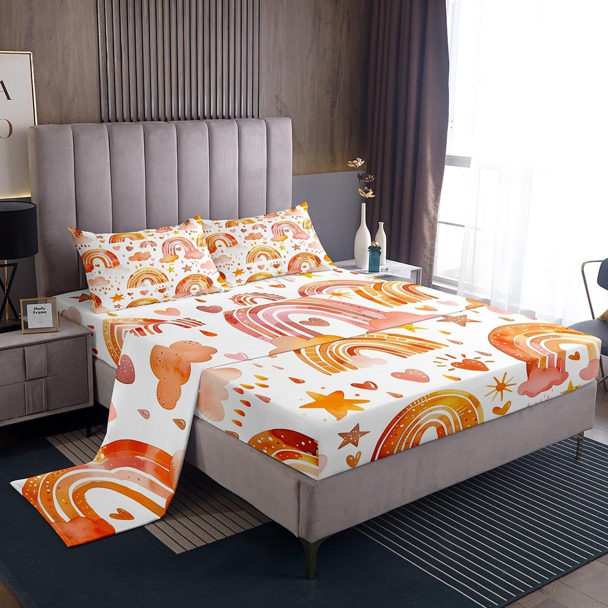 Our bed sheet is made of polyester fabric, lightweight and soft; stylish design is very suitable as room decoration for boys and girls; keep warm in winter and cool in summer; create a comfortable sleeping environment to make you fall asleep all night Range of size 1 twin fitted sheet 39 inch x 75 inch x 16 inch and 1 twin flat sheet 66 inch x 96 inch and 1 standard pillowcase 20 inch x 30 inch 1 full fitted sheet 54 inch x 75 inch x 16 inch and 1 full flat sheet 81 inch x 96 inch and 2 standard pillowcase 20 inch x 30 inch 1 queen fitted sheet 60 inch x 80 inch x 16 inch and 1 queen flat sheet 90 inch x 102 inch and 2 standard pillowcase 20 inch x 30 inch 1 king fitted sheet 78 inch x 80 inch x 16 inch and 1 king flat sheet 90 inch x 106 inch and 2 standard pillowcase 20 inch x 36 inch