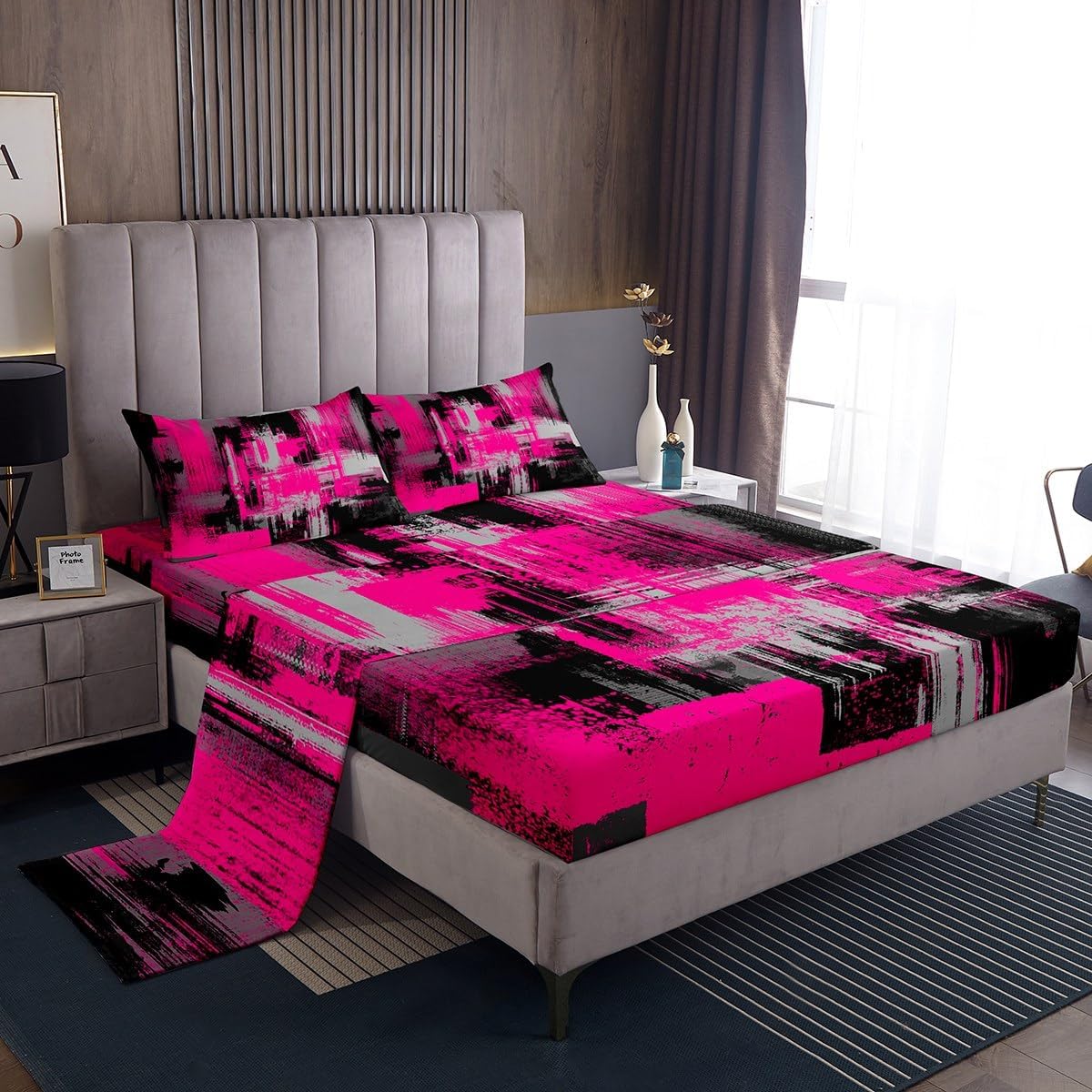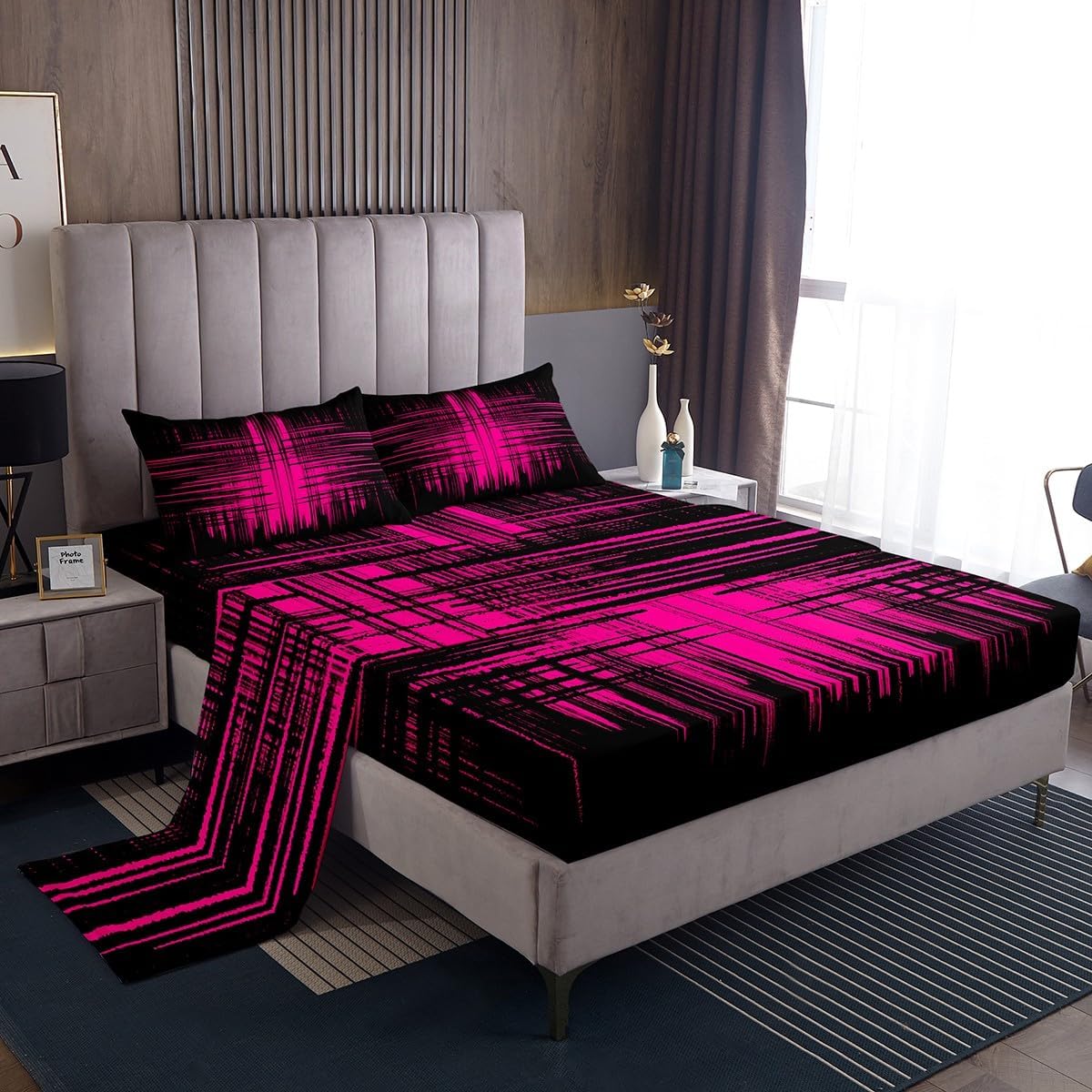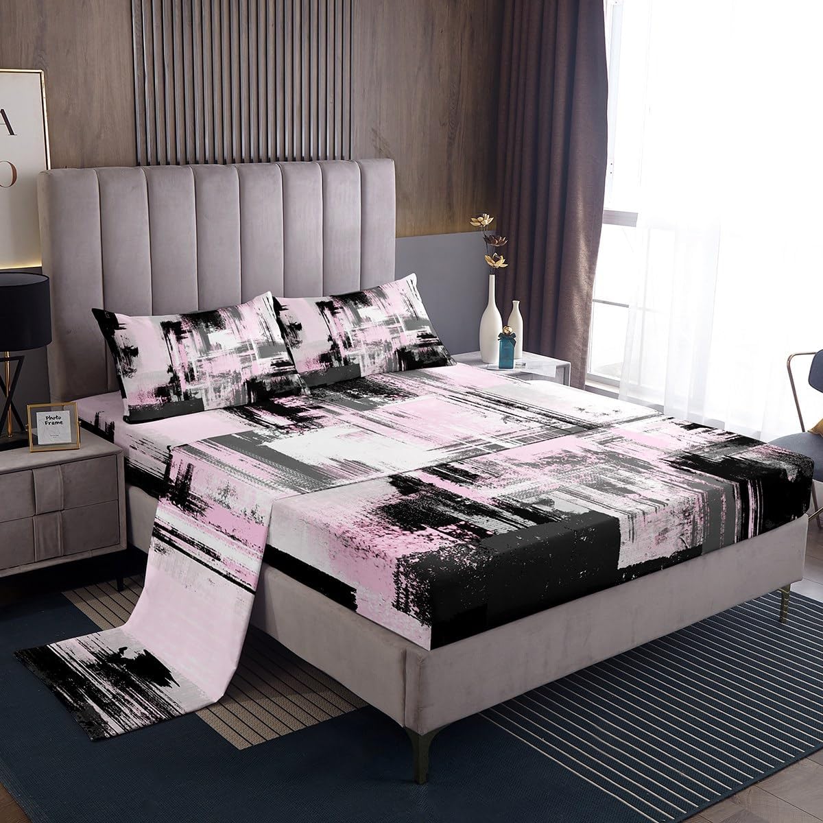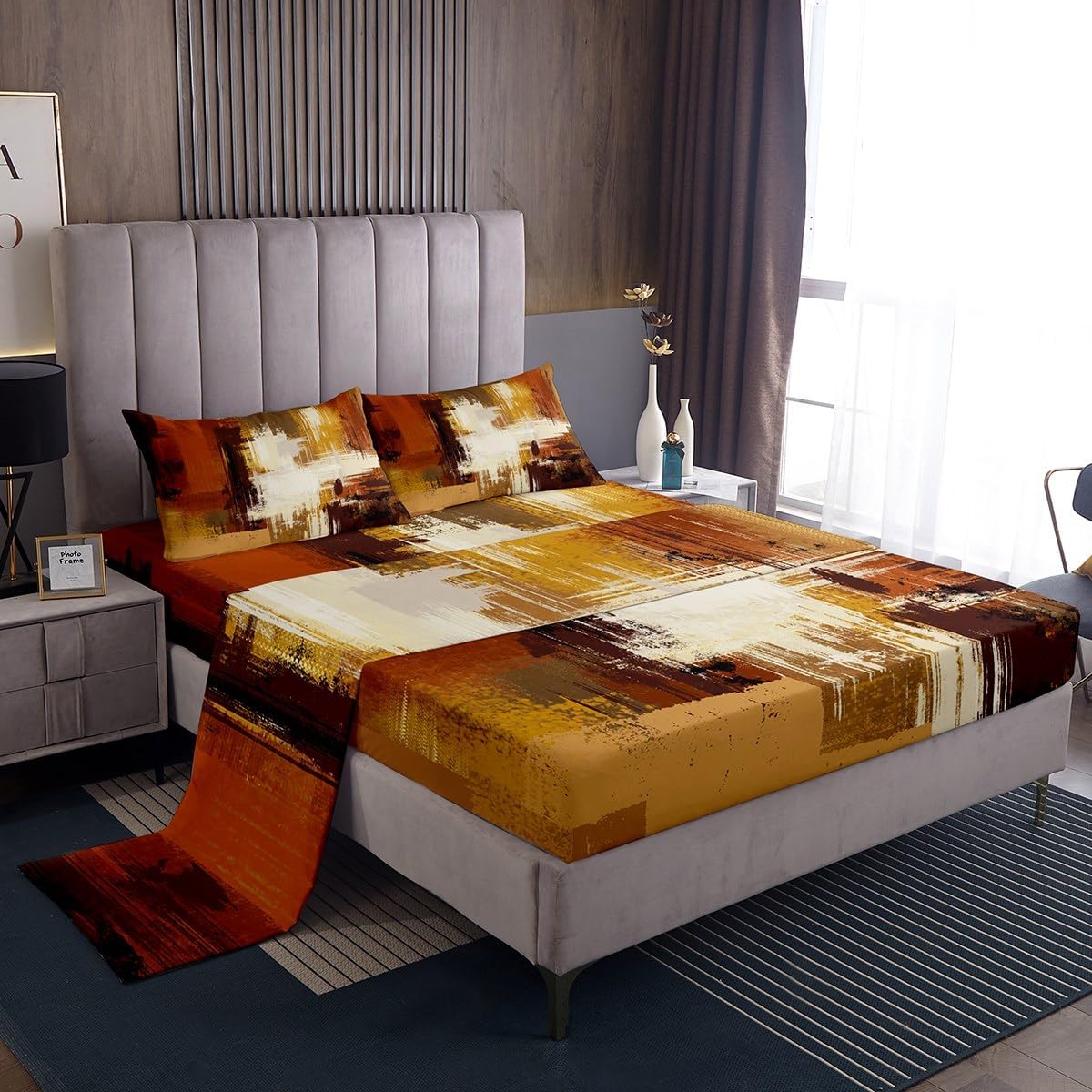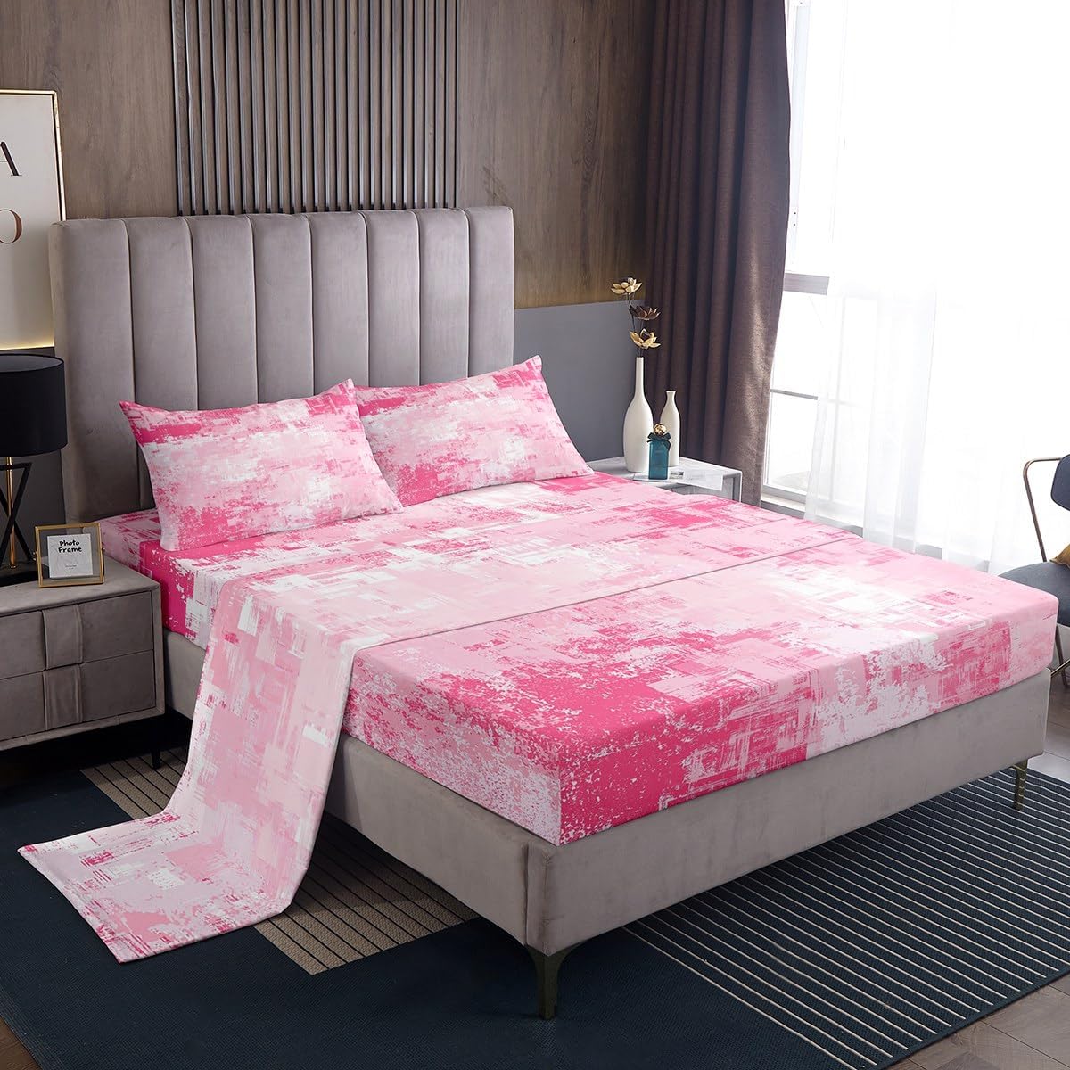 Our bed sheet is made of polyester fabric, lightweight and soft; stylish design is very suitable as room decoration for boys and girls; keep warm in winter and cool in summer; create a comfortable sleeping environment to make you fall asleep all night Range of size 1 twin fitted sheet 39 inch x 75 inch x 16 inch and 1 twin flat sheet 66 inch x 96 inch and 1 standard pillowcase 20 inch x 30 inch 1 full fitted sheet 54 inch x 75 inch x 16 inch and 1 full flat sheet 81 inch x 96 inch and 2 standard pillowcase 20 inch x 30 inch 1 queen fitted sheet 60 inch x 80 inch x 16 inch and 1 queen flat sheet 90 inch x 102 inch and 2 standard pillowcase 20 inch x 30 inch 1 king fitted sheet 78 inch x 80 inch x 16 inch and 1 king flat sheet 90 inch x 106 inch and 2 standard pillowcase 20 inch x 36 inch