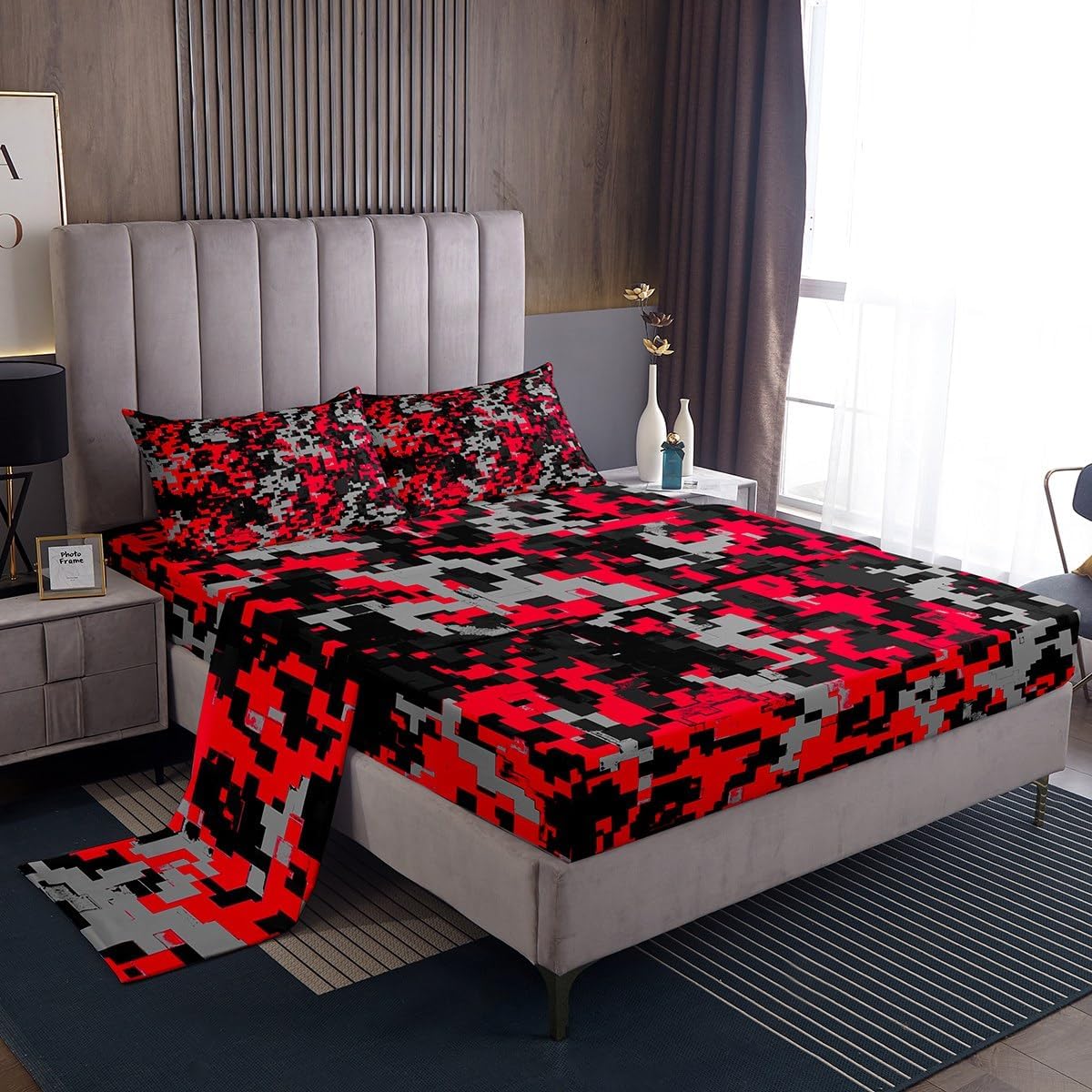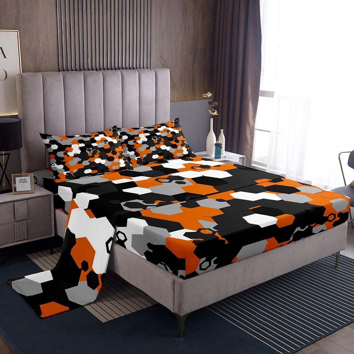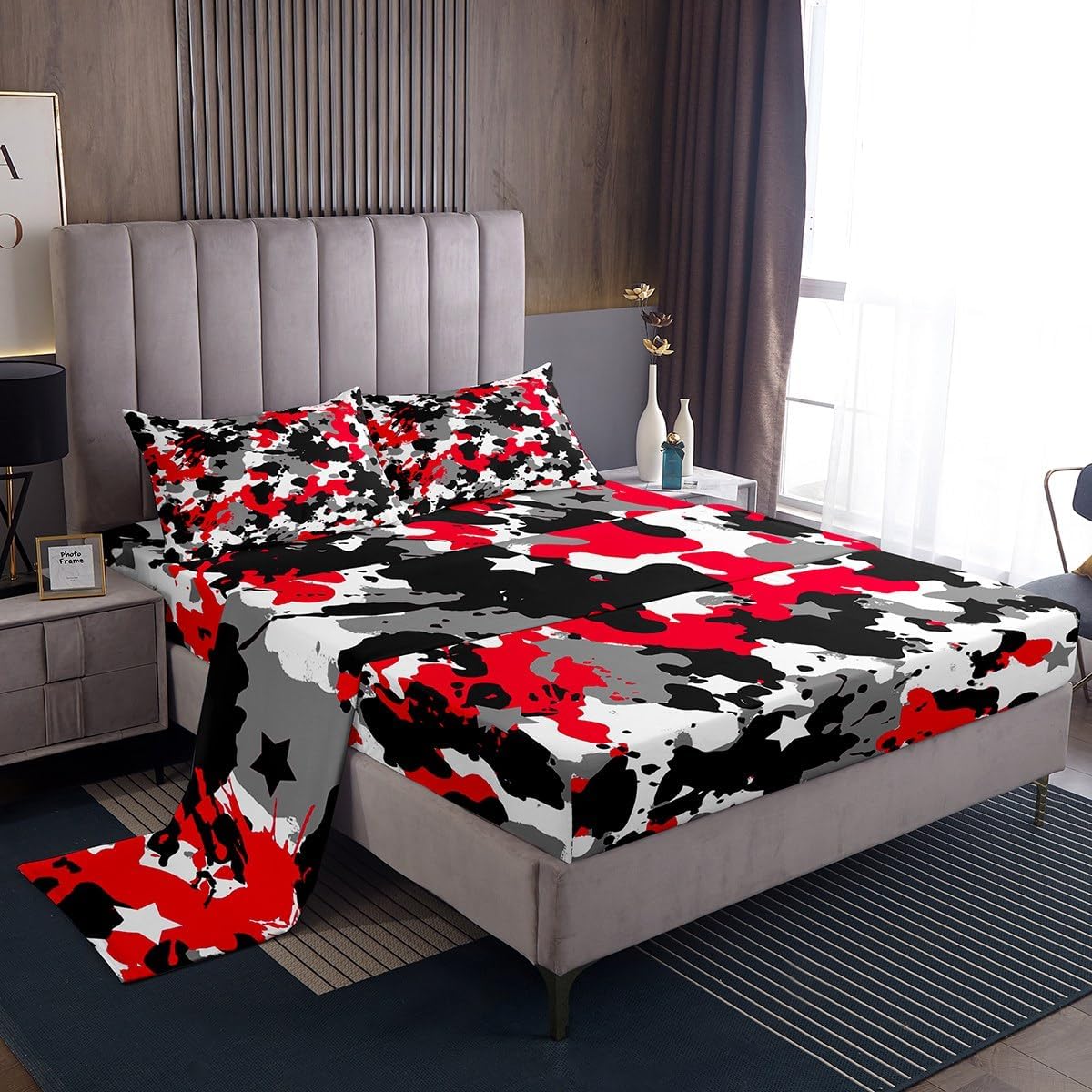 Our bed sheet is made of polyester fabric, lightweight and soft; stylish design is very suitable as room decoration for boys and girls; keep warm in winter and cool in summer; create a comfortable sleeping environment to make you fall asleep all night Range of size 1 twin fitted sheet 39 inch x 75 inch x 16 inch and 1 twin flat sheet 66 inch x 96 inch and 1 standard pillowcase 20 inch x 30 inch 1 full fitted sheet 54 inch x 75 inch x 16 inch and 1 full flat sheet 81 inch x 96 inch and 2 standard pillowcase 20 inch x 30 inch 1 queen fitted sheet 60 inch x 80 inch x 16 inch and 1 queen flat sheet 90 inch x 102 inch and 2 standard pillowcase 20 inch x 30 inch 1 king fitted sheet 78 inch x 80 inch x 16 inch and 1 king flat sheet 90 inch x 106 inch and 2 standard pillowcase 20 inch x 36 inch