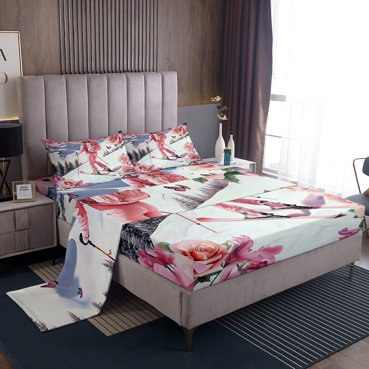 Package Include: Fitted Sheet, Flat Sheet and Pillowcase. High quality Fitted Sheet Set 3D Pattern Bedding Set, simply decorating your rooms any time you want, bringing you fresh feel for year round use. Size Information: Twin size 3pcs Fitted Sheet set: 1 Fitted Sheet 39"W x 75"L x 16"H, 1 Flat Sheet 66"W x 96"L, 1 pillowcase 20" x 30" Full size 4pcs Fitted Sheet set: 1 Fitted Sheet 54"W x 75"L x 16"H, 1 Flat Sheet 81"W x 96"L, 2 pillowcase 20" x 30" Queen size 4pcs Fitted Sheet set: 1 Fitted Sheet 60"W x 80"L x 16"H, 1 Flat Sheet 90"W x 102"L, 2 pillowcase 20" x 30" King size 4pcs Fitted Sheet set: 1 Fitted Sheet 78"W x 80"L x 16"H, 1 Flat Sheet 90"W x 106"L, 2 pillowcase 20" x 36" Personalize your bedroom: Beautiful design and colorful print, makes your bedroom unique and brings you a wonderful dream. Washing instructions: Machine wash separately in cold water,hang dry, do not bleach. Occasion: The soft Fitted Sheet bedding sets designed for Children ,Adult, Men, Women, Teens. This Fitted Sheet set is also suitable for full seasons, Spring, Summer, Autumn and Winter.