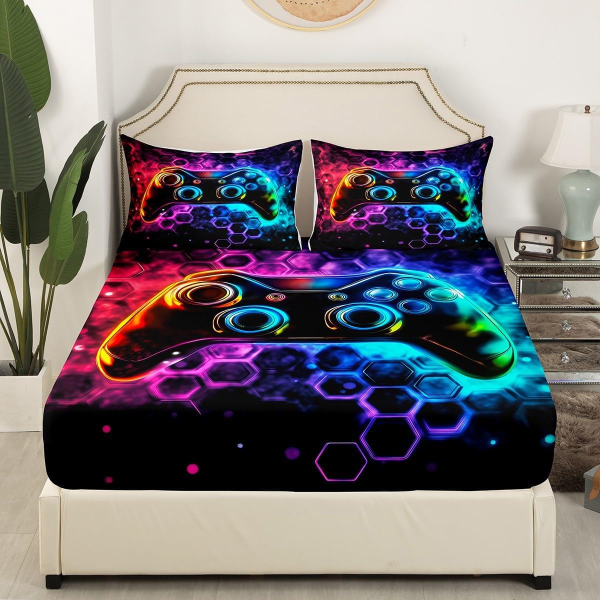 Package Include:1 x fitted sheet,2 x Pillowcases. Fitted sheet set pattern bedding set, simply decorating your rooms any time you want, bringing you fresh feel for year round use. Made from polyester,the sheet set offers long lasting strength,anatural resistance to shrinking and a noticeably soft hand feel. Size Information: Twin size : 1 Fitted Sheet 39"W x 75"L x 16"H ,99 x 190 x 41cm , 1 pillowcase 20" x 30", 51x75cm . Full size : 1 Fitted Sheet 54"W x 75"L x 16"H ,137 x 191x 41cm ,2 pillowcases 20" x 30", 51 x 75cm . Queen size : 1 Fitted Sheet 60"W x 80"L x 16"H ,152 x 203x 41cm ,2 pillowcases 20" x 30", 51 x 75cm . Personalize your bedroom: Beautiful design and colorful print, makes your bedroom unique and brings you a wonderful dream. Washing instructions: Machine wash separately in cold water,hang dry, do not bleach. Occasion: The soft Fitted Sheet bedding sets designed for Children ,Adult, Men, Women, Teens. This Fitted Sheet set is also suitable for full seasons, Spring, Summer, Autumn and Winter. Attention: Due to manual measurement, there may be an error of 1-3 centimeters. Due to the light and screen setting difference, the item's color may be slightly different from the pictures.