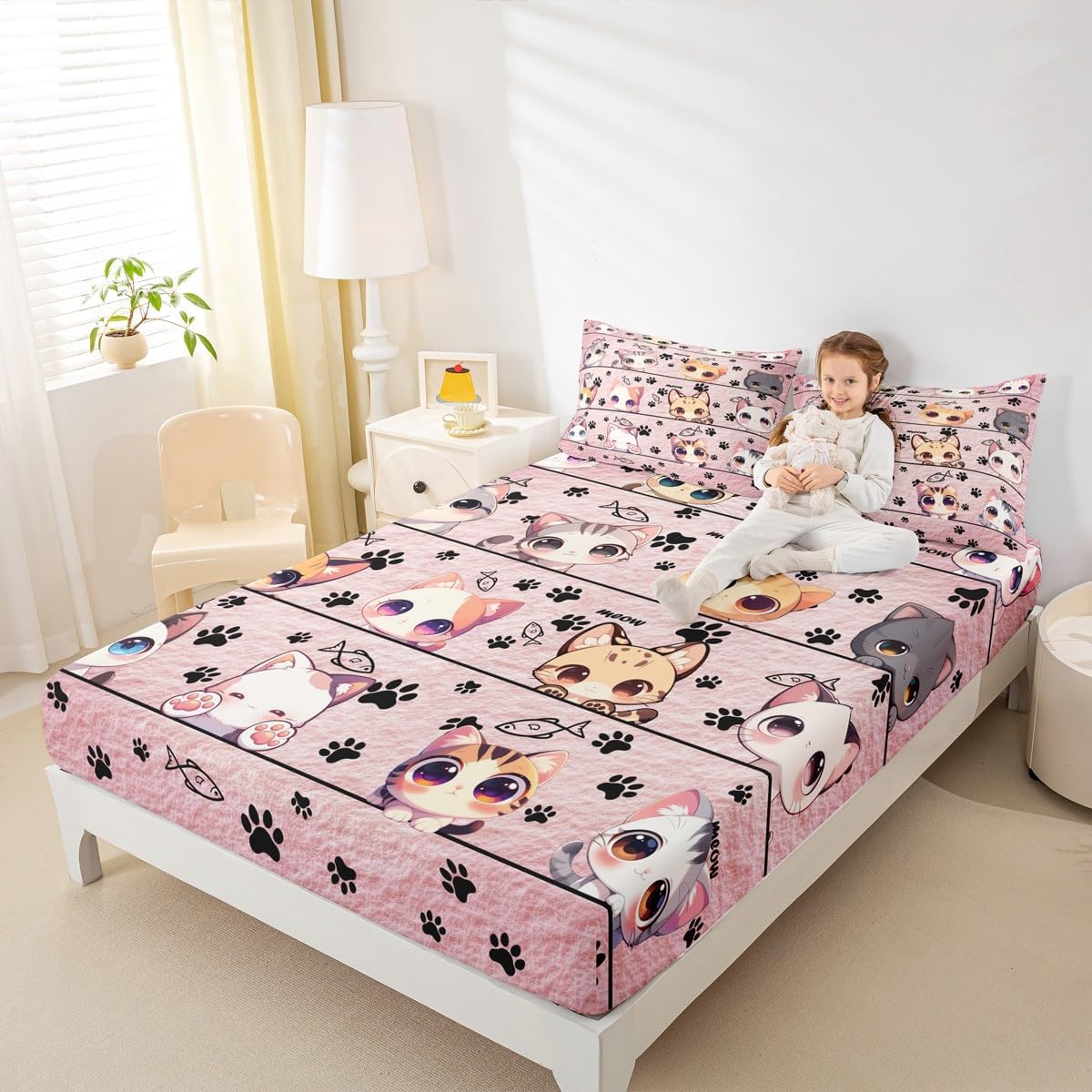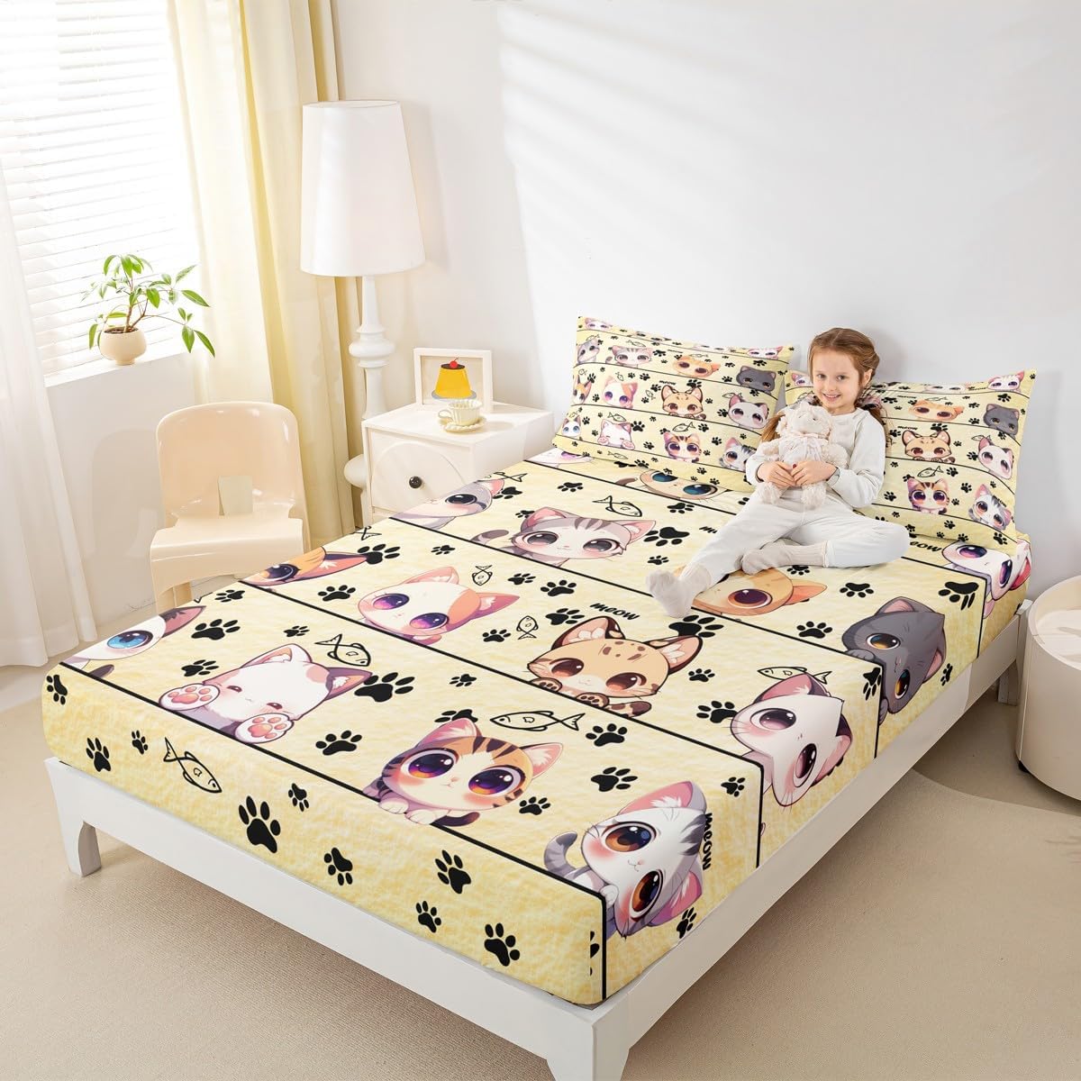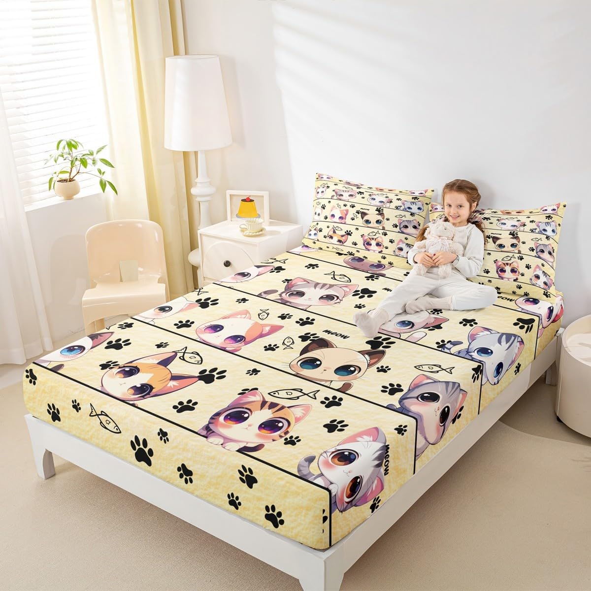 Package Include:fitted sheet,Pillowcase.No flat sheet or top sheet. Fitted sheet set pattern bedding set, simply decorating your rooms any time you want, bringing you fresh feel for year round use. Made from polyester,the sheet set offers long lasting strength,anatural resistance to shrinking and a noticeably soft hand feel. Size Information: Twin size : 1 Fitted Sheet 39"W x 75"L x 16"H ,99 x 190 x 41cm , 1 pillowcase 20" x 30", 51x75cm . Full size : 1 Fitted Sheet 54"W x 75"L x 16"H ,137 x 191x 41cm ,2 pillowcases 20" x 30", 51 x 75cm . Queen size : 1 Fitted Sheet 60"W x 80"L x 16"H ,152 x 203x 41cm ,2 pillowcases 20" x 30", 51 x 75cm . Personalize your bedroom: Beautiful design and colorful print, makes your bedroom unique and brings you a wonderful dream. Washing instructions: Machine wash separately in cold water,hang dry, do not bleach. Occasion: The soft Fitted Sheet bedding sets designed for Children ,Adult, Men, Women, Teens. This Fitted Sheet set is also suitable for full seasons, Spring, Summer, Autumn and Winter.