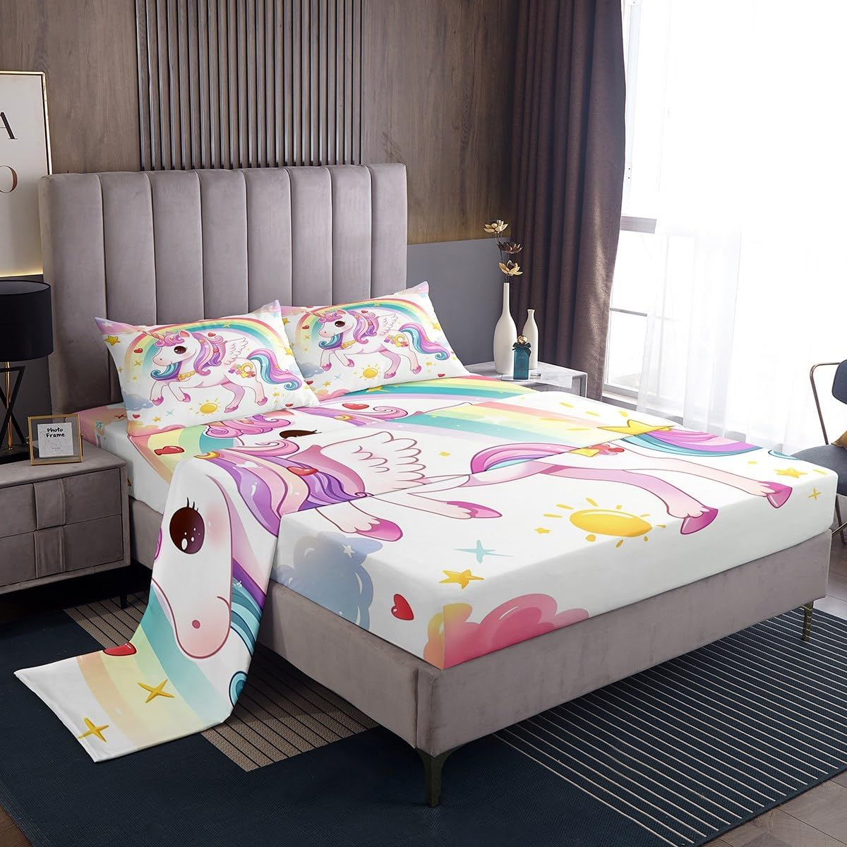 Package Include:1 x fitted sheet,1 x flat sheet,Pillowcase.Our high quality designs match any decor. High Quality Fitted Sheet Set Pattern Bedding Set, simply decorating your rooms any time you want, bringing you fresh feel for year round use. Polyester: Made from polyester microfiber, the sheet set offers strength, anatural resistance to shrinking and a noticeably soft hand feel. Size Information: Twin size 3pcs: 1 Fitted Sheet 39"W x 75"L x 16"H, 1 Flat Sheet 66"W x 96"L, 1 pillowcase 20" x 30". Full size 4pcs: 1 Fitted Sheet 54"W x 75"L x 16"H, 1 Flat Sheet 81"W x 96"L, 2 pillowcase 20" x 30". Queen size 4pcs: 1 Fitted Sheet 60"W x 80"L x 16"H, 1 Flat Sheet 90"W x 102"L, 2 pillowcase 20" x 30". King size 4pcs: 1 Fitted Sheet 78"W x 80"L x 16"H, 1 Flat Sheet 90"W x 106"L, 2 pillowcase 20" x 36". Personalize your bedroom: Beautiful design and colorful print, makes your bedroom unique and brings you a wonderful dream. Washing instructions: Machine wash separately in cold water,hang dry,do not bleach. Occasion: The soft Fitted Sheet bedding sets designed for Children ,Adult, Men, Women, Teens. This Fitted Sheet set is also suitable for full seasons, Spring, Summer, Autumn and Winter. You also can order it for your family and friends. Notes: Due to the light and screen setting difference, the item's color may be slightly different from the pictures. Due to manual measurement, there may be an error of 1 to 3 centimeters.