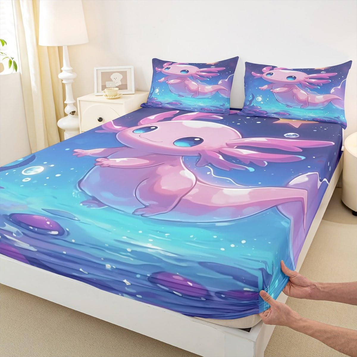 Package Include: Fitted sheet and Pillowcase, our high quality designs match any decor. High quality Fitted Sheet Set 3D Pattern Bedding Set, simply decorating your rooms any time you want, bringing you fresh feel for year round use. Size Information: Twin size 2pcs Fitted Sheet set: 1 Fitted Sheet 39"W x 75"L x 16"H, 1 pillowcase 20" x 30" Full size 3pcs Fitted Sheet set: 1 Fitted Sheet 54"W x 75"L x 16"H, 2 pillowcase 20" x 30" Queen size 3pcs Fitted Sheet set: 1 Fitted Sheet 60"W x 80"L x 16"H, 2 pillowcase 20" x 30" Personalize your bedroom: Beautiful design and colorful print, makes your bedroom unique and brings you a wonderful dream. Washing instructions: Machine wash separately in cold water,hang dry, do not bleach. Occasion: The soft Fitted Sheet bedding sets designed for Children ,Adult, Men, Women, Teens. This Fitted Sheet set is also suitable for full seasons, Spring, Summer, Autumn and Winter.