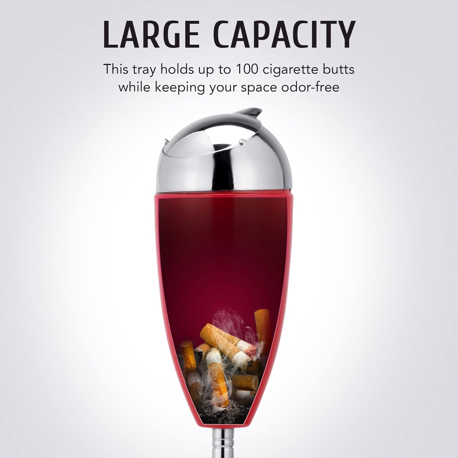 CO-Z Adjustable Floor Standing Ash Tray, Smokeless Outdoor Ashtray with Lid for Home Patio Cigarettes Ash Butt Disposal, Stainless Steel Windproof Stand Ashtray in 20", 27.5", 35" Heights, Red