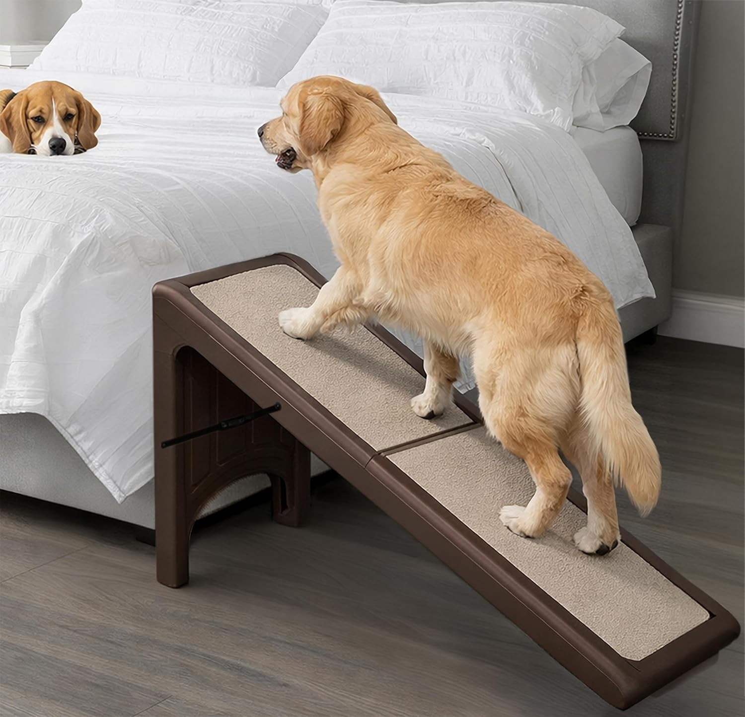 Pet Gear’s Free-Standing Extra Wide Pet Ramp is the solution to many BIG pet problems. This patented ramp is extra-wide and features a support panel which makes it extra-sturdy, so pets up to 300 pounds will have an easier time getting in and out of vehicles. It also features raised edges and a slip-resistant surface to keep your pet steady. The free-standing design means that the ramp does not need to rest on your bumper. When you’re ready to go, just fold the ramp up into its compact size and you’re on your way!