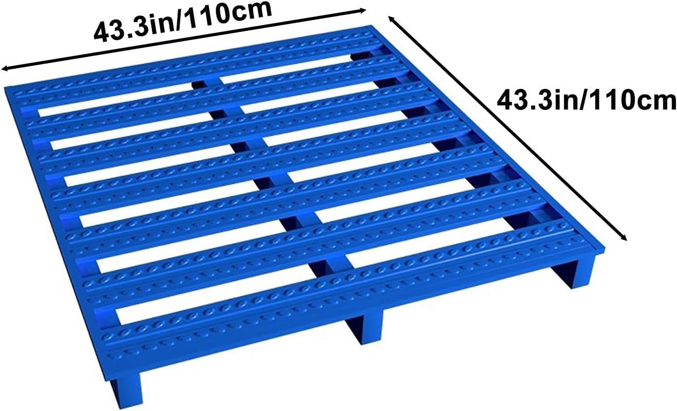 This heavy-duty industrial steel pallet is made from durable galvanized steel, ensuring long-lasting use without deformation. Its sturdy design suits warehouses, factories, and supermarkets, with dimensions optimized for forklift handling. The surface features a drainage grate to prevent liquid accumulation, maintaining a clean and safe environmentSpecifications: Material: Durable galvanized steel Color: Blue , SilverSize: 39.3x39.3in/100x100cm , 39.3x47.2in/100x120cm , 43.3x43.3in/110x110cmFeatures: High load capacity, corrosion-resistant, drainage grate design, modular stackable for space-saving, suitable for various industrial settings It supports heavy loads, accommodates large containers and equipment, and its modular design allows space-saving stacking. Corrosion-resistant coating extends its lifespan, making it ideal for versatile indoor and outdoor industrial applications