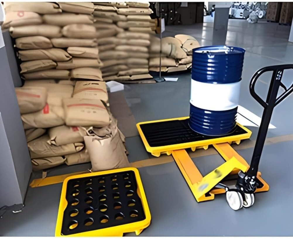 Low Profile Spill Containment PalletMaterial: Polyethylene Color: Yellow + BlackSize: Leakage L x W x HEasy to clean: Rinse with clean waterFeatures:Detachable leak-proof groove can help you place and transfer oil drums and other items more conveniently, prevent spills and keep the ground clean.The partition designed with ribs has strong bearing capacity and is suitable for storing and placing most items.Applicable Warehouse, workshop, maintenance, supermarket, industrial, commercial, factoryStackable:Two or more pallets can be stacked for storagePackage Content:1x Leak-Proof Tray