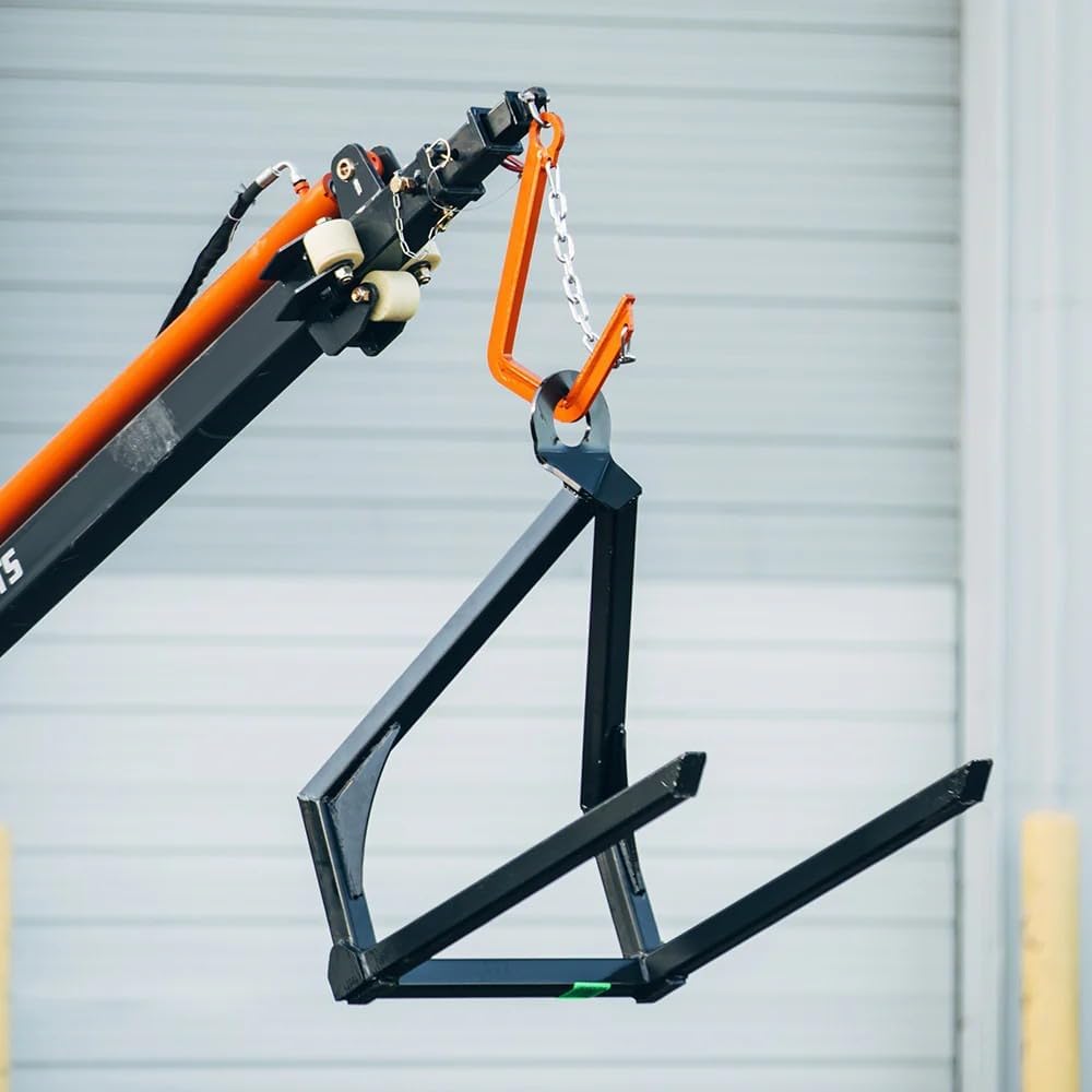 - **VERSATILE TELE-BOOM PALLET CARRIER:** This 32" pallet carrier is engineered for adaptability, compatible with any jib boom or truss crane equipped with a lift hook, making it the perfect solution for diverse lifting tasks. - **QUICK AND EASY ATTACHMENT:** Enjoy hassle-free setup! Our pallet carrier connects directly to any jib boom or crane lift hook, eliminating the need for fork frames or complicated assembly—get to work faster! - **LIGHTWEIGHT, HEAVY-DUTY PERFORMANCE:** Weighing just 68 lbs, this attachment can handle loads up to 1,000 lbs. It's designed for substantial capacity while remaining easy to maneuver, maximizing efficiency on the job site. - **BUILT TO LAST:** Constructed with robust 2x2-inch steel fork tubing, this pallet carrier ensures long-lasting durability and dependable strength, providing safe and reliable performance with every lift. - **BOOST WORKSITE EFFICIENCY:** Enhance your productivity with this versatile lifting solution that safely transports pallets, shingles, and other heavy materials. Lower your reliance on additional equipment and reduce manual strain, streamlining your operations.
