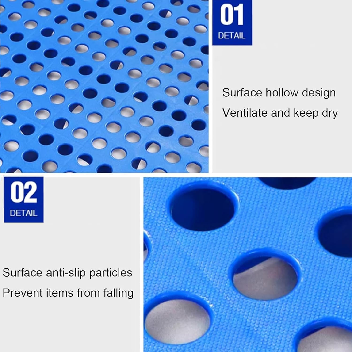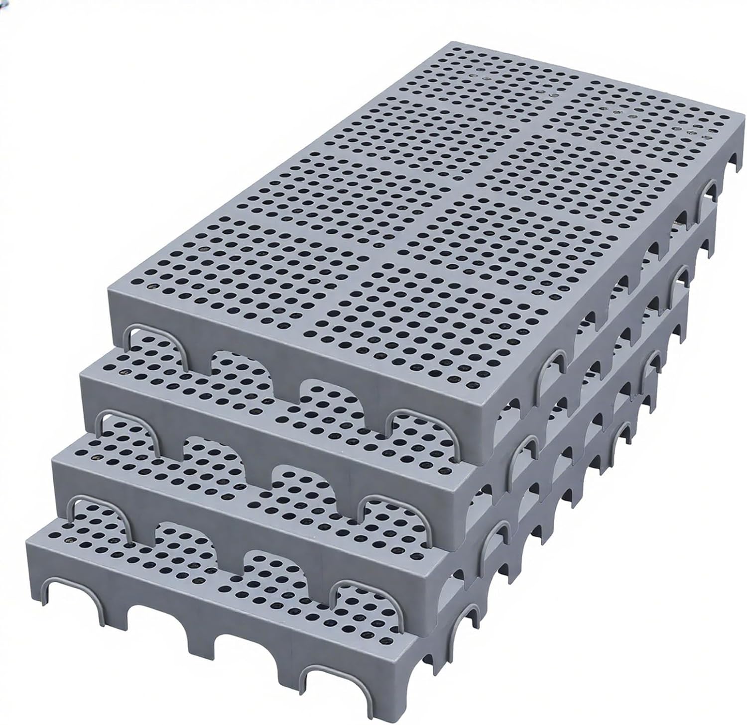Features:1. Lightweight and aging-resistant, plastic pallets are typically lighter than wooden pallets, saving costs when used in large quantities.2. The pallet's grid design ensures good air circulation and keeps items at the bottom. Stacked items stay dry, improving efficiency.3. Multiple plastic pallets can be combined freely, allowing for use as garden sheds and for stacking warehouse goods without the bottom of items touching the ground.Specifications:Name: Plastic PalletMaterial: High-density Polyethylene (HDPE)Colors: Blue, Gray, White, Green, RedDimensions: 100 x 50 x 2 cm / 39 x 20 x 2 inchesHole Diameter: 1.9 cm / 0.8 inchesUse: Warehouses, supermarkets, pharmacies, convenience stores, gas stations, offices, laboratories, landscaping, refrigerated trucks, pet store mats, balcony mats, outdoor paving.Product Packaging:4 x Plastic Shipping PalletsNotes:1. Please measure the required area and select the appropriate size. 2. Stack the goods evenly to ensure that the pallet can bear the load, fully distribute the weight and extend its service life.