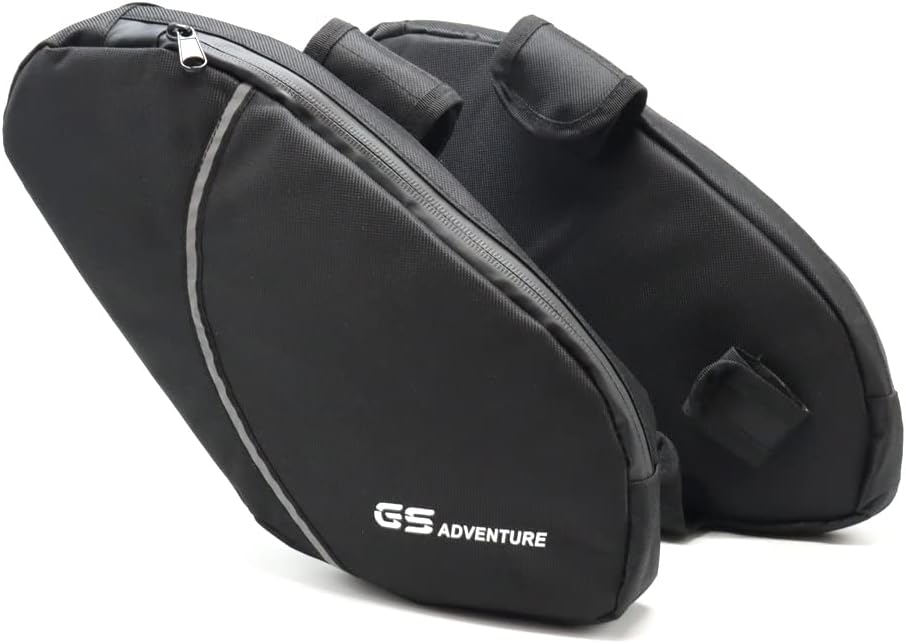 Description: Our water-repellent protective strap bags are ideal for everything you would like to keep handy when on the go: papers, smartphone, sunglasses, keys, multitool etc. We have designed them to fit the original tank protection bars of the R 1250 GS Adventure. They can be easily and securely attached to the protective bar. The positioning ensures an optimal weight distribution. We use water-repellent, teflon-coated, dirt-repellent Cordura 1000 fabric, which does not fade and has proven itself to be extremely strong and wear-resistant. Lined outer surfaces provide double protection: the contents from vibrations and the bracket from chafing. The compact shape, the cut and the high-quality fabric prevent bulging and fluttering of the bags, which are dimensionally stable even when empty. The branded zippers are waterproof and dustproof and equipped with handy zippers. Typical: The blue lining ensures clarity. Function: Additional luggage option on the tank protection bars of the Adventure, ideal for everything that needs to be within easy reach on the go Simply slide it onto the tank protection bracket and securely attach it to the bracket using Velcro Optimal, convenient position and perfect weight distribution Complete freedom of movement Water-repellent, teflon-coated, dirt-repellent Cordura 1000 fabric, high-strength, abrasion-proof, does not fade Lined outer surfaces protect the contents from vibrations and the bracket from chafing No bulging and fluttering of the bags, which are dimensionally stable even when empty Our typical blue inner lining ensures clarity Handy zipper, waterproof and dustproof Material: Cordura 1000 fabric, high-strength, water-repellent, teflon-coated, dirt-repellent, abrasion-resistant, does not fade Product list: left and right (1 pair) Fitment: For R1250GS Adventure