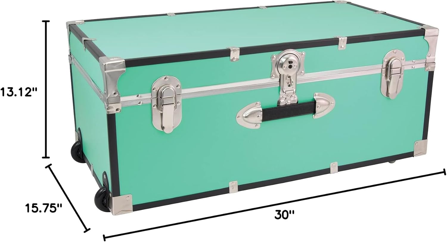 The Seward Trunk Traveler 30" Trunk reimagines travel with a seamless blend of style, durability, and practicality, designed for the modern adventurer. This trunk effortlessly combines vintage aesthetics with contemporary functionality, making navigating airports and hotels a breeze thanks to its sturdy wheels and telescoping handle. Enjoy peace of mind with the secure locking mechanism, safeguarding your belongings whether you're crossing continents or embarking on a weekend getaway. Constructed from a robust combination of wood, metal, and vinyl, this trunk is built to endure the demands of travel, promising years of reliable service. The eye-catching teal finish adds a touch of sophistication to your travel ensemble, while the generous interior capacity provides ample space for clothing, shoes, souvenirs, and essentials, ensuring organized and stress-free packing. More than just luggage, the Seward Trunk Traveler 30" Trunk is a statement piece, elevating your travel experience and reflecting your unique style. Experience the perfect fusion of classic charm and modern convenience ? your journey deserves this exceptional travel companion.
