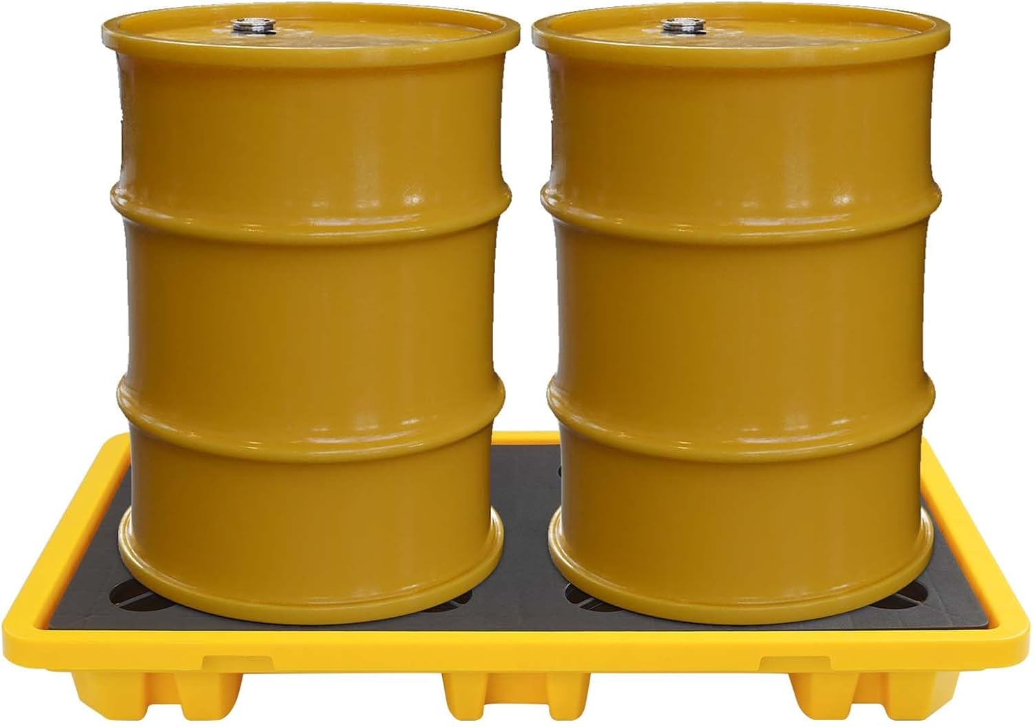 Specification:Color: Yellow, BlackStyle: Modern Shape: RectangularMaterial: HDPENumber of Applicable Barrels: 2Assembly Required: YesInstallation Type: Free-standingLoad-Bearing Capacity: 2000kg/4409.25lbs (Static Load), 500kg/1102.31lbs (Dynamic Load)Leak Storage Capacity: 80L/21.13GalProduct Size: 130*68*15cm/51.2*26.8*5.9inPackage Size: 123.5*64.6*15.2cm/48.62*25.43*5.98in Gross Weight: 11.85kg/26.12lbsNet Weight: 11.26kg/24.82lbsPackage Included:1* Spill Containment Platform