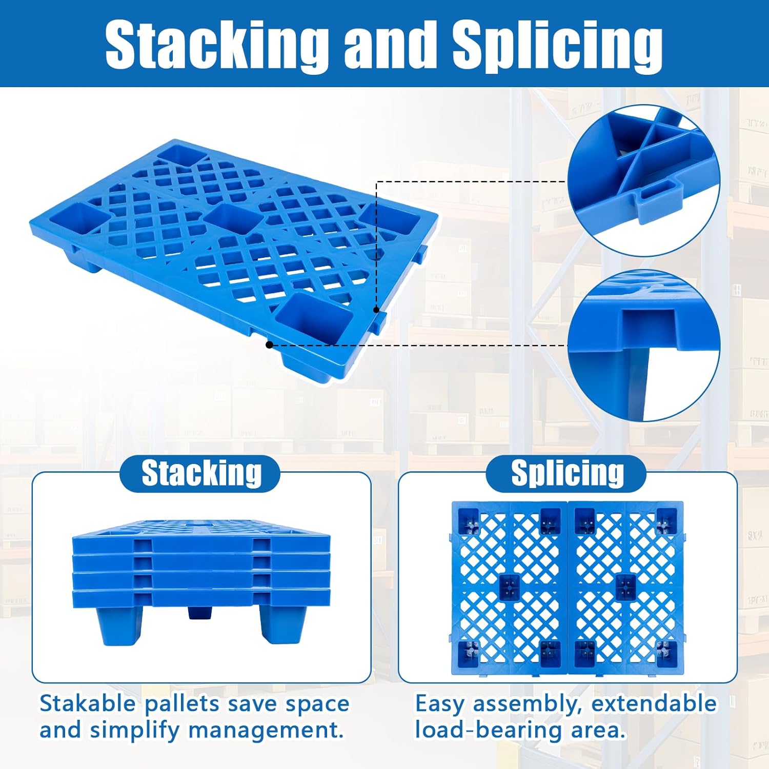 | Included Components | 2 x Plastic Pallets (23.6" x 15.8" x 3.9") |