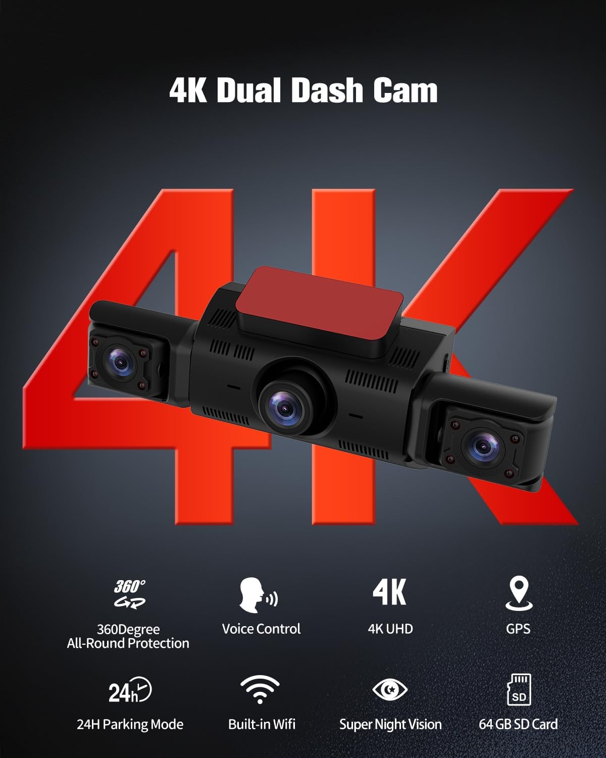 | Other Special Features of the Product | 360 Degree/IR light/Free 64 SD card/Free App/Easy to install/3"Display Screen, App Control/Support up to 256GB, Built-In GPS/Easy to Install/Super heat dissipation/long life span/4K Resolution/4 channel dash cam, Built-In WiFi, Night Vision/Voice Control/Loop Recording/ Motion Sensing/5GHz Wifi/G-Sensor//Parking Mode |