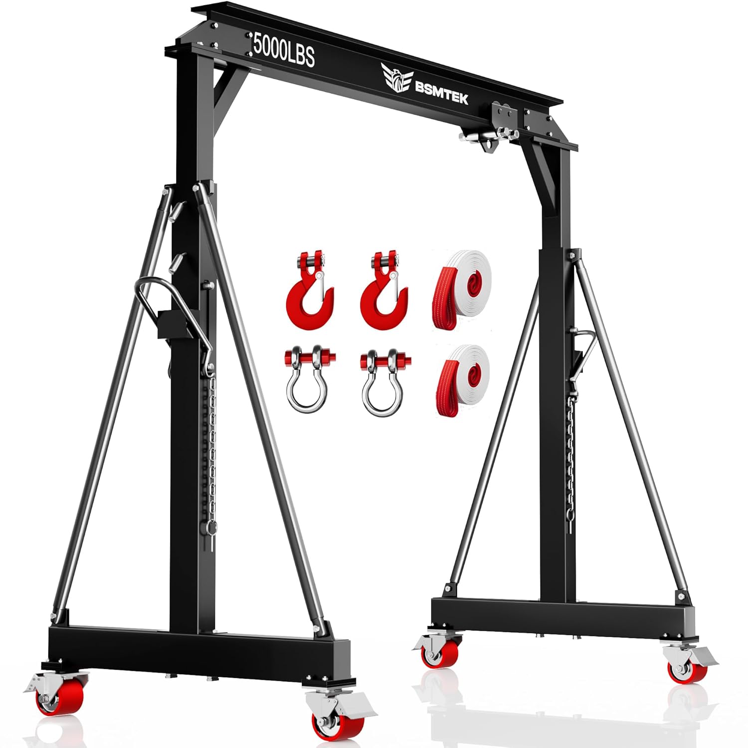 • Heavy-Duty 2-Ton Capacity & Durable Construction:Engineered to lift and move loads up to 5000 lbs (2 tons), this gantry crane is ideal for industrial, automotive, and construction applications. Built from high-quality steel, its reinforced structure ensures long-lasting performance and safety, even under maximum load conditions.
