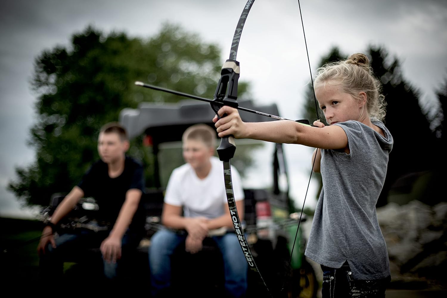 Share the shooting sports with a youth recurve bow from Barnett! A great fit for any young archer, the Centershot Recurve features a true ambidextrous shoot-through riser. This feature keeps the arrow centered on the riser so arrows won't fall off. It's a truly no fuss youth archery set that's safe and easy to use; just the way a first bow should be. The Centershot Recurve comes with soft-touch finger rollers, adjustable sight pin and arrow rest already installed, plus two arrows and a quiver to get them on their way. It's incredibly lightweight so young archers can handle it easily and feel just like one of the big kids!
