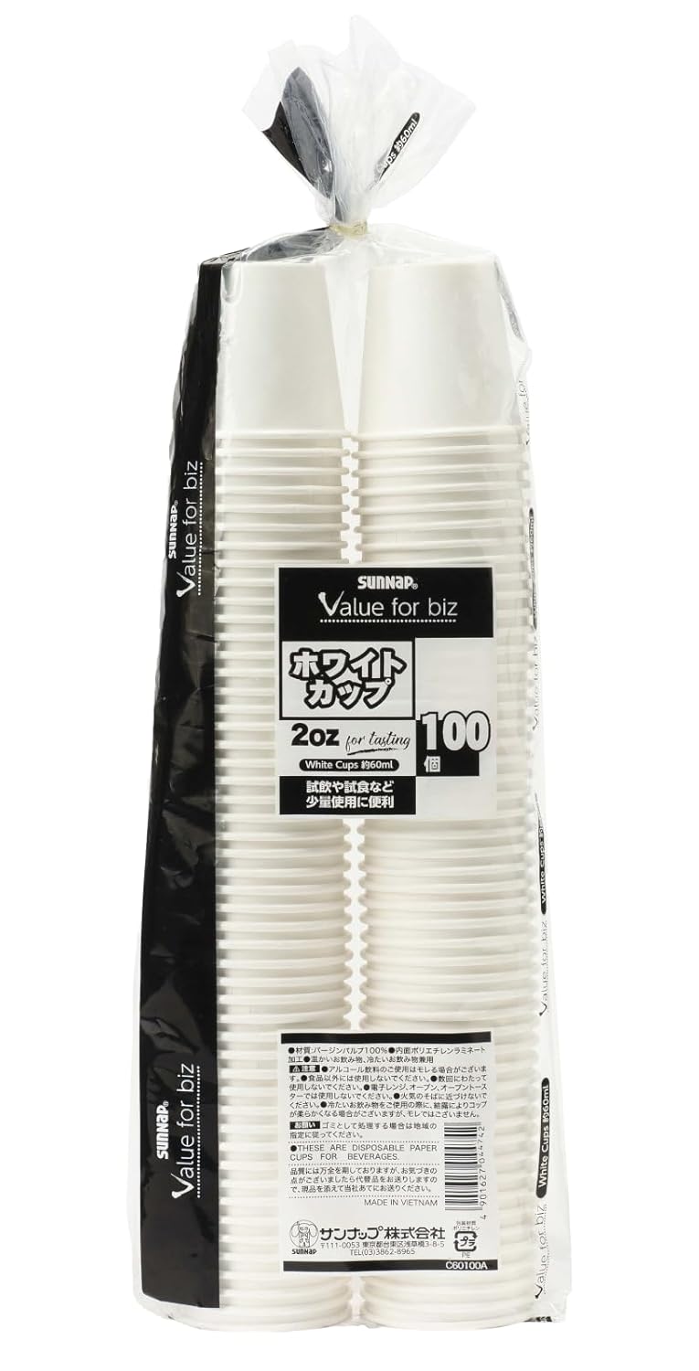 (Small Size 2.4 fl oz (60 ml), Diameter Approx. 2.0 inches (52 mm)): This 2.0 fl oz (60 ml) / 2 oz size paper cup is perfect for brushing gums, teething and tasting. (Generous 100 Pieces x 3 Packs) 1 pack of 100 pieces x 3 packs. This value pack is great for heavy users, such as Everyday Use. Small and easy to hold: The small size makes it convenient for everyone to use it for serving food or for distributing snacks. Hygienic Material: 100% virgin pulp and polyethylene laminate on the inner surface for hot and iced drinks. (Safety Quality) Manufactured at a factory equivalent to Japanese standards for hygiene and safety management. Made in Vietnam.