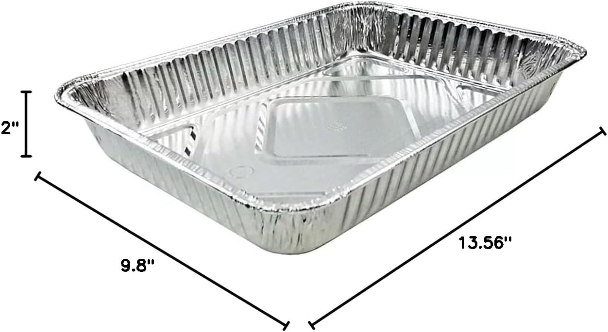Premium quality PACTOGO 13" x 9" x 2" oblong foil cake pan. Bulk case of 100 pans with 100 dome lids. Made with sturdy 40 gauge aluminum. Clear matching dome lids included for upscale food presentation. Ideal for baking cakes, sweets, pastries, and more. No more messy clean-ups. Simply use one time and discard. OU Kosher certified. Proudly made in the USA.