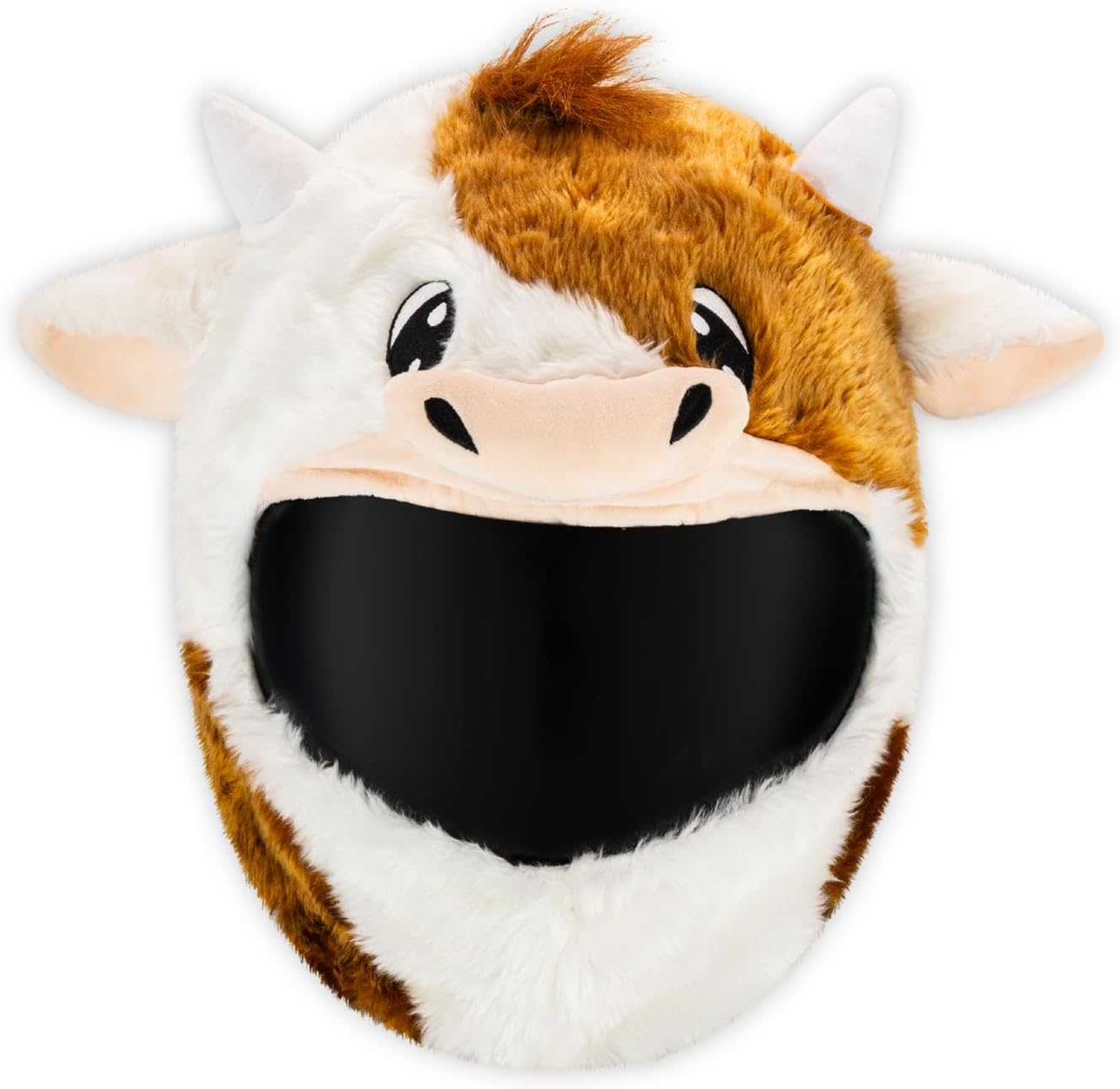 Why You Need This Helmet Cover?Brings Smiles To Faces Children will laugh, heads will turn and you'll make everyone a little happier when you rider past wearing this Cow helmet cover. Everywhere you ride people will laugh, wave, give you thumbs up and take pictures. Don't be surprised if you find yourself staring on multiple social media pages after going for a ride wearing this fun helmet cover.Brightens Dull Commutes Let's be honest, we all have to do some rides that are a little less interesting (slow, high-traffic commutes come to mind). Chuck one of these removable helmet covers on before heading out and we promise it'll make any ride loads of fun!Helps Be Seen It's no secret drivers often don't see us when we're out on our motorcycles. With one of these Cow helmet covers you'll stand out and have a much higher chance of being seen by others on the road. Fantastic benefit for any rider that doesn't like being hit by cars.One Size Fits All That's right, this helmet cover comes in just one size that fits almost all helmets. This means if you ever change helmets, you can use your helmet cover with your new one. It also means you can lend it to your friend and it should slip nicely onto their helmet.Easy To Install This crazy helmet cover is so easy to install even a monkey could do it (okay, we haven't tested this...if anyone knows a motorcycle riding monkey, please let us know). Simply slip it onto your helmet, adjust the cover so the mouth aligns with your visor and your vision is maximised, then pull it down tight.Keeps Helmet Clean This funny helmet cover will scare away dust so you'll never have to clean your bike/gear again! Alright, that's not entirely true but it will stop dust and from sticking to your beautiful helmet.