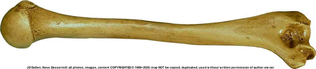 Model 5001-1010 by Nose Desserts brand, High Quality Human Humerus Left and Right Arm Bones, Earth-Tone Brown Relic Replica. Life Size exact cast from a real human left and right Humerus (upper big arm bones) accurate reproduction replica, medical study quality, anatomical correct model specimen, made of a durable polystone resin is Highly detailed such as bone structure, texture, size No two pieces are exactly the same, each one is unique, and there are color tonal variations in each one we hand produce. Human Humerus Arm Bones Replica Life Size exact direct mold cast of Caucasian Humerus origin, male in 20s and accurate to the original, difficult to distinguish between the original and replica. This Humerus Arm bone surfaces replicated in a natural texture matte finish are accurately reproduced. Hand made; No two pieces are exactly the same, each one is unique, and there are color tonal variations in each one we hand produce. Definition (Wikipedia) of the Humerus (/ˈhjuːmərəs/, Plural: humeri) is a long bone in the arm or forelimb that runs from the shoulder to the elbow. It connects the scapula and the two bones of the lower arm, the radius and ulna, and consists of three sections. The humeral upper extremity consists of a rounded head, a narrow neck, and two short processes (tubercles, sometimes called tuberosities). The body is cylindrical in its upper portion, and more prismatic below. The lower extremity consists of 2 epicondyles, 2 processes (trochlea & capitulum), and 3 fossae (radial fossa, coronoid fossa, and olecranon fossa). As well as its true anatomical neck, the constriction below the greater and lesser tubercles of the humerus is referred to as its surgical neck due to its tendency to fracture, thus often becoming the focus of surgeons.