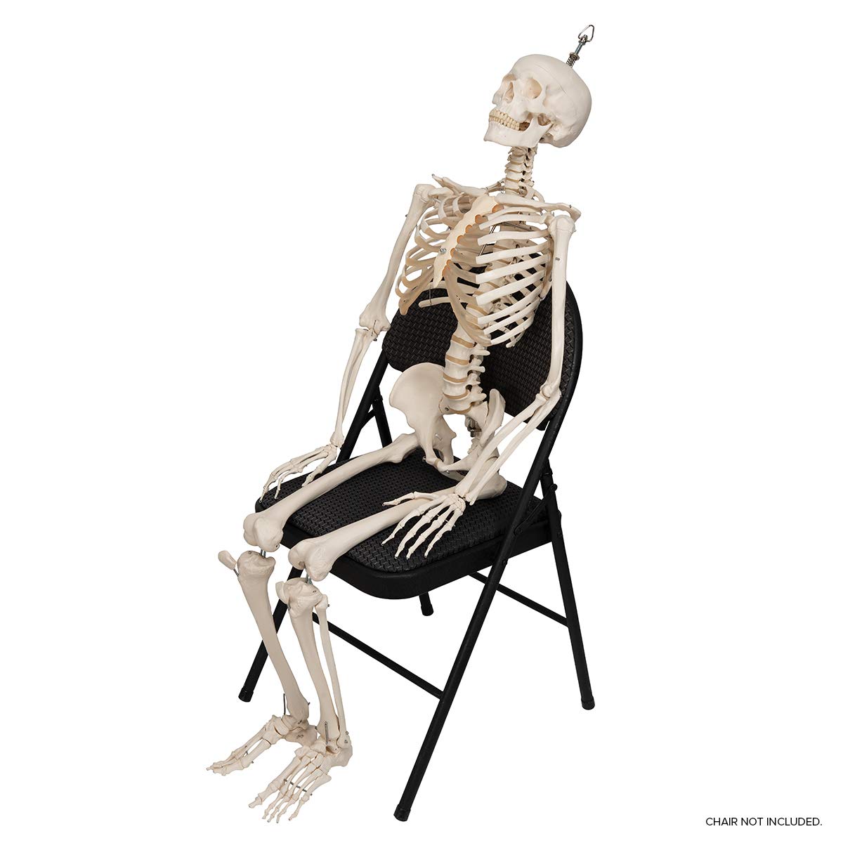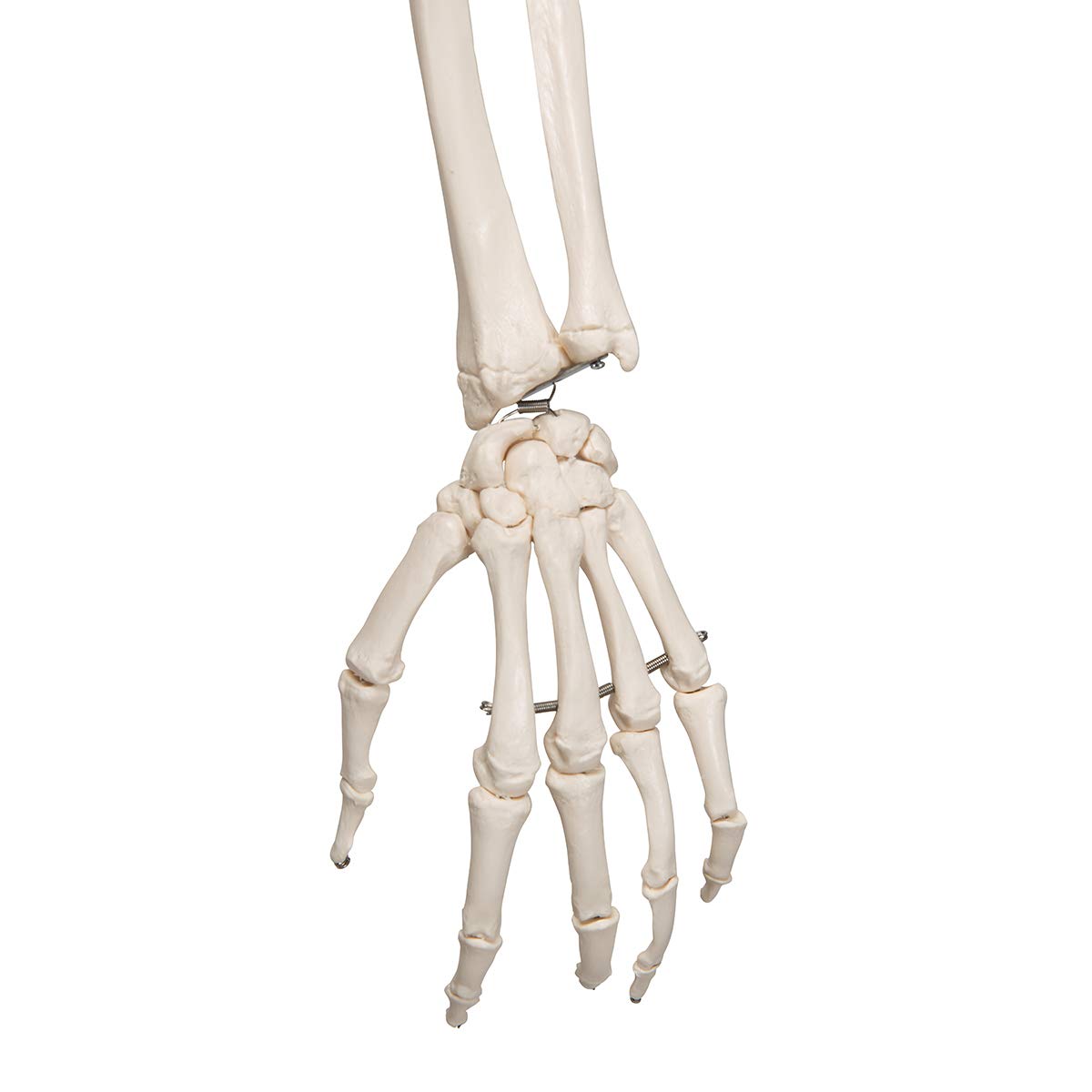 This scientific grade human skeleton model is unique in its near lifelike realization of the joint mechanisms. Phil the physiological human skeleton model allows you to demonstrate the inward and outward rotation of the arms and legs and the extension and flexion of the knee and elbow joints. The flexible spine allows for natural movement (lateral inclination, movement and extension, rotation). The bones of the hands are mounted on wire to demonstrate their natural positions. The foot bones of this human skeleton are mounted flexibly to enable movability. Even the restricted mobility of the iliosacral joint and the sacrococcygeal joint can be demonstrated. Excellent price-performance ratio, full 3-year warranty, first-class natural cast, manual final assembly, made of durable, unbreakable plastic, almost realistic weight of the approx. 200 bones, life-size, 3-part mounted skull, individually inserted teeth, lower limbs are quick and easy to remove, hanging roller stand with brake and protective dust cover included, can also be used with a wall mounted a59/8 (not included) multifunctional stand for a space saving solution. NEW and exclusively with original 3B Scientific anatomy models - now enhanced with 3B Smart Anatomy. Your advantages with all 3B Smart Anatomy models: Free warranty extension from 3 to 5 years, free access to 3B Smart Anatomy courses in the award-winning Complete Anatomy app, this includes 11 3B Smart Anatomy courses with 23 lectures and 117 different views of interactive virtual models, plus 39 quizzes. To unlock these benefits, simply scan the label and register your 3B Smart Anatomy model online. All 3B Smart Anatomy features are completely free of charge. "Virtual meets Reality" developed by 3B Scientific makes learning human anatomy even more effective across all media.