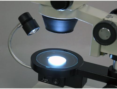 The AmScope GM300TZ-10M digital gemology stereo zoom microscope has interchangeable pairs of 10x and 20x widefield eyepieces, a 0.7x-4.5x zoom objective, two Barlow lenses, and an inclined pillar stand. The 10MP camera has a CMOS color sensor, a reduction lens, image capture and editing software, and USB 2.0 output to capture or display still or video images on a computer or projector. The microscope has an overall magnification range of 3.5x-90x. The trinocular viewing head has an interpupillary range of 55 to 75mm, a 45-degree inclination to reduce eye and neck strain, and 360-degree rotation to enable sharing. The trinocular port can be used as a C-Mount or 23mm photo port. The WF10x18mm and WF20x10mm widefield high-eyepoint eyepieces combine with the 0.7x-4.5x zoom objective to provide continuous zoom magnification and a longer working distance for inspecting large-scale specimens that require handling or repair. The microscope includes 0.5x and 2.0x Barlow lenses that can be added to the objective to increase the magnification range. A Barlow lens with a magnification of less than 1.0 reduces magnification and increases the working distance, while a Barlow lens with a magnification greater than 1.0 increases the magnification and reduces the working distance. Dioptric adjustment accommodates individual eye-strength differences. A digital stereo microscope, sometimes called an inspection or dissection microscope, has low magnification and a long working distance that enables users to manipulate the object being inspected, and is used where image capture, detailed records, or documentation is required.The 10MP digital camera has a CMOS color sensor for displaying still microscopy images and streaming live videos to a computer or projector. The camera has 40x magnification and a 0.5x reduction lens that ensures that the display has a similar field of view as the microscope eyepiece. The camera can be mounted in a C-Mount or any 23mm eye tube. The camera includes image capture and editing software that provides still image and live video capture and editing capability, including measurement functions. The software supports JPG, TIF, GIF, PSD, WMF, and BMP file formats and is compatible with Windows XP, Vista, 7, and 8; Mac OS X; and Linux. Camera drivers are compatible with Windows XP, Vista, 7, and 8; Mac OS X; and Linux. The software includes Windows APIs for native C/C++, C#, DirectShow, Twain, and LabVIEW that enable custom application development. The camera has a USB 2.0 data port (cable included).The microscope has upper and lower rheostat-controlled LED lighting. The upper (reflected) light source is used to examine surface details. The lower (transmitted) lighting has a darkfield condenser for examining the inside quality of gems. LED lighting provides close-to-daylight illumination for clear color reproduction. The upper light is mounted on a flexible gooseneck to direct light as needed. The inclined pillar stand can be inclined to 38 degrees. It has a round mechanical stage for measuring gem angles, a flexible gem clamp to secure gems at any angle. The white stage plate provides contrast with dark-colored specimens, and the frosted stage plate allows light to illuminate specimens from below. The microscope has a 90V-240V auto-detecting power supply, and has a rechargeable battery for using the microscope away from wired power sources. Microscope SpecificationsHeadTrinocularMagnification3.5x-90xObjective power0.7x-4.5xEyepieces (30.5mm)WF10x18mm, WF20x10mmTrinocular portC-mount or 23mmOptical working distanceUp to 8"Stereo angle12.4 degreesIllumination typeTransmitted and reflectedLight sourceLED, 3WFiltersFrosted, whiteDiaphragmDarkfield with iris diaphragmPower90V-240V, CE certifiedCamera SpecificationsResolution10MP (3584 x 2748 effective pixels)Image typeStill image and video display and captureCamera typeBrightfieldCamera sensor1/2.3" Aptina MT9J001 CMOS (color)Magnification40xReduction lens0.5xMounting size23mm or C-MountFrame rate27fps at 872x654; 8fps at 1744x1308; 1.9fps at 3584x2748Computer connectionUSB 2.0 (backward compatible on PCs only)File formatsJPG, TIF, GIF, PSD, WMF, BMPSoftware packageImage capture and editing for Windows XP, Vista, 7, and 8; Mac OS X; and LinuxCamera driver compatibilityWindows XP, Vista, 7, and 8; Mac OS X; and LinuxMicroscopes are instruments used to enhance the resolution of an object or image. Types include compound, stereo, or digital. Compound microscopes use a compound optical system with an objective lens and an eyepiece. Stereo microscopes show object depth in a three-dimensional image. Digital microscopes are used to display an image on a monitor, rather than looking through a lens. Microscopes can have monocular (one), binocular (two), or trinocular (three) eyepieces, with varying magnification abilities. Magnification ability refers to the size of an image. Resolution, also known as resolvant power, refers to the clarity of the image. The interaction between field of view (FOV), numerical aperture (NA), and working distance (WD) determines resolution. Microscopes can control magnification through a fixed focus, or through a range of adjustments. They can also utilize LED, fluorescent, and mirror light sources to help control viewing capabilities. Microscopes are widely used in education, lab research, biology, metallurgy, engineering, chemistry, manufacturing, and in the medical, forensic science, and veterinary industries.United Scope manufactures microscopy equipment and accessories under the brand name AmScope. The company, founded in 1996, is headquartered in Irvine, CA.What's in the Box?GM300TZ-10M stereo zoom microscope with darkfield condenserRotating stage, round10x eyepieces, one pair20x eyepieces, one pair0.5x Barlow lens2.0x Barlow lens10MP digital camera (MU1000)0.5x reduction lensUSB 2.0 cableSoftware CDGem clampFrosted glass plate, roundWhite stage plateEye guards, one pairStage clips, one pairPower adapterDust c