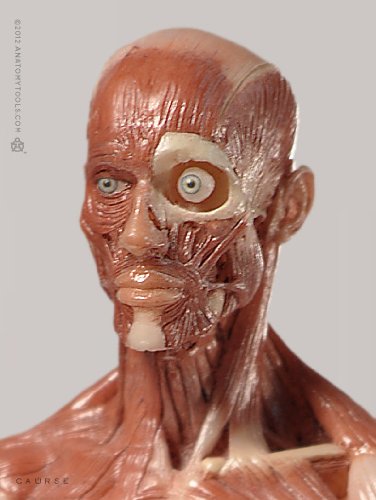 This desktop sized model is faithfully recreated from a live athlete. Hand sculpted & painted with incredible detail & realism, showing the rarely displayed platysma muscle, fascia of the body, exposed bone & vascular system. Perfect for reference, teaching or study, matches the 1/6 v3 skeleton SOLD SEPARATELY) aprox.12x2x3.5"/ 30x5x9cm. Designed, sculpted & painted by Andrew Cawrse