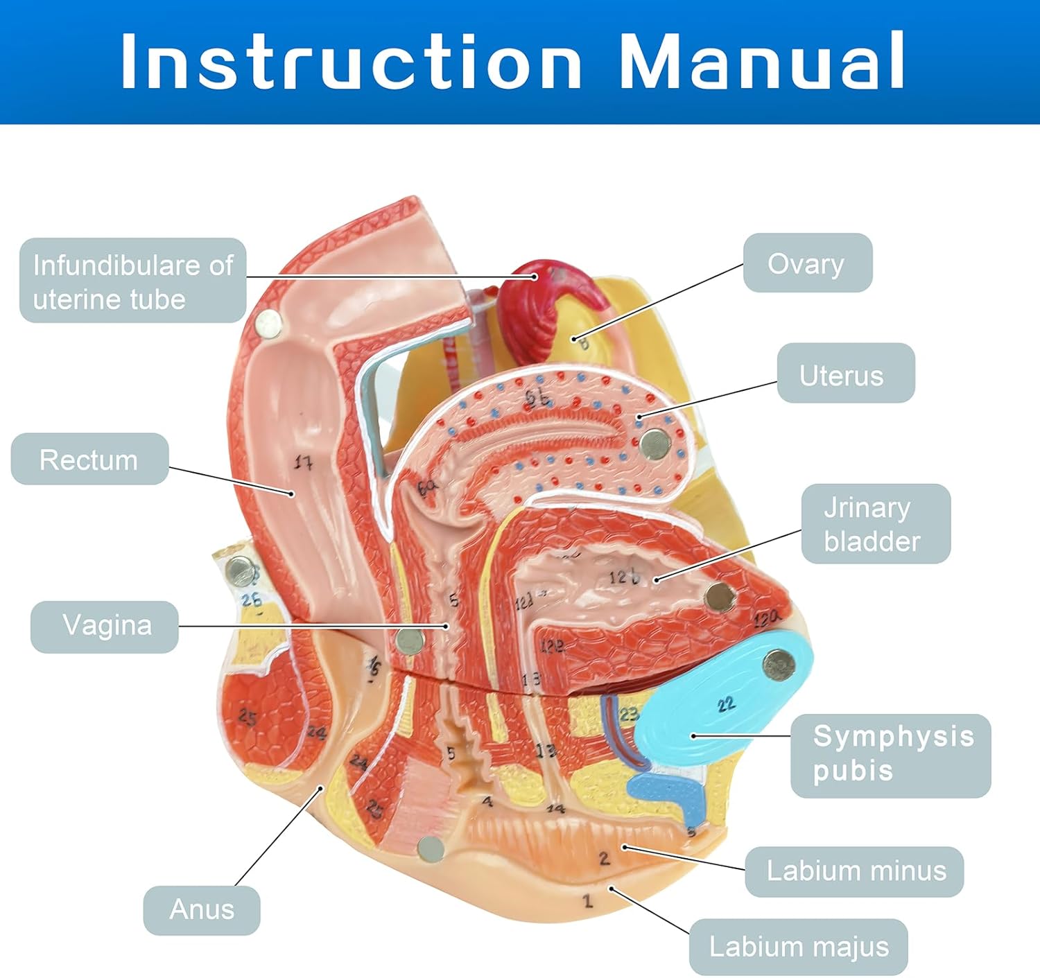 Life size female genital organs model,Separates into 4 parts for closer examination of internal structures