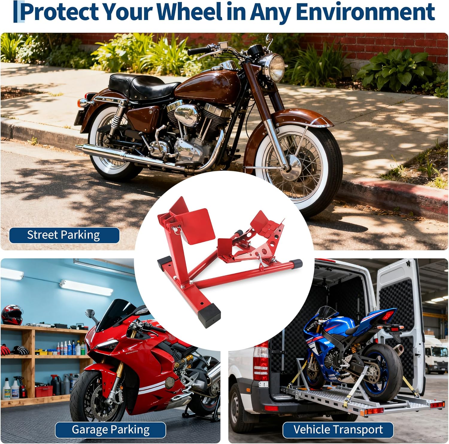| Model | Universal Wheel Chock & Motorcycle Stand Heavy Duty 1500Lb Capacity Adjustable Motorcycle Wheel Chock |