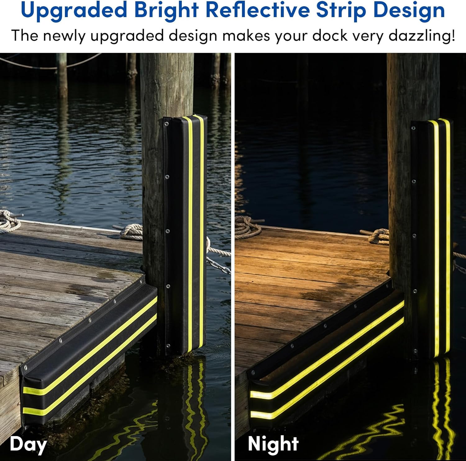 • Upgraded Dock Bumper with Reflective Strip: The upgraded bright yellow reflective strip can make your dock very conspicuous and easy to dock during the day or night, especially under the illumination of searchlights at night, which is more conducive to finding the dock