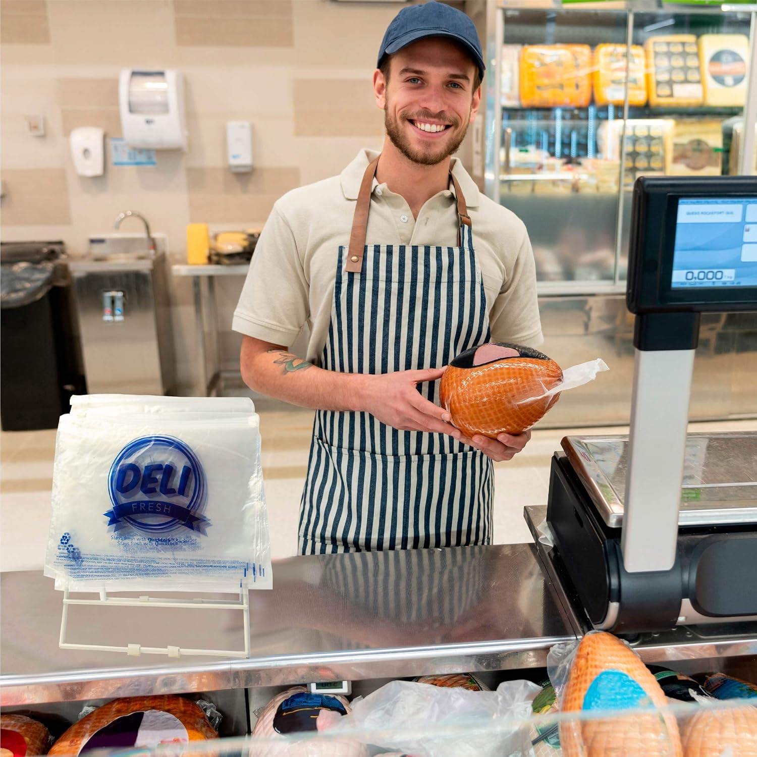 Keep your deli meats and cheeses fresh and ready with the Jaccard Press-to-Close deli bags. Made of durable and reliable LPDE material, our premium storage bags ensure optimal food storage and safety. Convenience meets sustainability with these pre-opened bags featuring attractive artwork, making snack time a breeze with the perforated lip for easy removal. These snack bags have a no-slip thumb grip and durable slider for easy opening and closing. Designed to fit standard deli bag stands, our storage bags effortlessly organize your snacks and food items for delis, restaurants, or home use. Our food bags are recyclable, which prioritizes the well-being of the environment. Enjoy hassle-free filling and secure sealing with our high-quality deli bags - the perfect choice for both deli and home use!Please note that the color and design may vary from the photos, and the stand is not included with the deli bags.