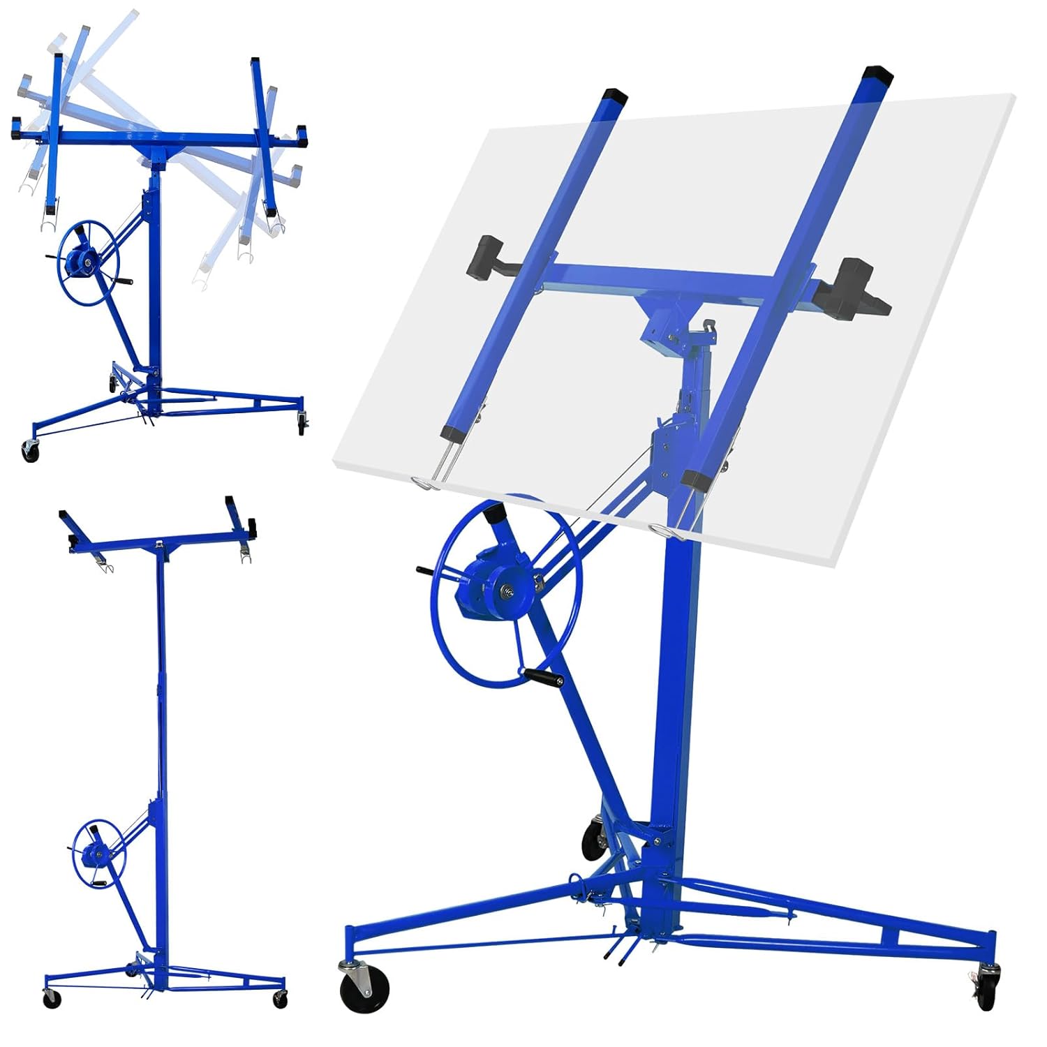 Are you tired of struggling with heavy drywall panels during your ceiling and wall installations? Say goodbye to the back-breaking work and welcome the ultimate solution – our Drywall Lift!Why Choose Our Drywall Lift?1. Our Drywall Lift is here to take the heavy lifting off your hands, making your projects a breeze!2. The hand chain operation is user-friendly, providing you with complete control.3. No more fumbling with tools! Our Drywall Lift is incredibly easy to assemble and disassemble. You'll be ready to go in no time.4. Don't worry about storage space. When the job is done, our Drywall Lift can conveniently folds up for compact storage and easy transport.5. Whether you're working on a home improvement project or tackling a large commercial job, our drywall lift is your reliable partner every step of the way.SpecificationColor: Yellow/Red/BlackMaterial: All welded SteelPower source: Hand ChainMax Height: 11ftAdjustable Length: 4.1' to 9.5'Apply Panels: Various Panels up to 4ft x 16ftSafety Note: Please be mindful not to exceed the 150 lbs maximum load to avoid any accidents during operation.Are you ready to simplify your work and achieve professional results?Update to Drywall Lift today and experience the transformation in your installations. It's time to elevate your craftsmanship!