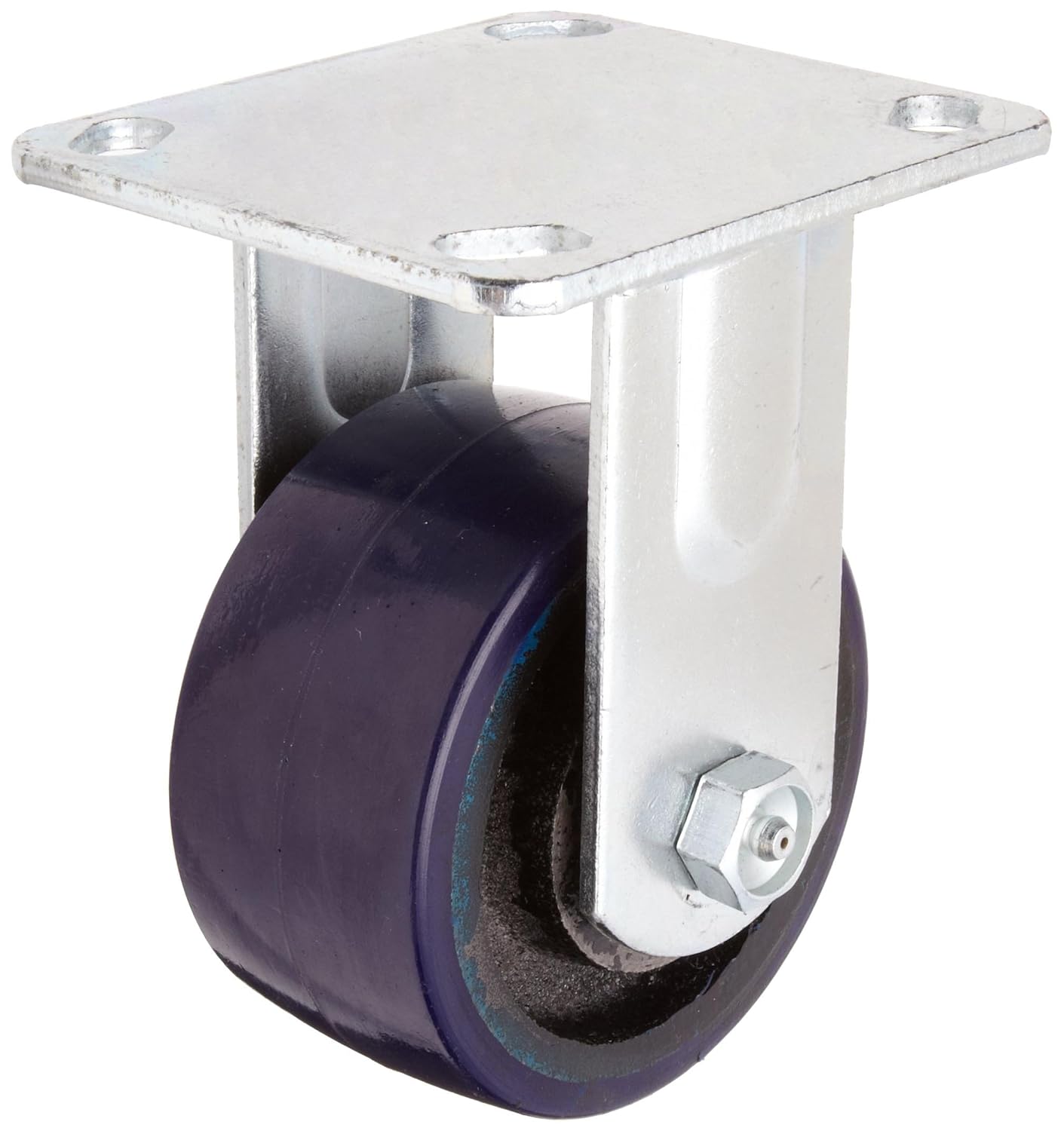 RWM's 65 series caster features the patented kingpinless design, a single ball bearing precision machined raceway hardened to 53 Rockwell C. minimum. Swivel section features a 2-3/8" diameter raceway with 3/8" ball bearings. RWM patented this design that has proven itself to be the best solution for demanding applications. This is the caster design that all others are now copying because it is simply unmatched in extending service life and reducing all possible causes for caster failure. The 65 series is recommended for a wide range of industrial applications include dollies, utility carts, tow line and platform trucks. It is also ideal for: Tow lines, shock load applications and abusive conditions, production line dollies and trucks used in various industries including but not limited to: Boat and ship molding and building, Automotive, Aerospace, metal fabricating, metal forging, heavy machinery and equipment, military equipment, mobile homes, etc. Tractor pulled trailers, extreme duty platform trucks and material handling carts, air cargo and ground support equipment, storage tanks, gantries and heavy duty processing equipment, coliseum and gymnasium equipment, shipping/receiving carts, warehousing and freight terminal dollies and carts, and countless other heavy duty applications. Leg thickness is 1/4" formed steel. 1/2" Axle bolt and lock nut drilled with lube fitting, mounting plate size is 4" x 4-1/2" x 1/4" and 2" tread wheel.