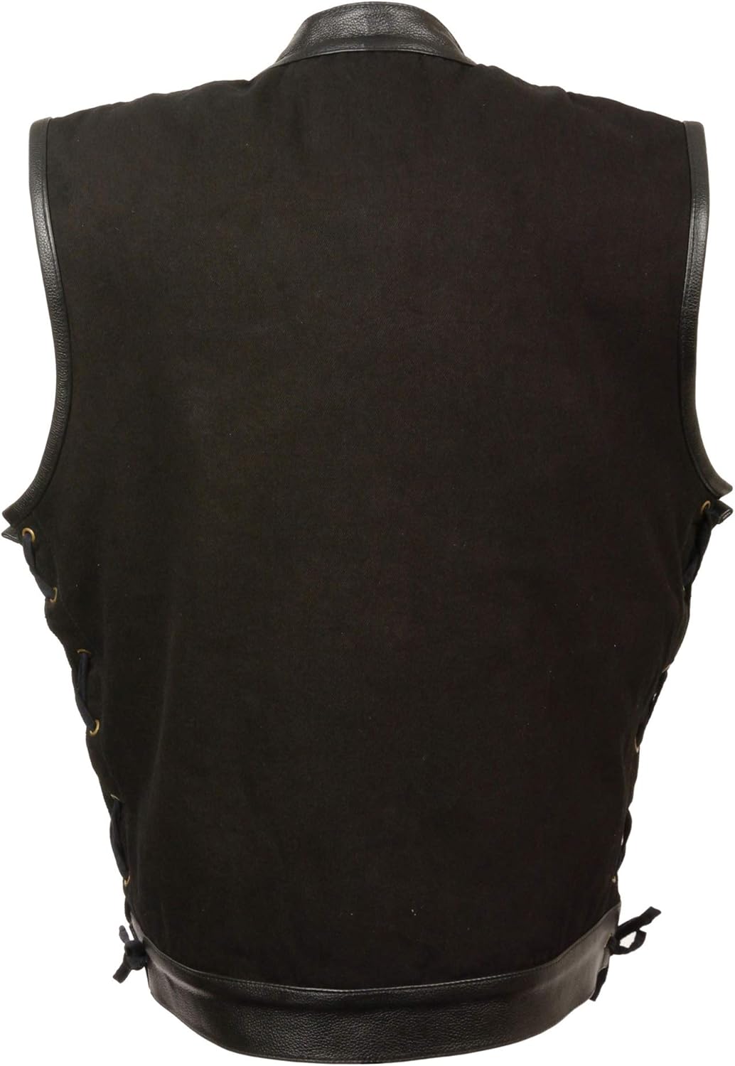 SOA BLK DENIM VEST WITH LEATHER TRIMMING SIDE LACES
